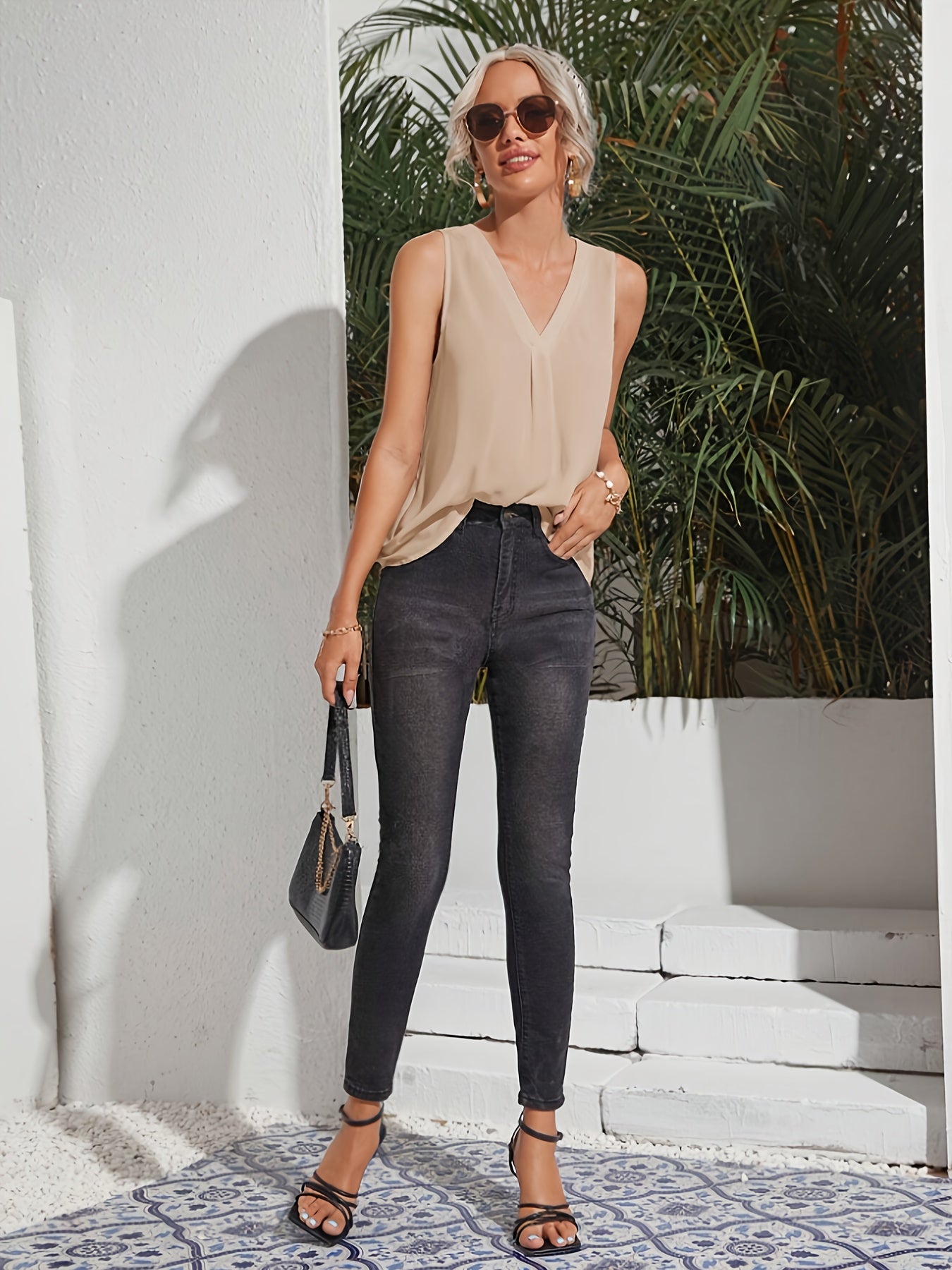 Женская майка без рукавов с V-образным вырезом для полных женщин, повседневная, однотонная, лето и весна
