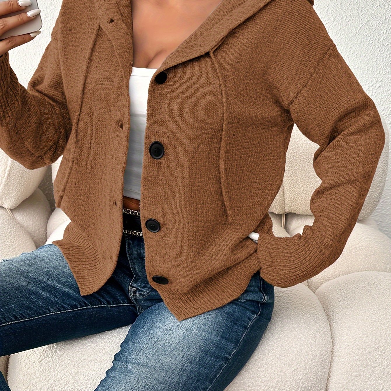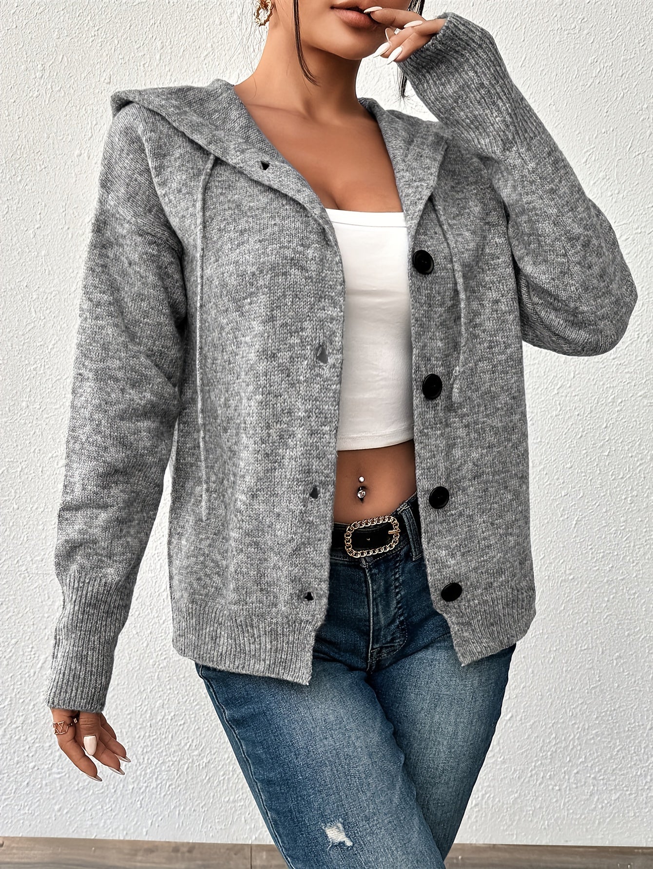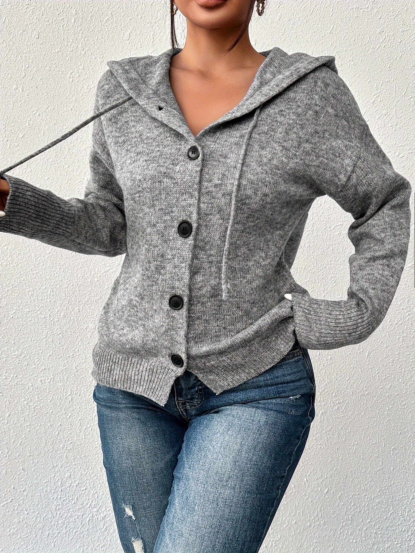 Женский кардиган с капюшоном, однородного цвета, на пуговицах, для полных женщин