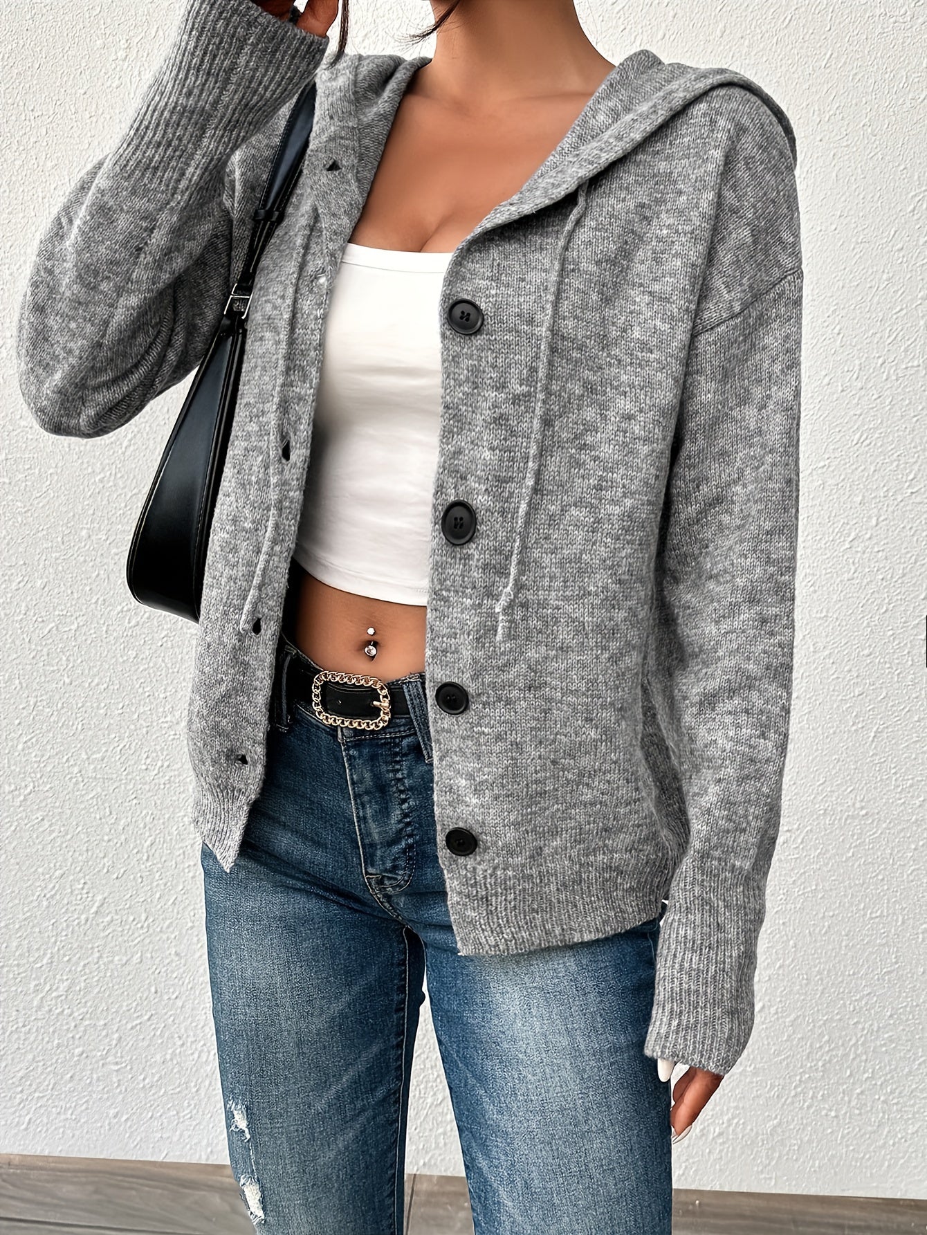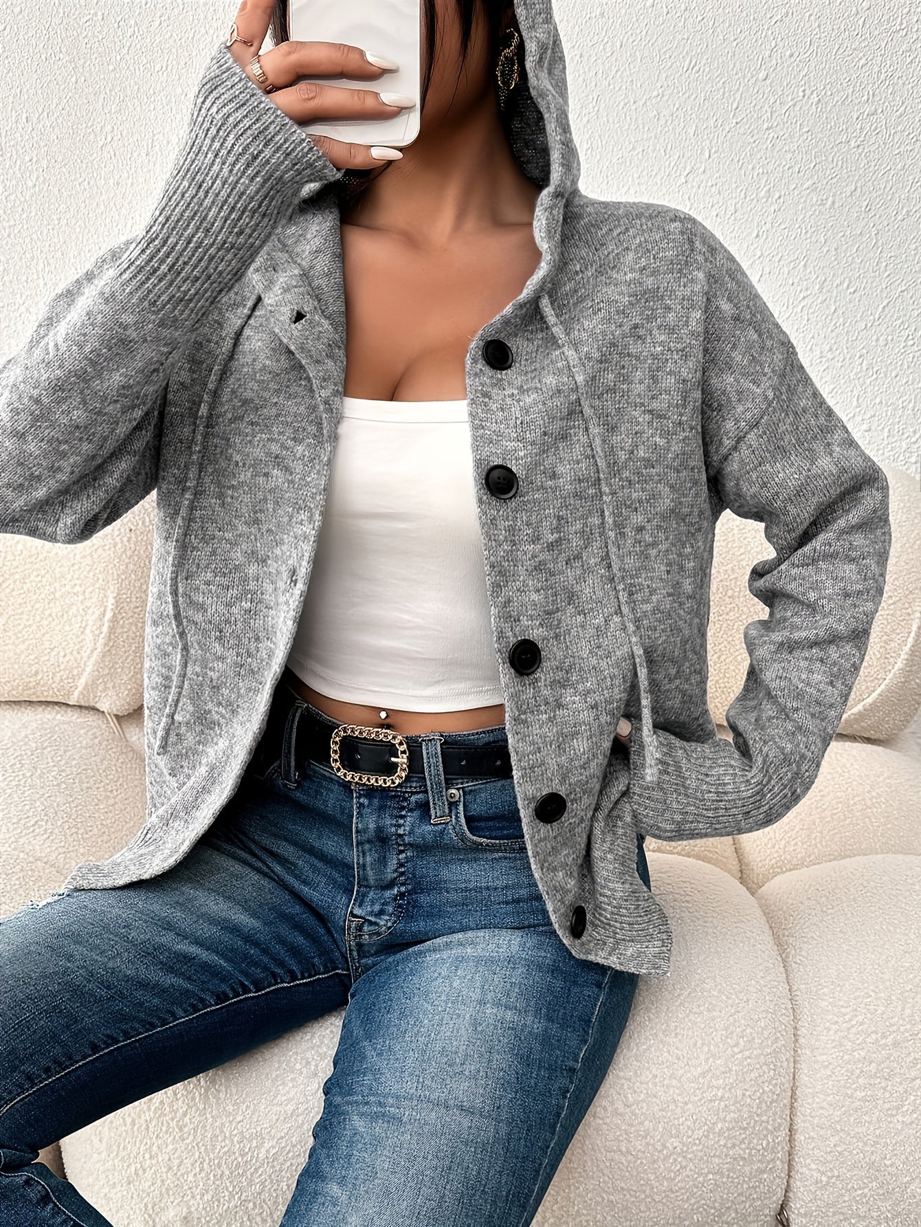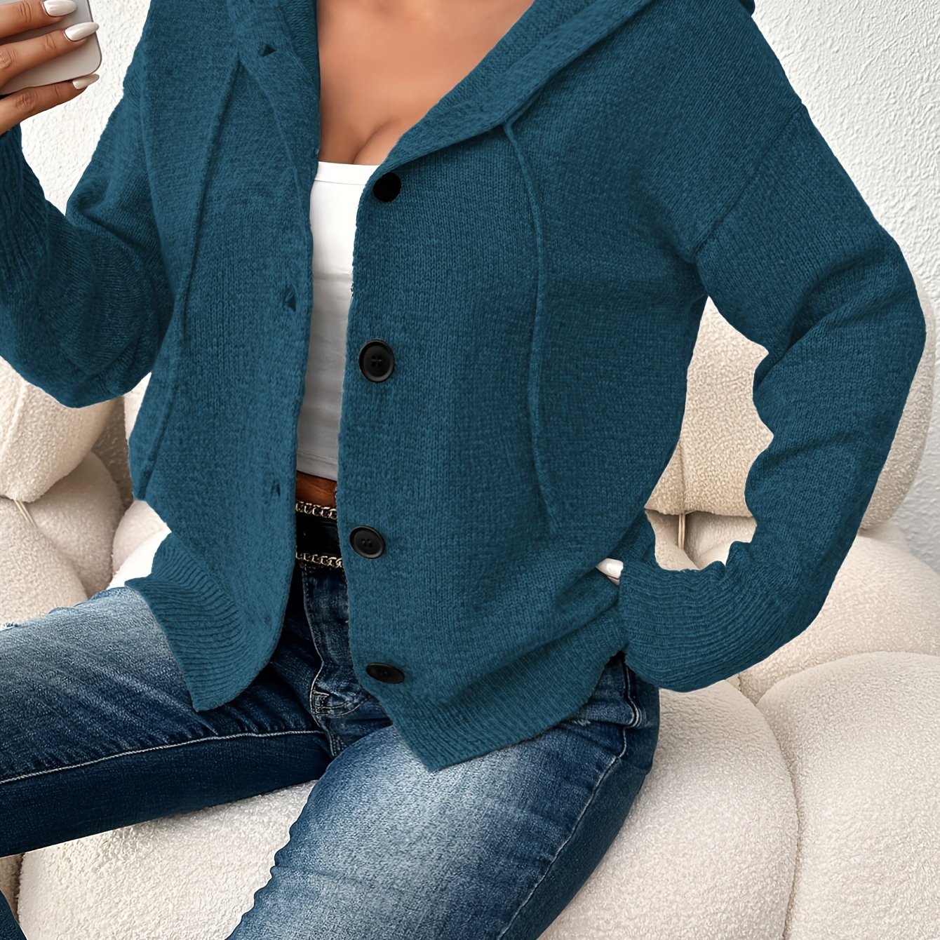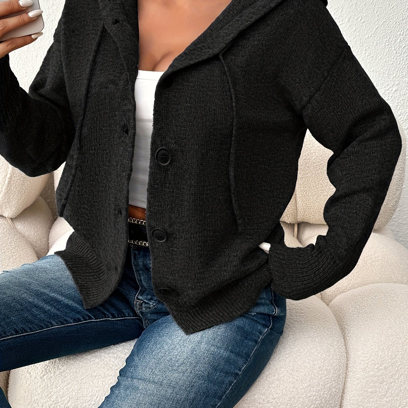 Женский кардиган с капюшоном, однородного цвета, на пуговицах, для полных женщин