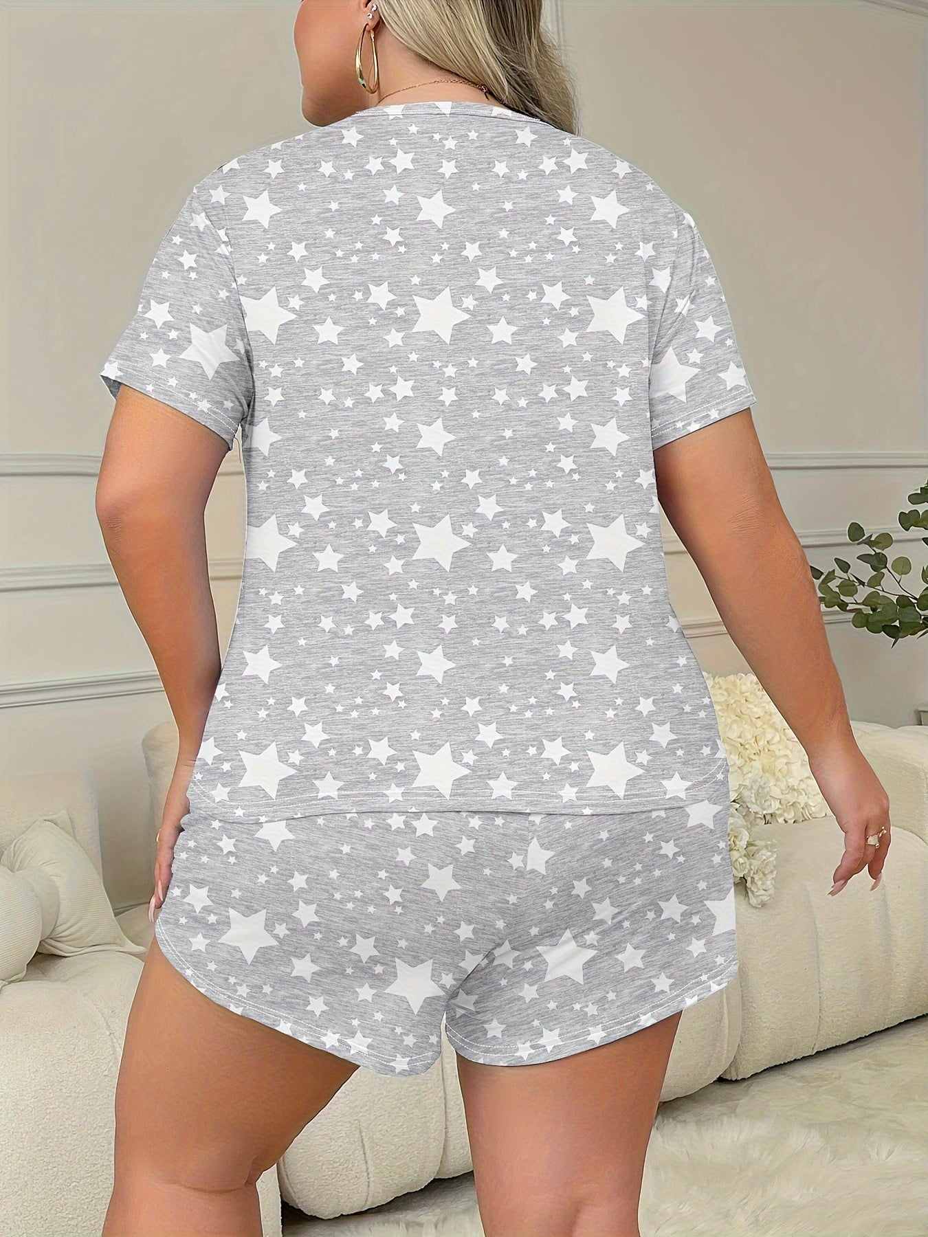 Женский комплект пижамы больших размеров с принтом звезд, короткий рукав, футболка и шорты