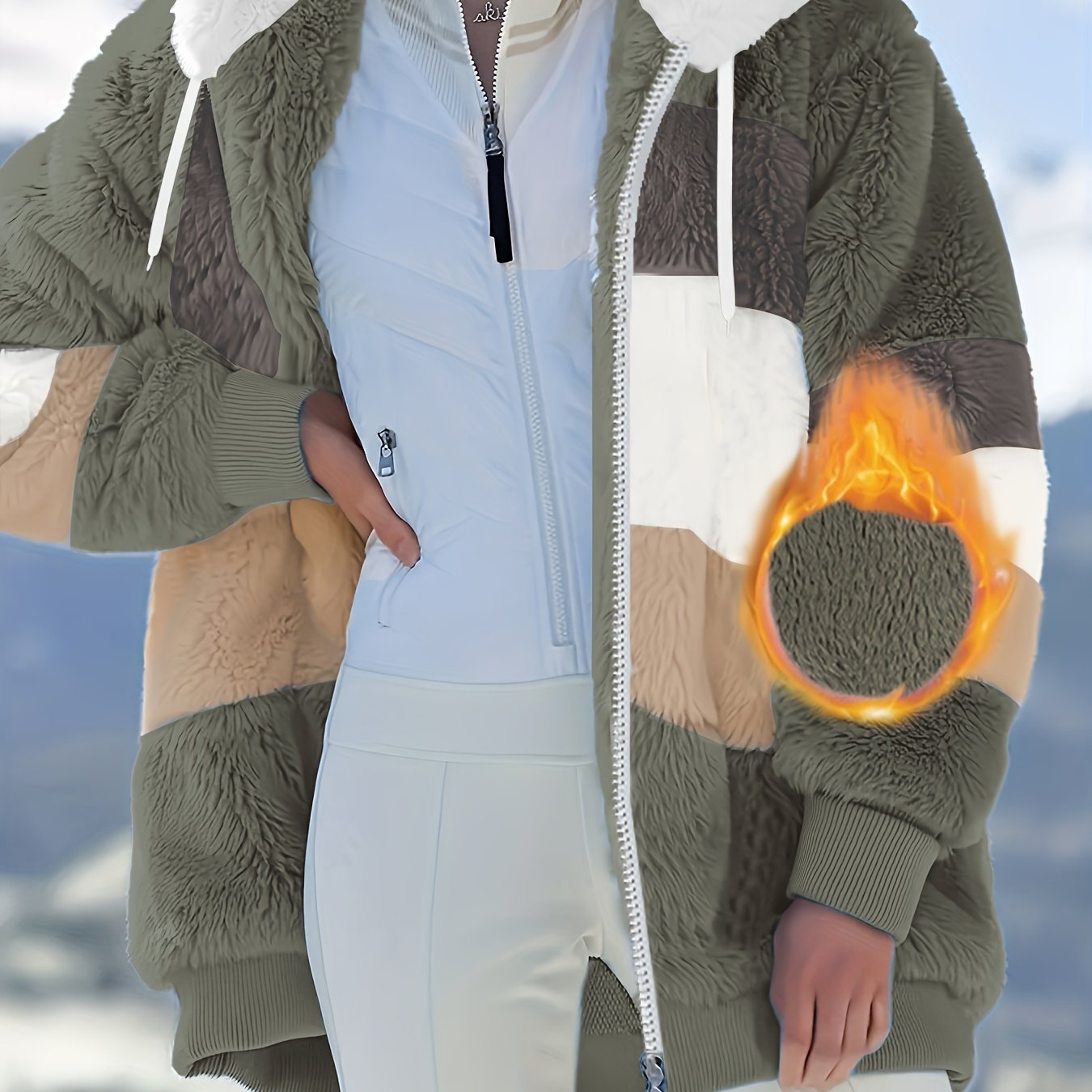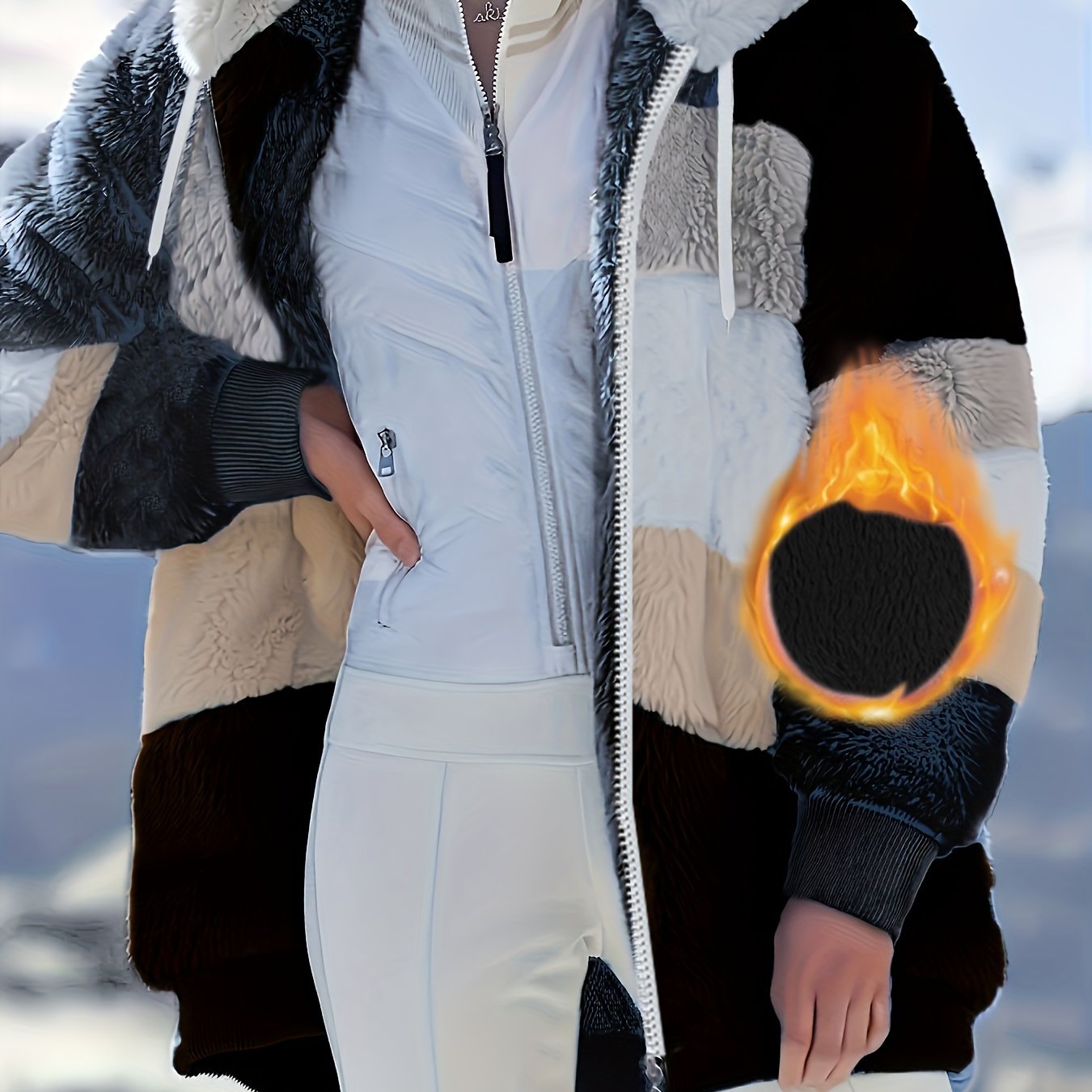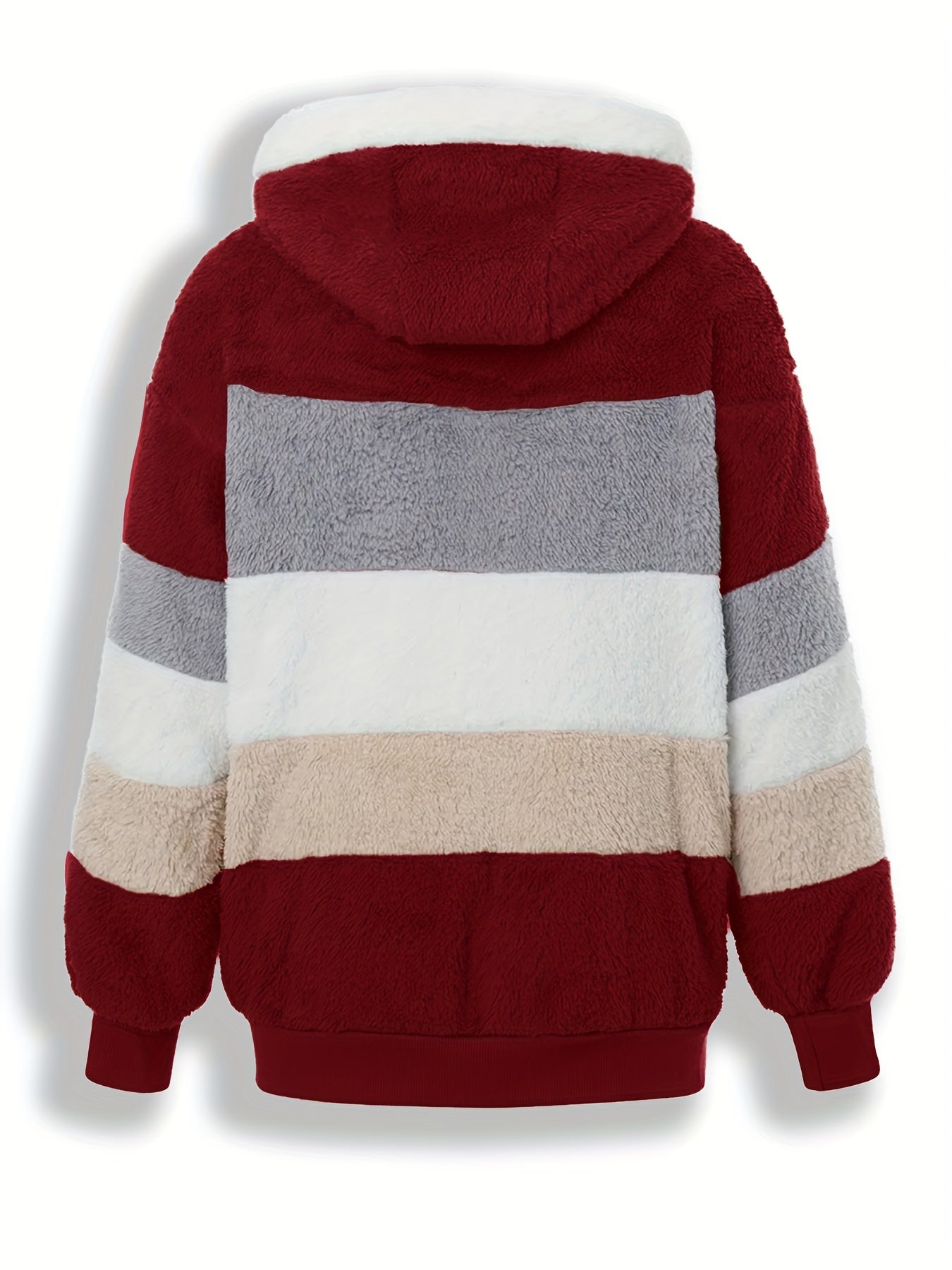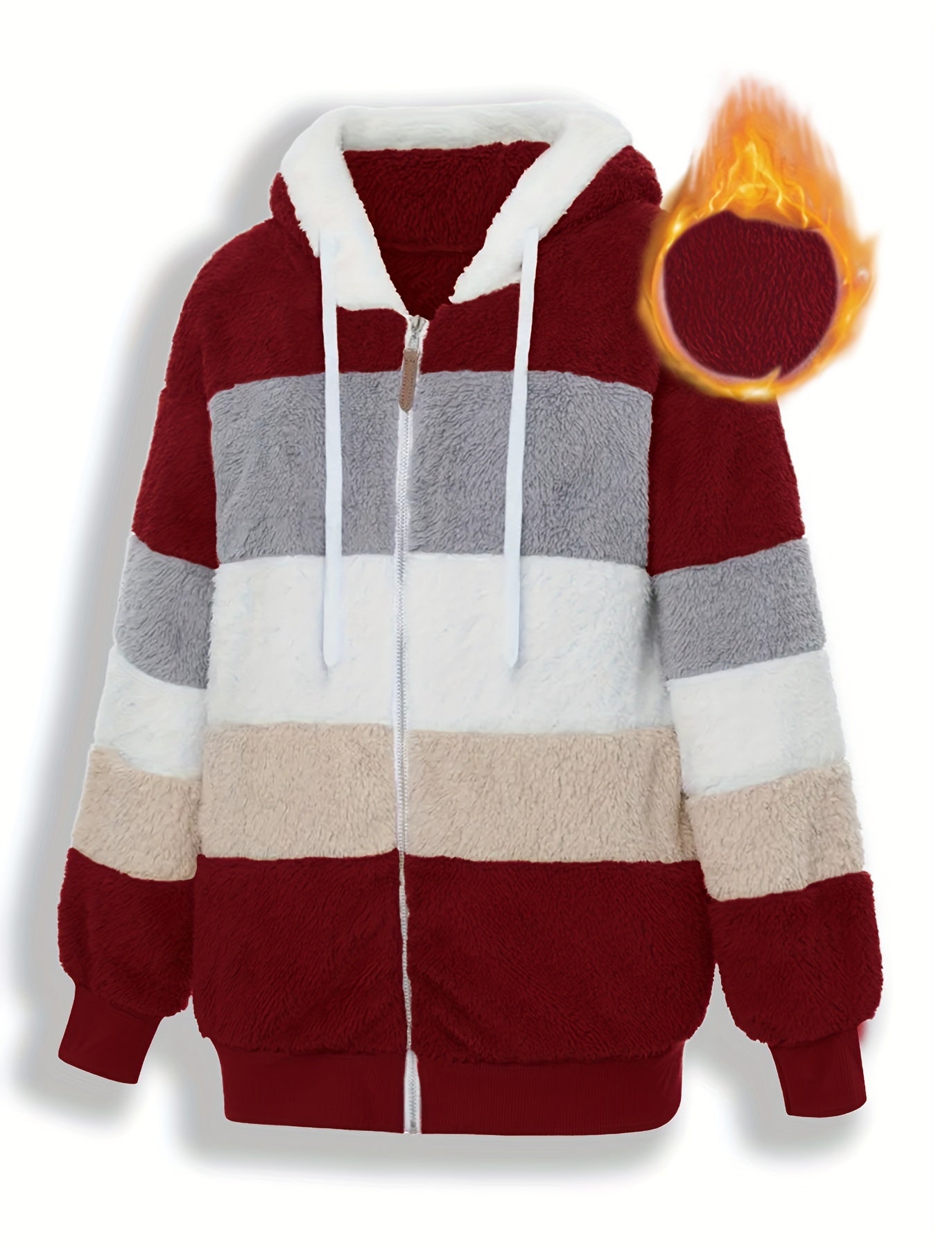 Женское пальто большого размера в полоску с пушистым капюшоном для осени и зимы, повседневное и теплое с молнией.