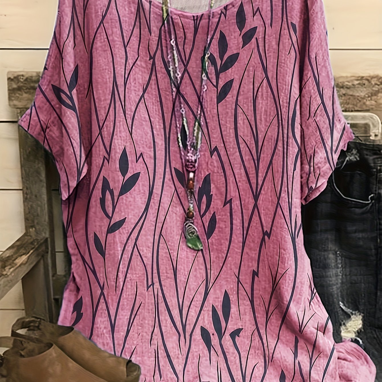 Летняя домашняя блузка для женщин больших размеров с дышащим принтом листьев