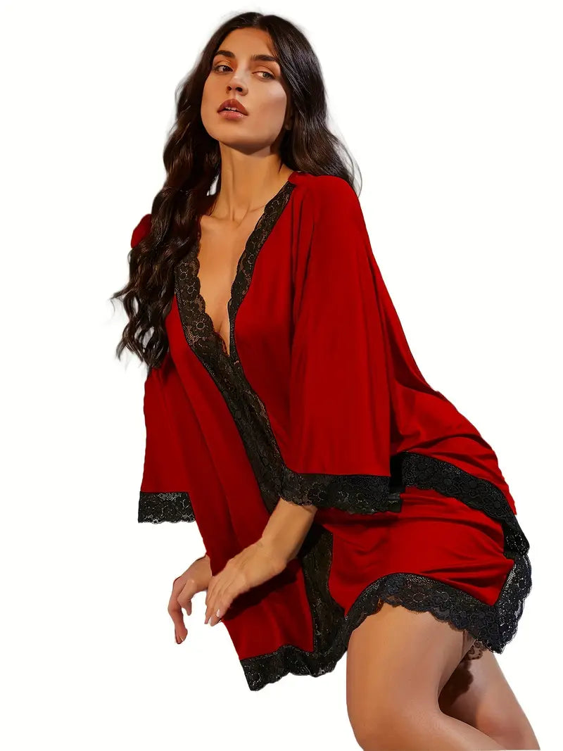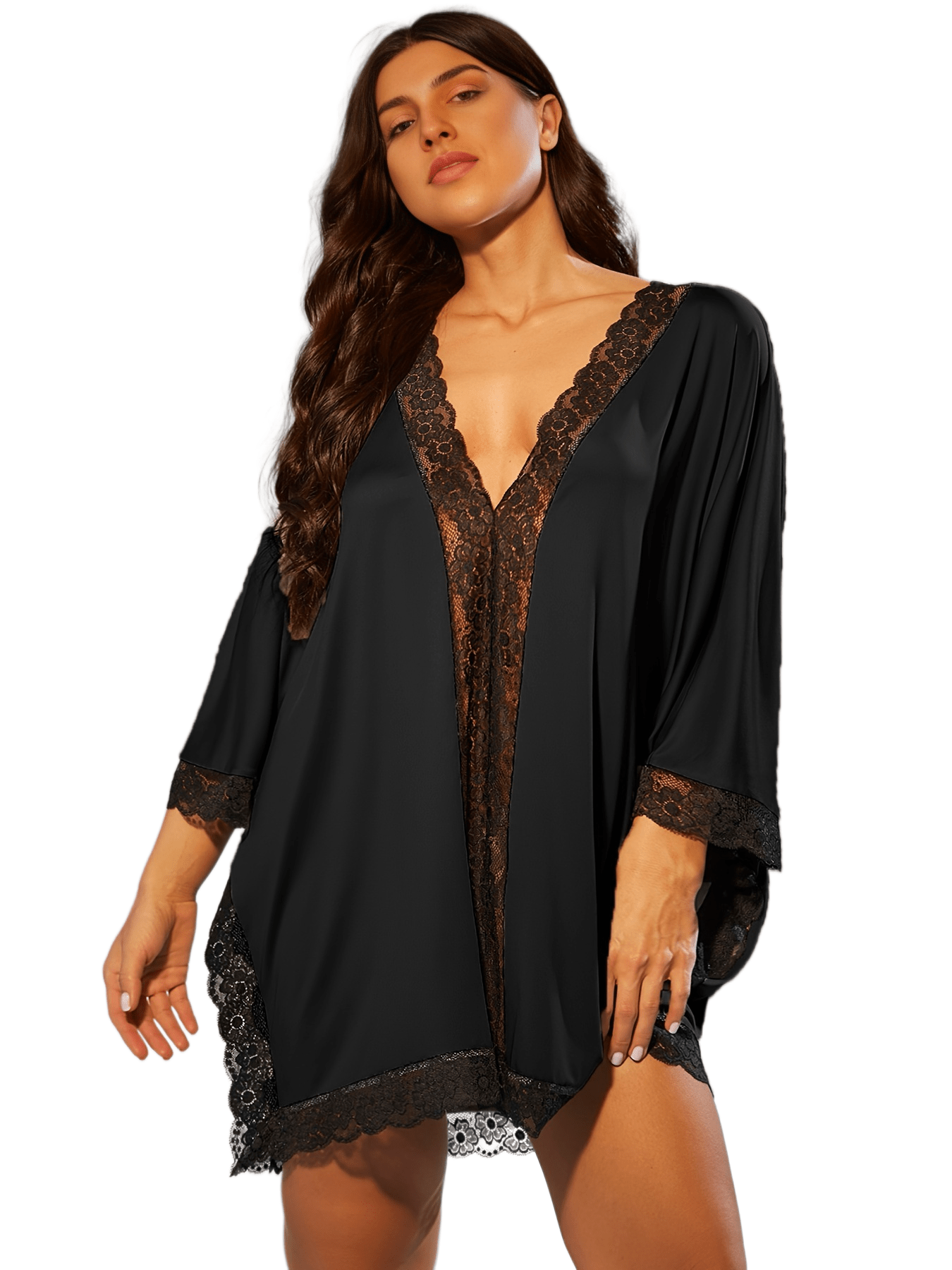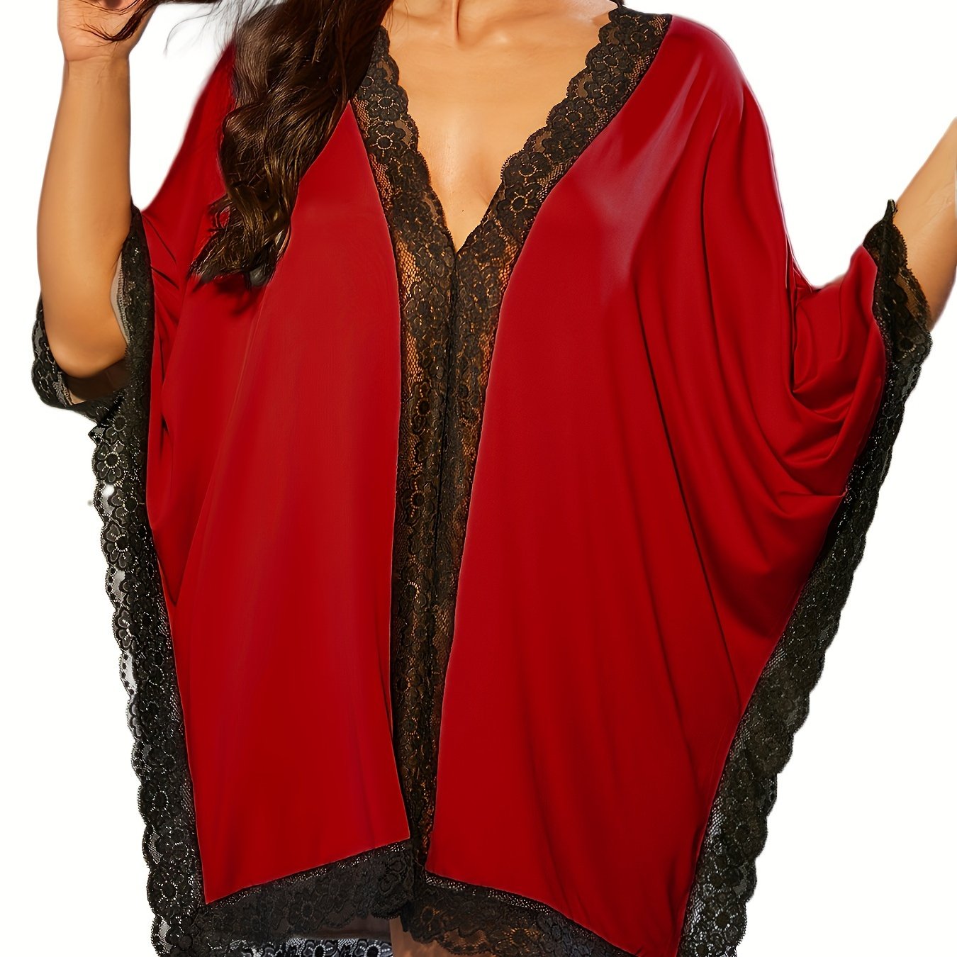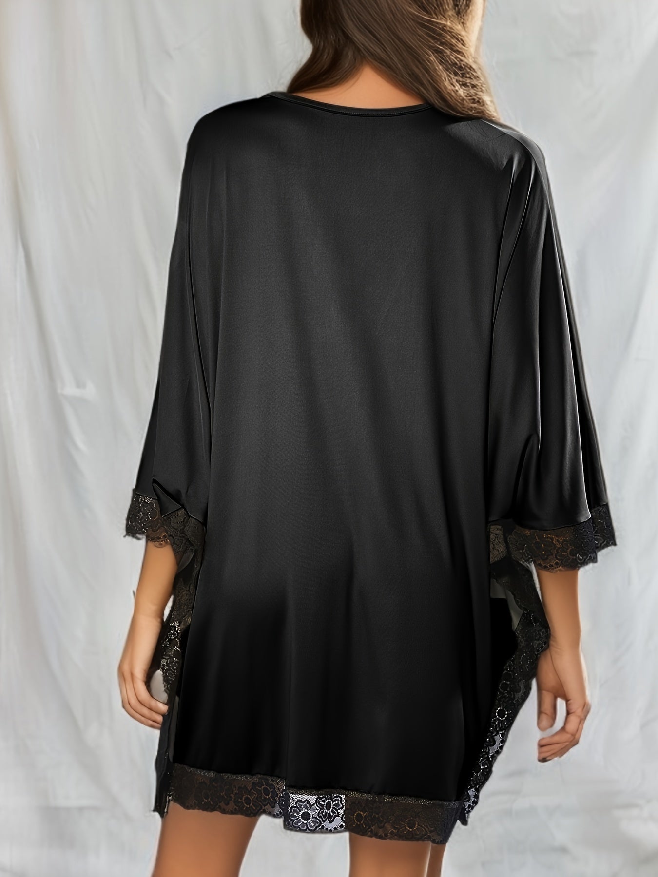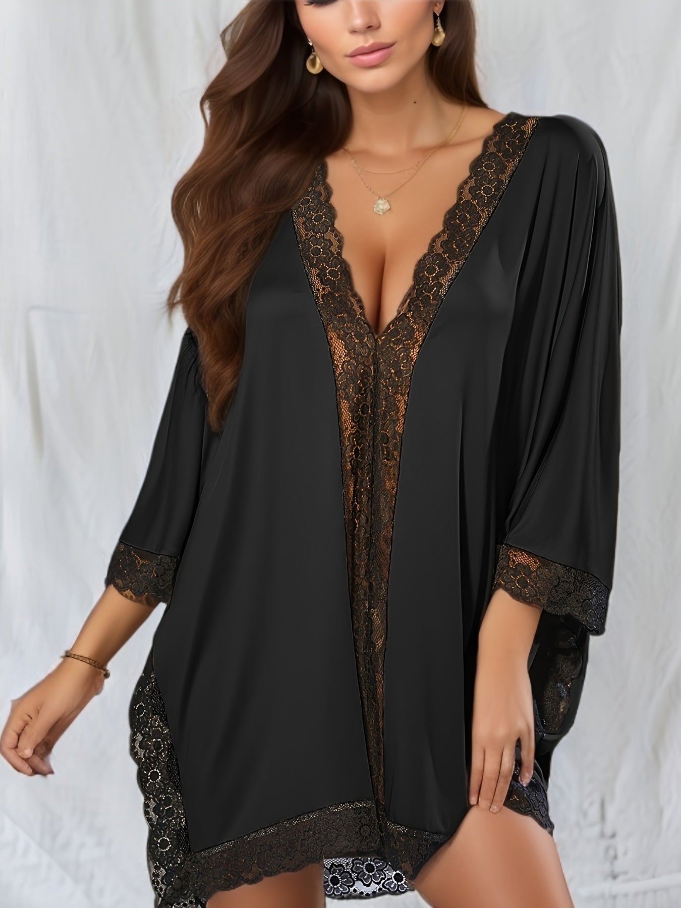 Женское платье для сна с V-образным вырезом, кружевной отделкой, свободного кроя, ночная рубашка, универсальная для всех сезонов, домашняя одежда