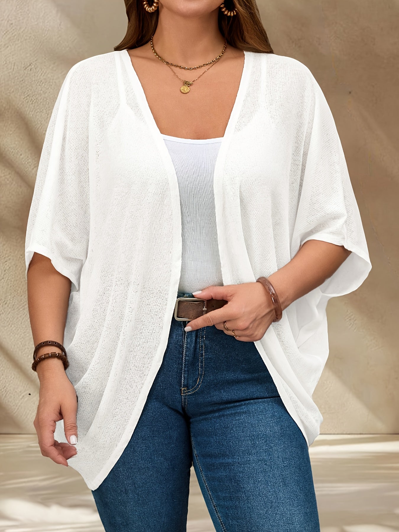 Женский кардиган большого размера белого цвета с рукавами летучая мышь и открытой передней частью, легкий из полиэстеровой смеси
