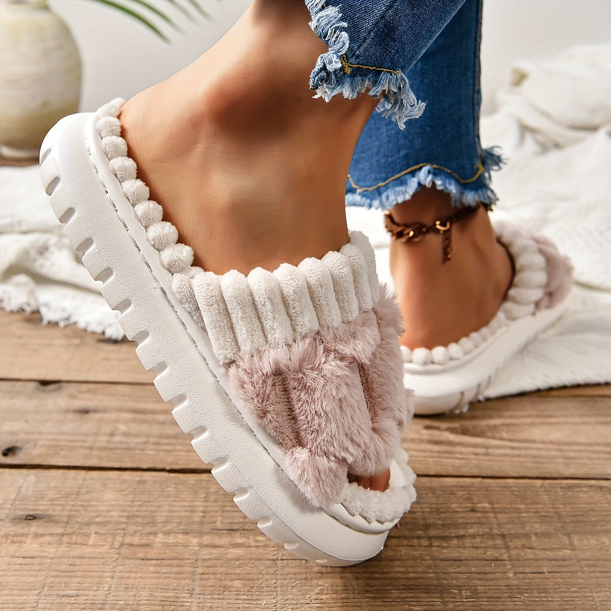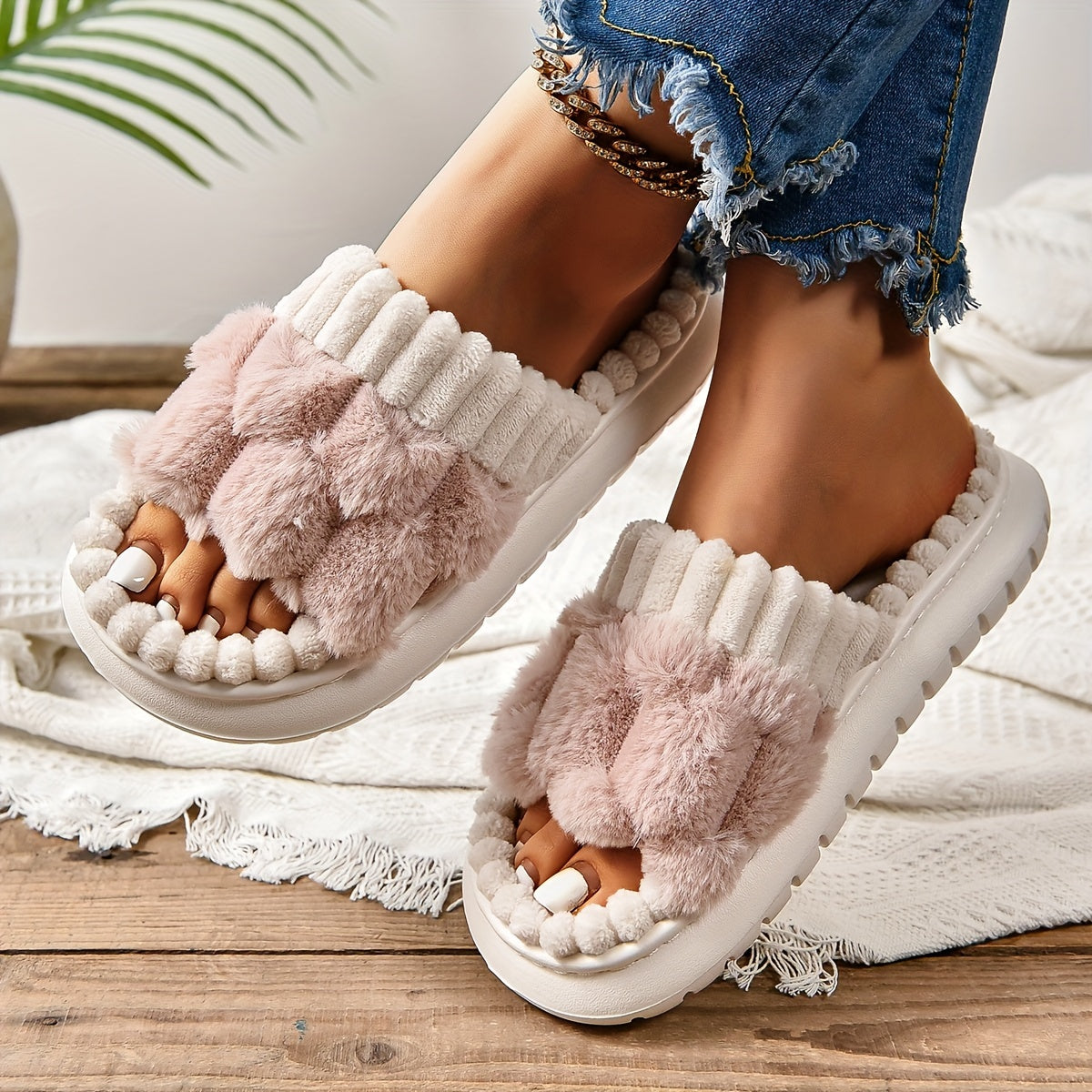 Женские плюшевые домашние тапочки-слипоны из искусственного меха с нескользящей подошвой из EVA