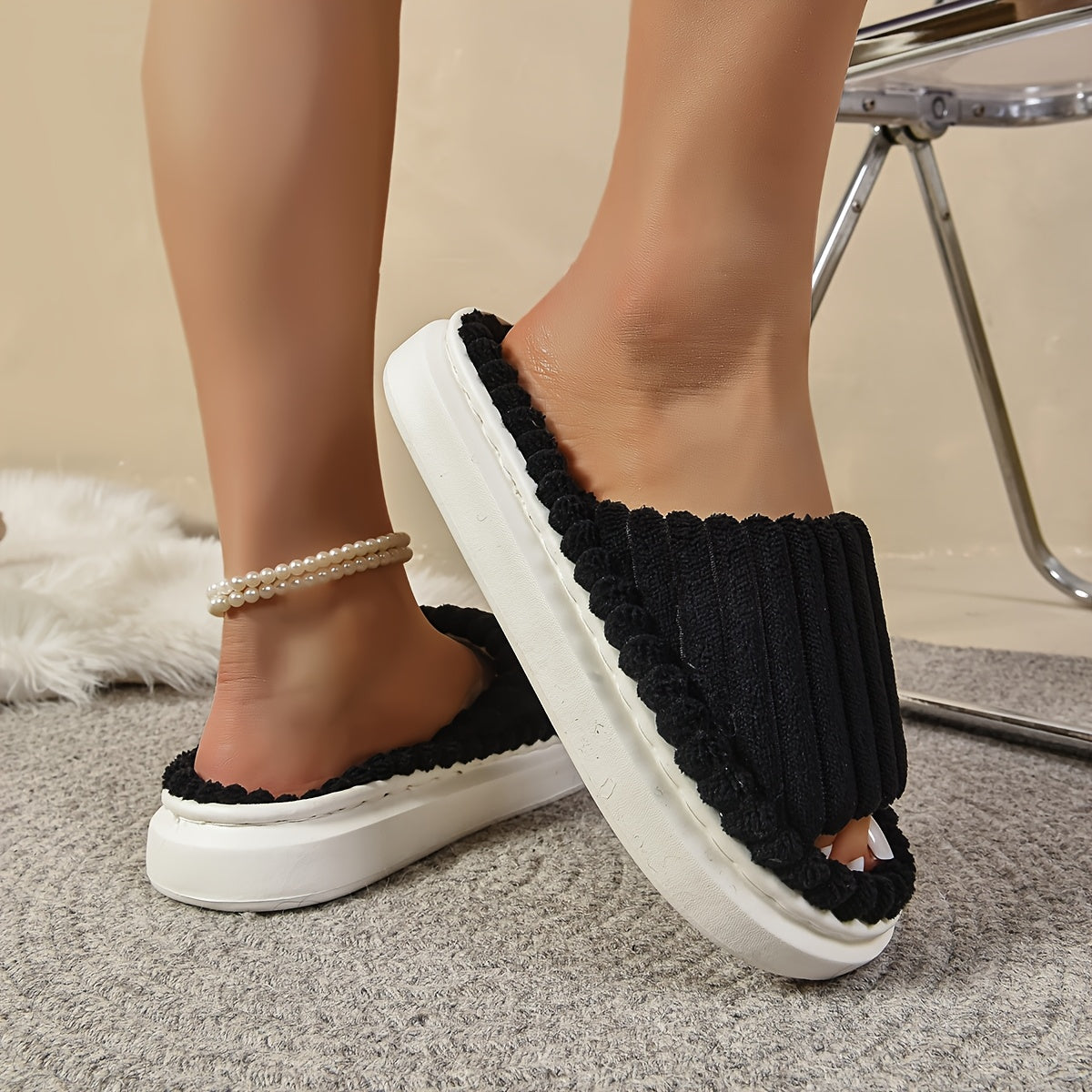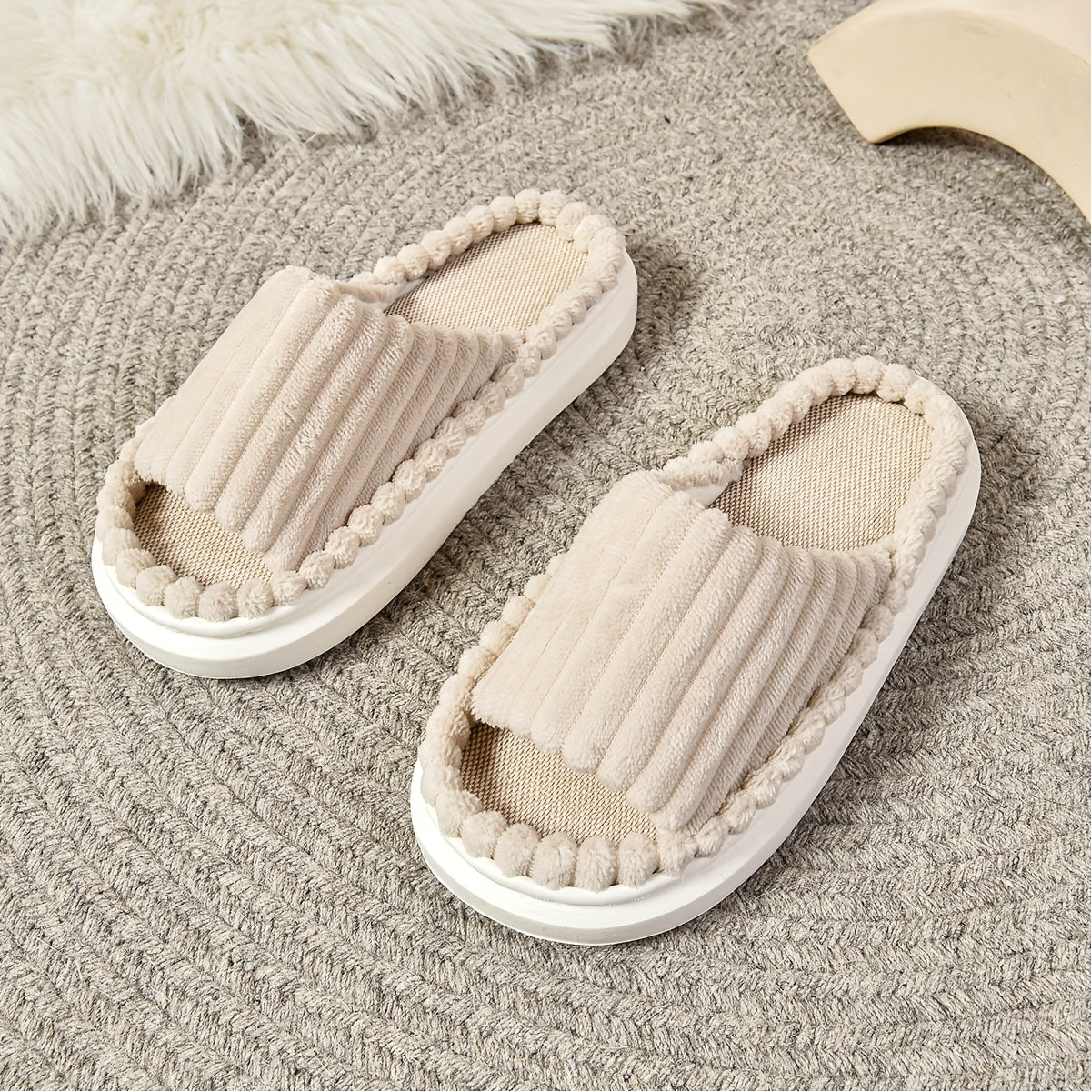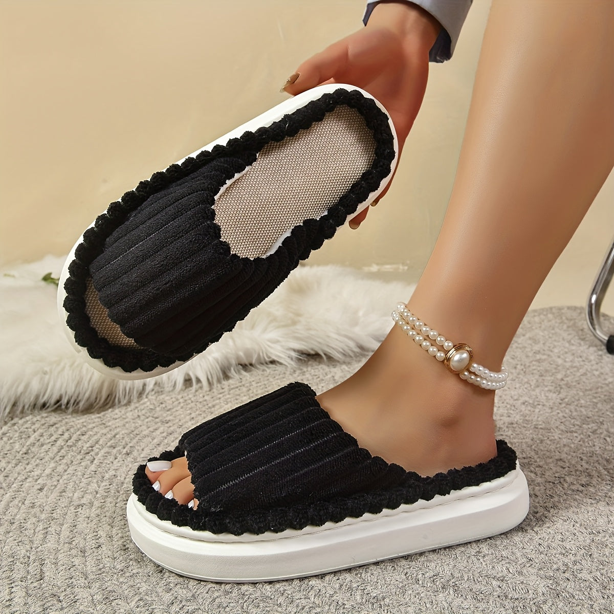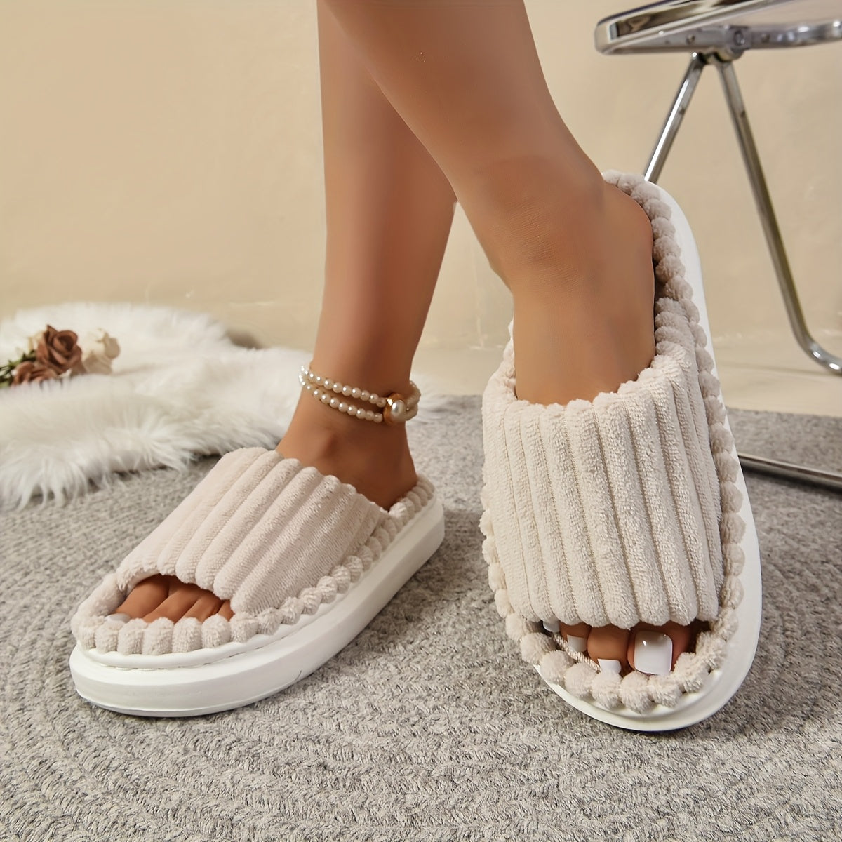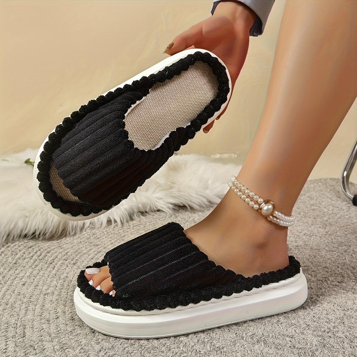 Женские плюшевые тапочки однотонные с толстой подошвой, универсальная домашняя обувь для всех сезонов