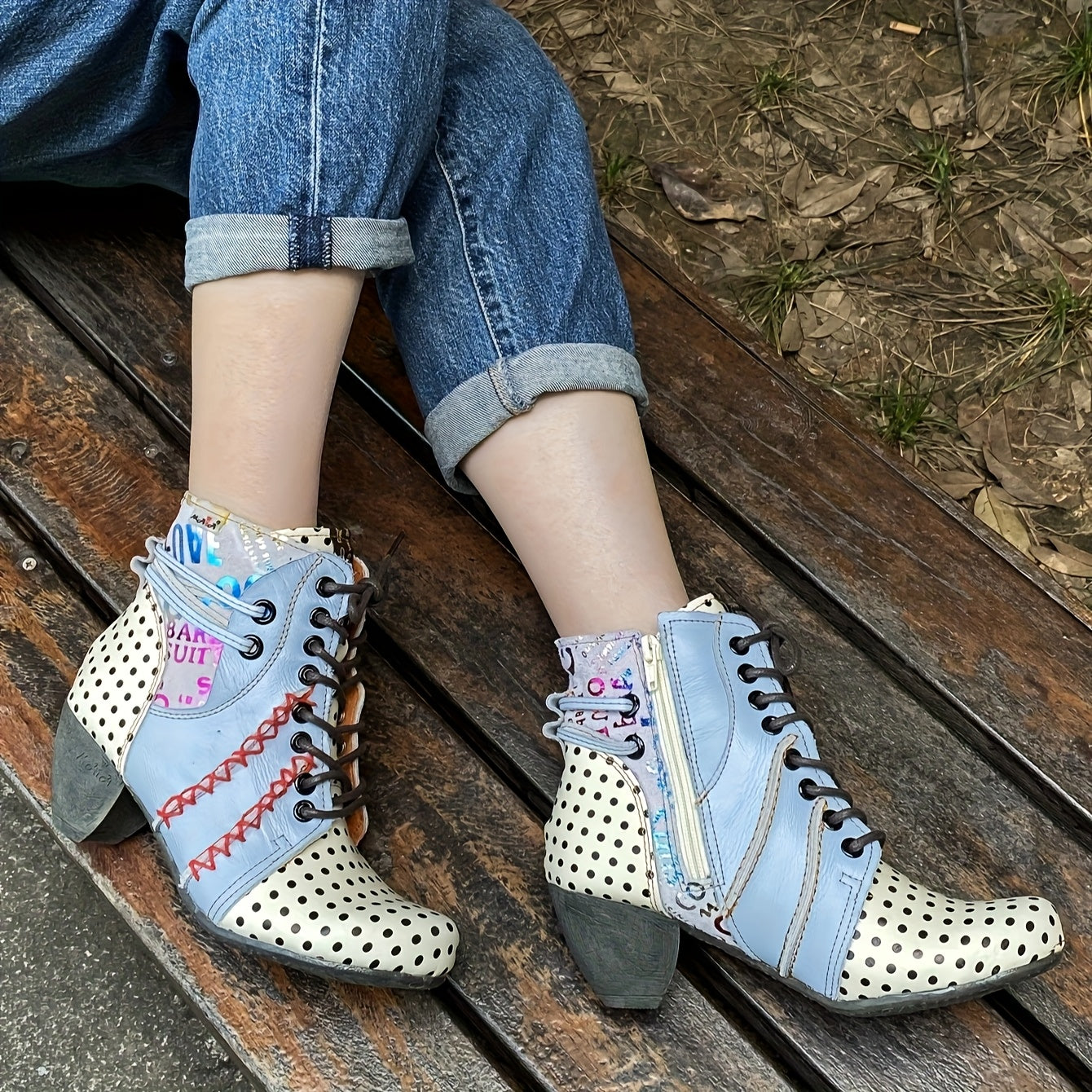 Женские ботинки с полукруглым принтом на щиколотке, средний каблук, пайетки, надписи, шнуровка