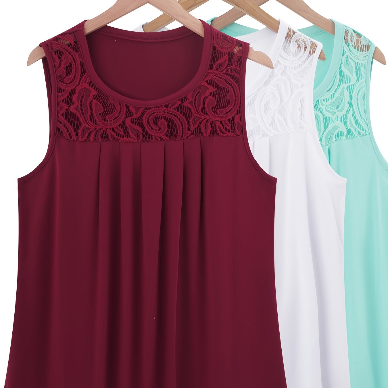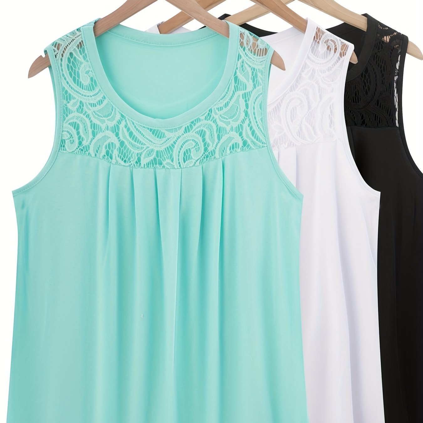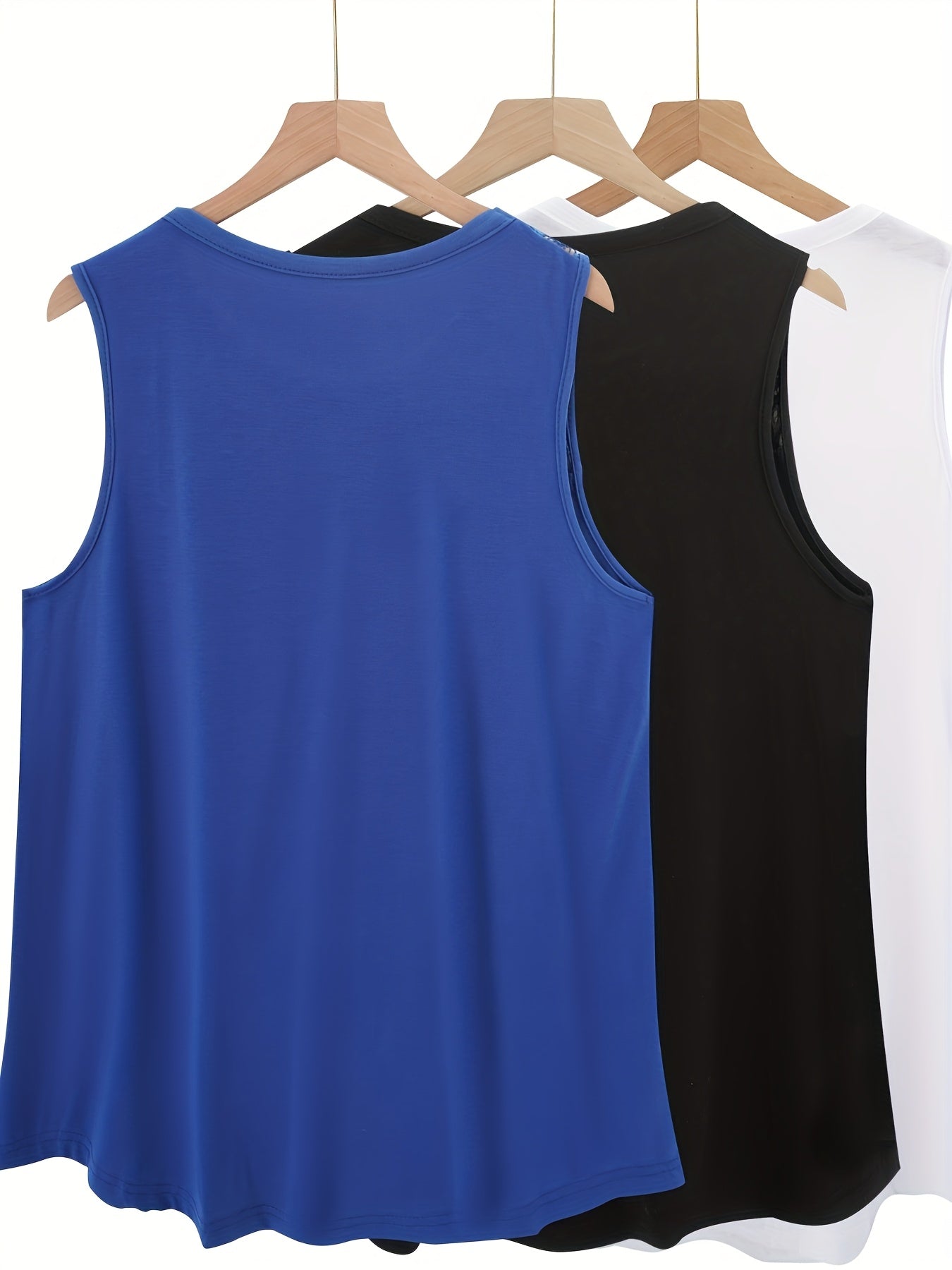 Набор из 3 женских трикотажных жилетов из полиэстера однотонного цвета с круглым вырезом, повседневные рубашки