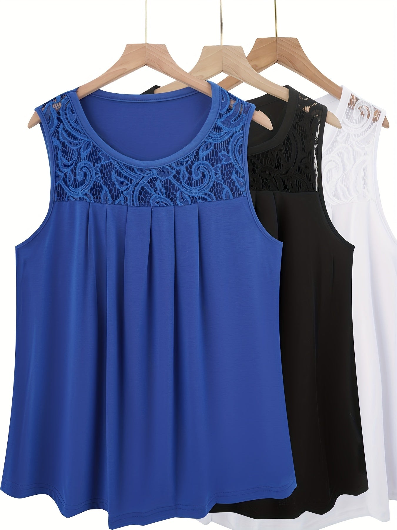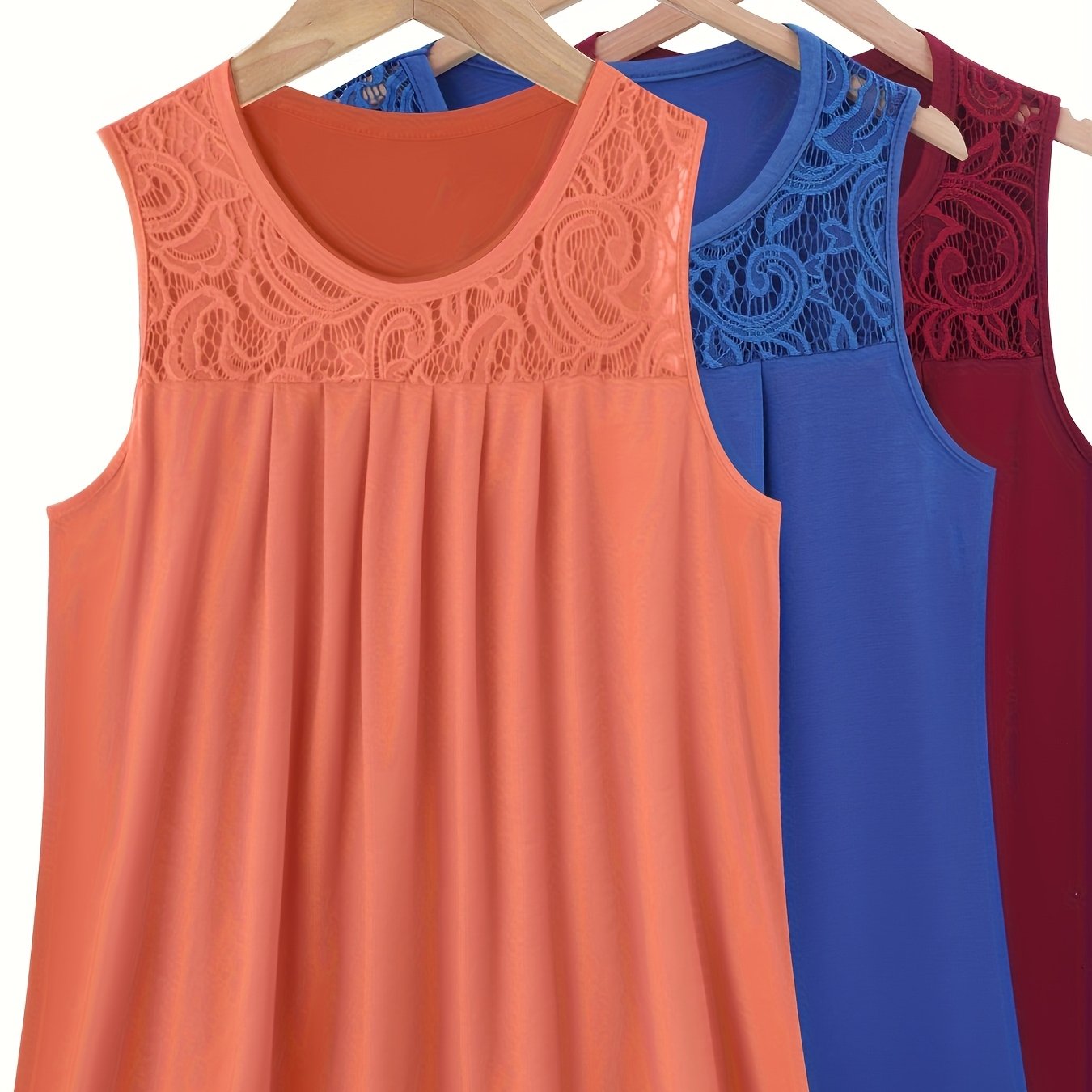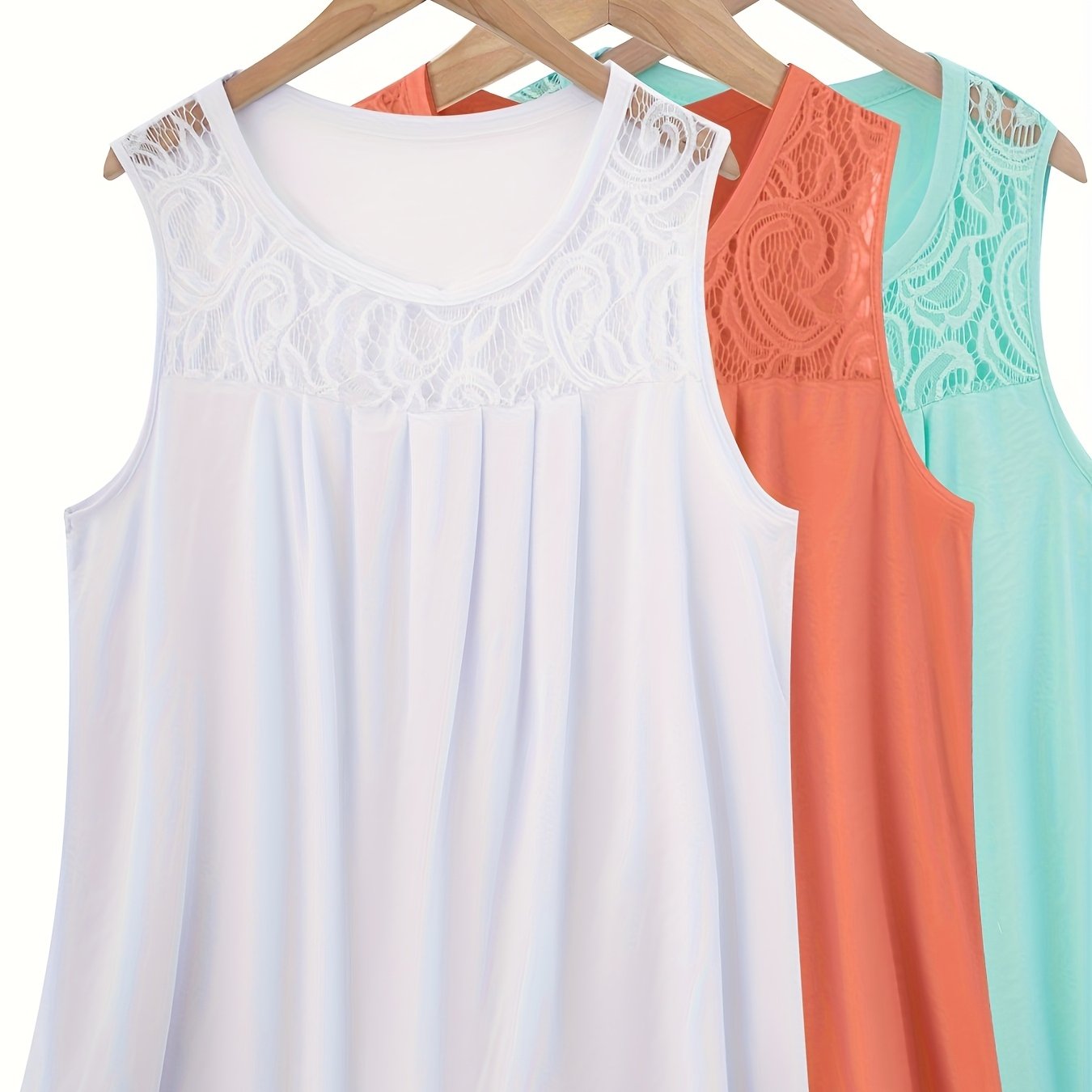 Набор из 3 женских трикотажных жилетов из полиэстера однотонного цвета с круглым вырезом, повседневные рубашки