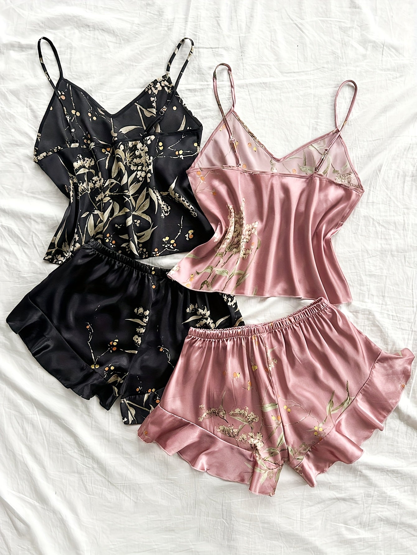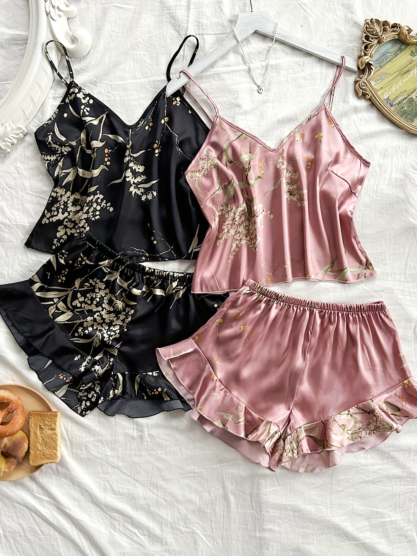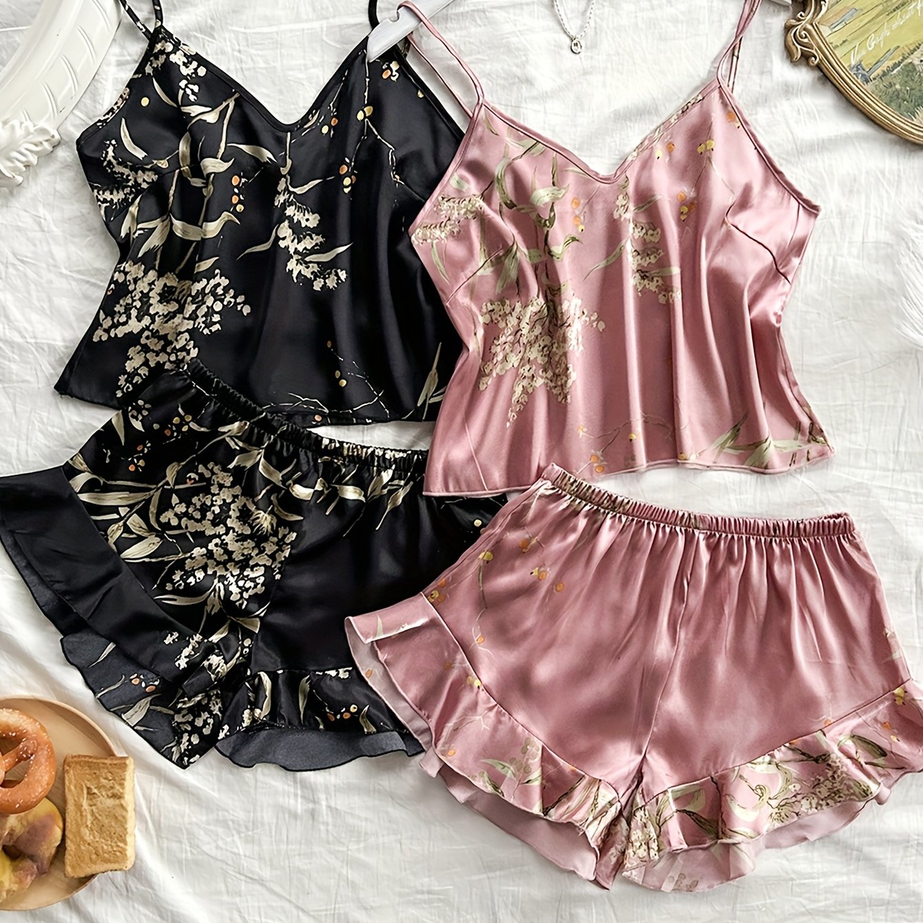 Женские пижамные комплекты из полиэстера с рюшами и принтами, 4 шт., для всех сезонов