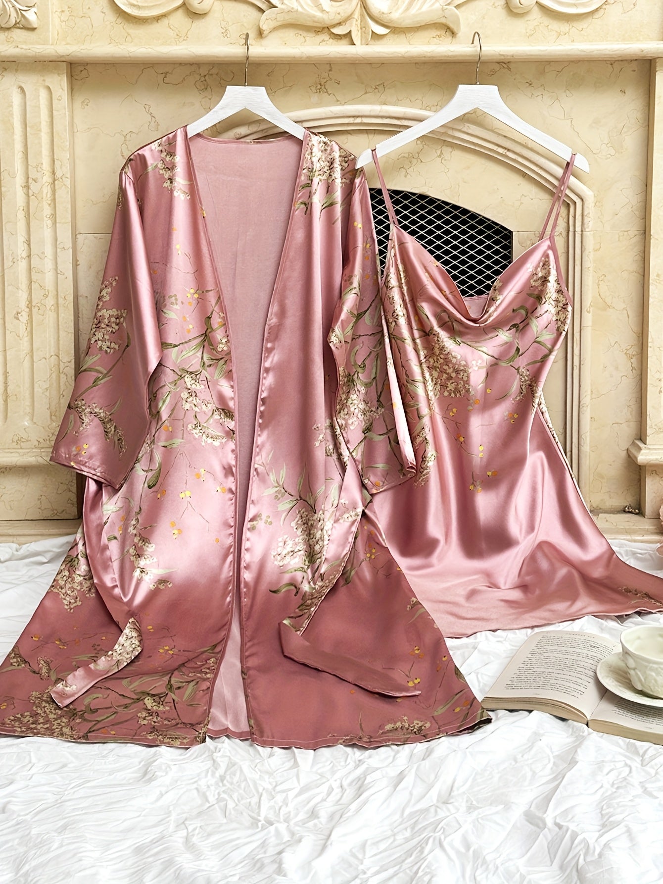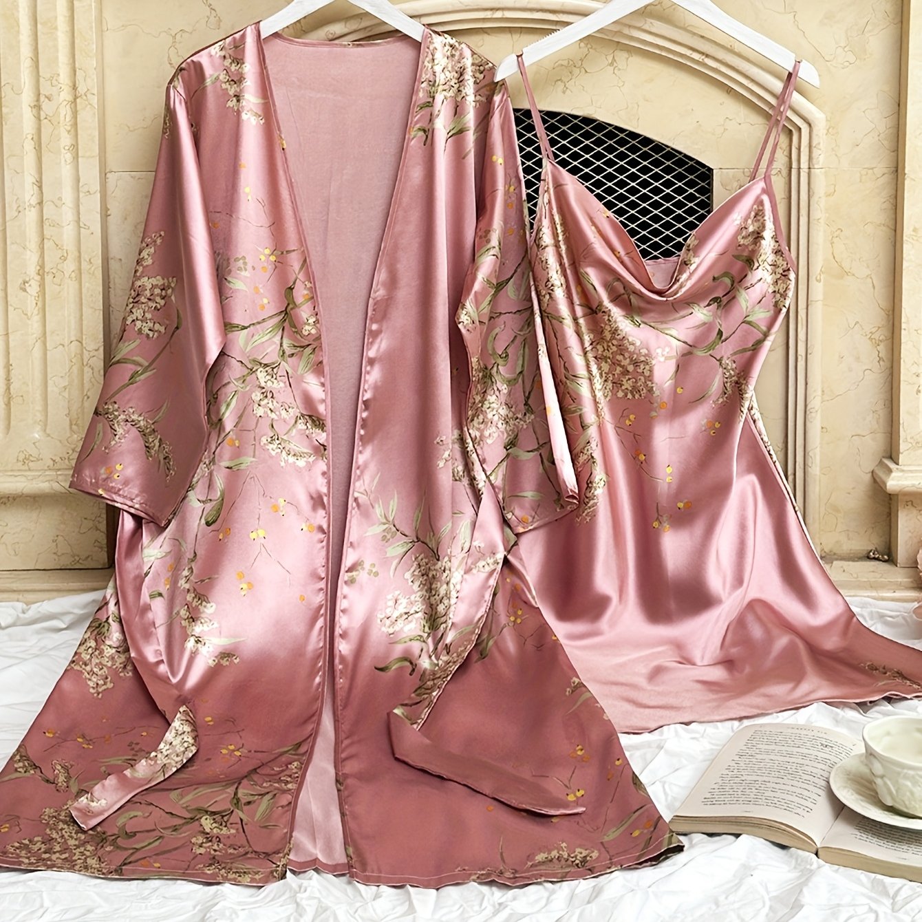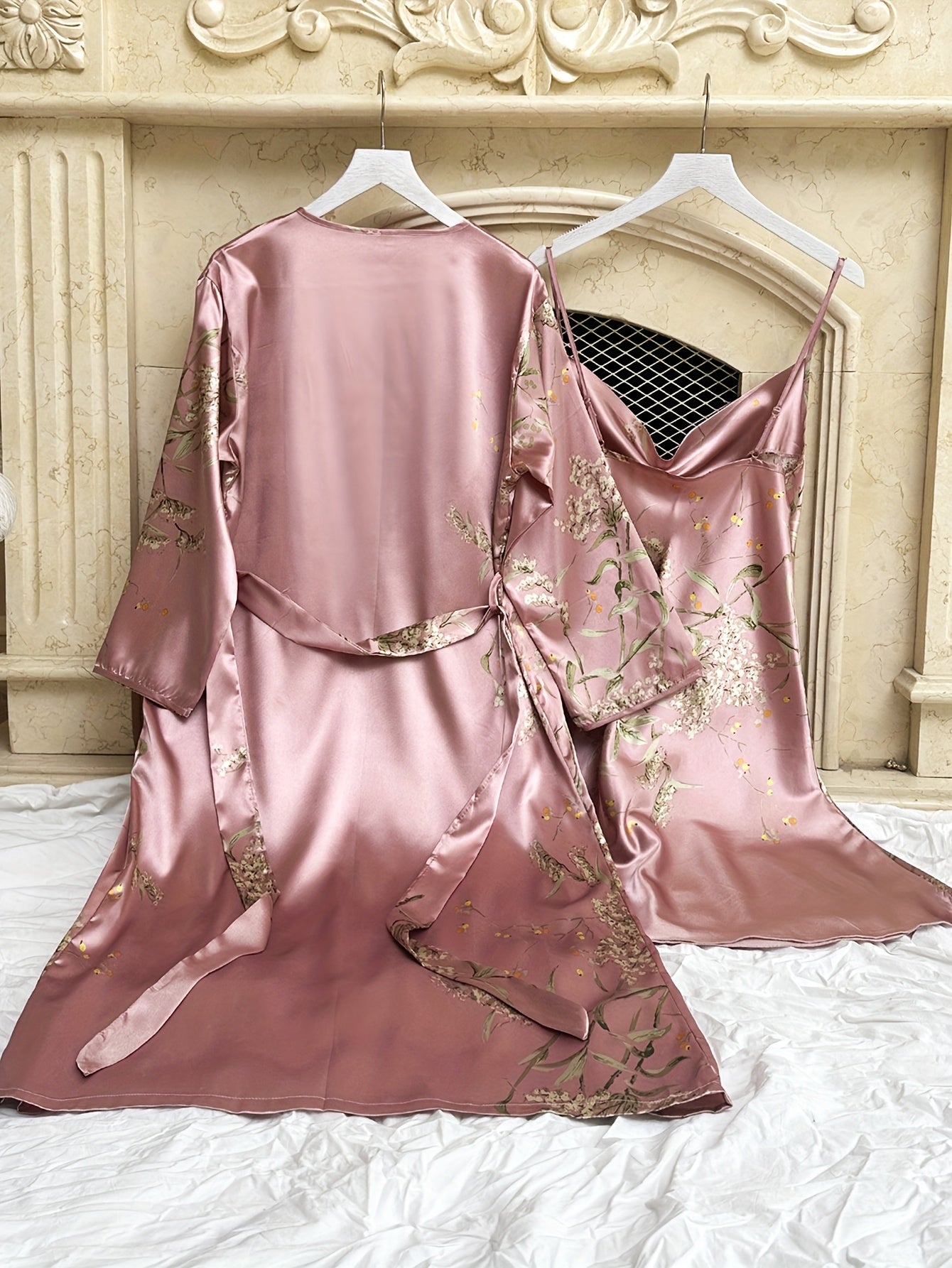 Женский набор из полиэстера: халат из 2 предметов с капюшоном, топ и халат для сна и отдыха, дышащий комплект ночной одежды