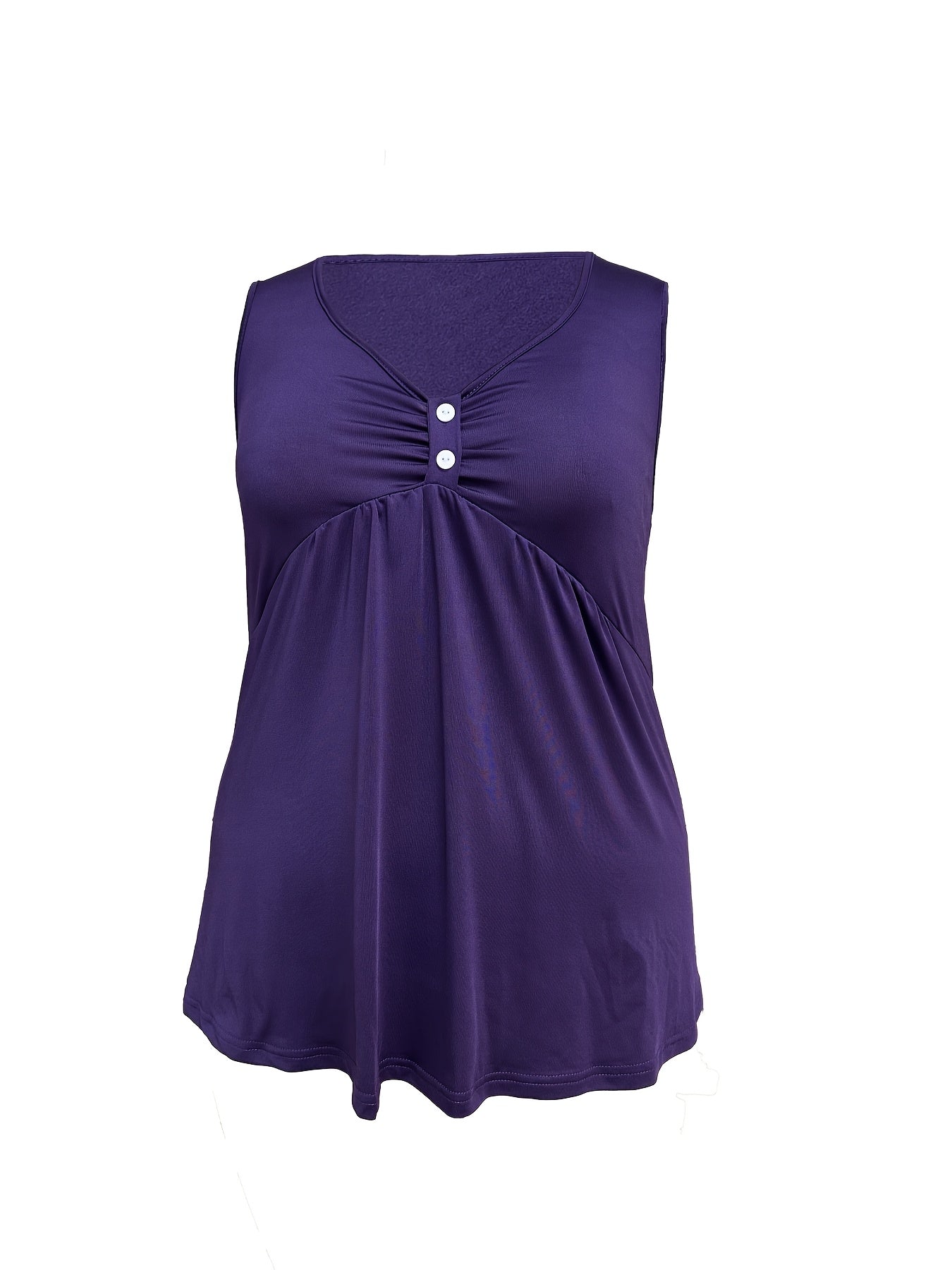 Женский фиолетовый топ без рукавов с V-образным вырезом и пуговицами