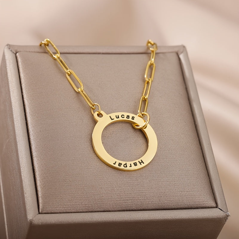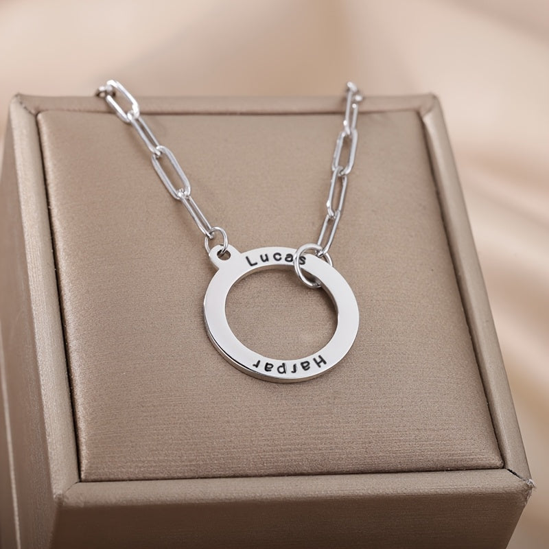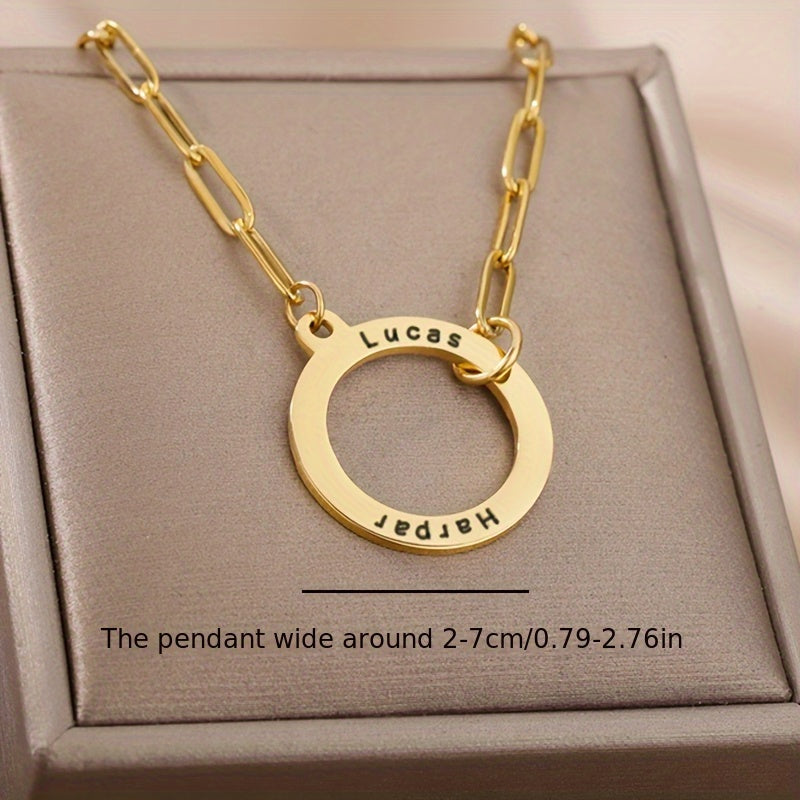 Женское круглое подвесное ожерелье с индивидуальными двойными именами, цепочка из нержавеющей стали, идеально подходит для повседневной носки и рождественского подарка, уникальные персонализированные украшения, круглый дизайн, праздничный подарок