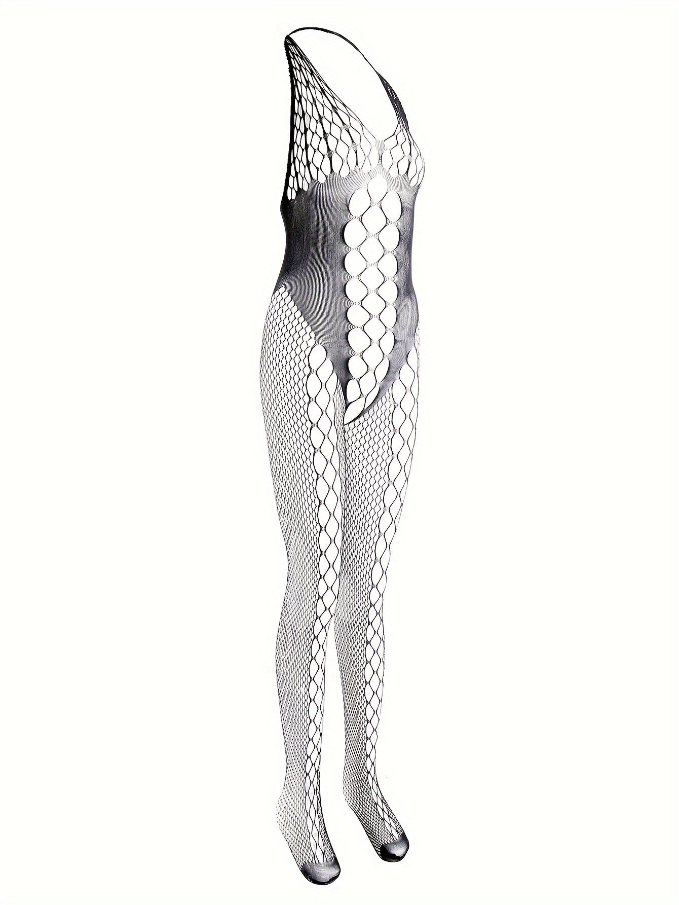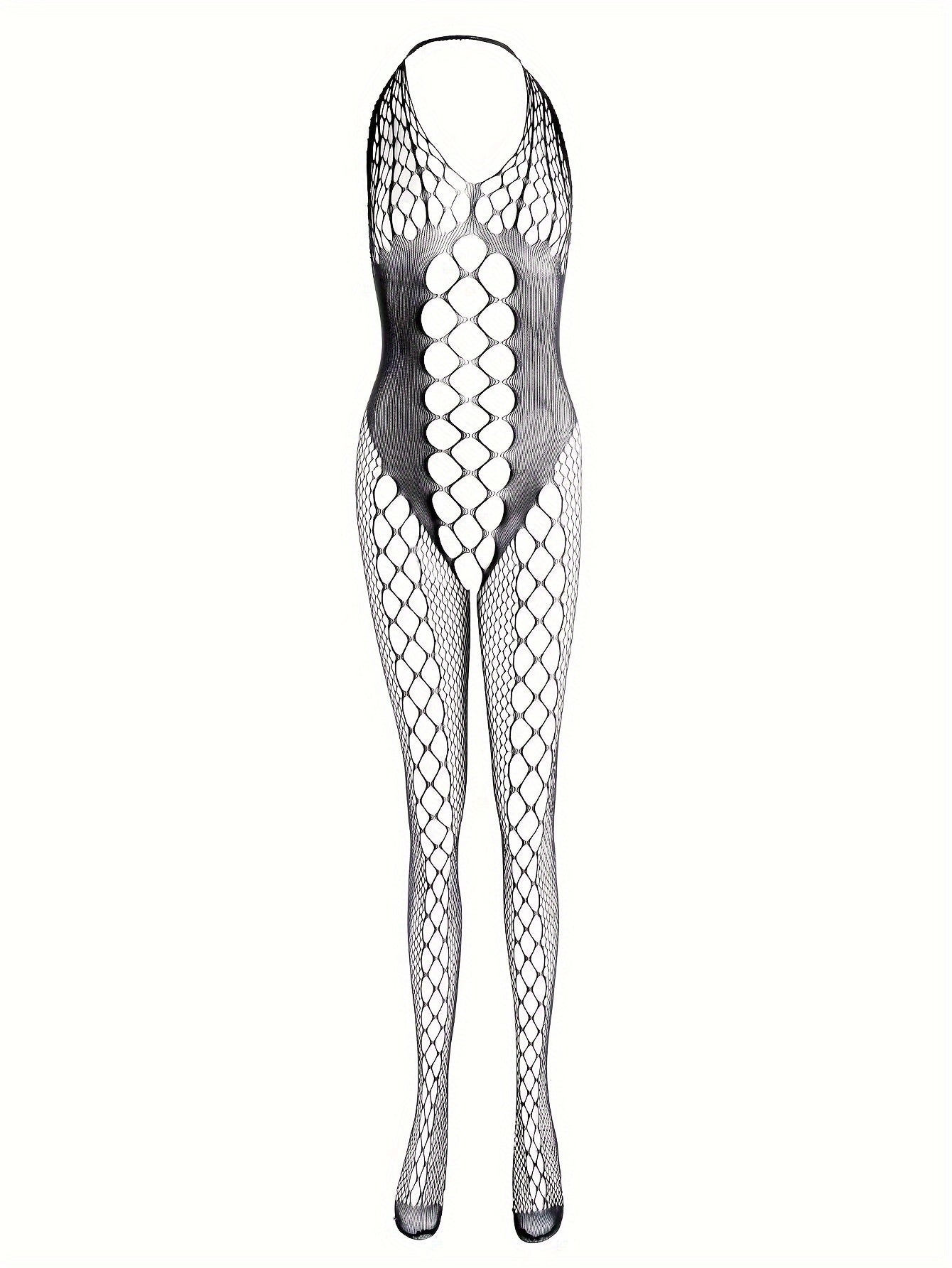Женское сексуальное белье: Бодистокинг из сетки с халтером и безрукавным дизайном с вырезами.