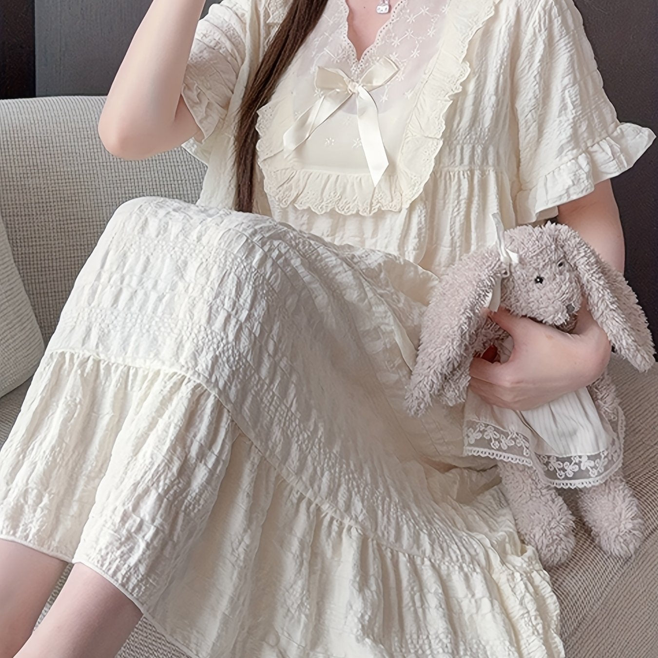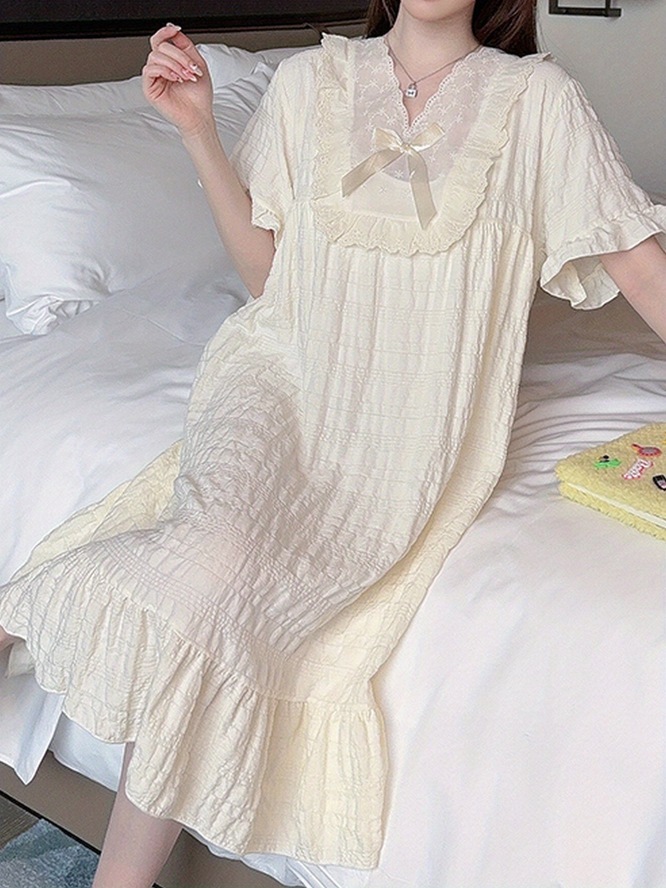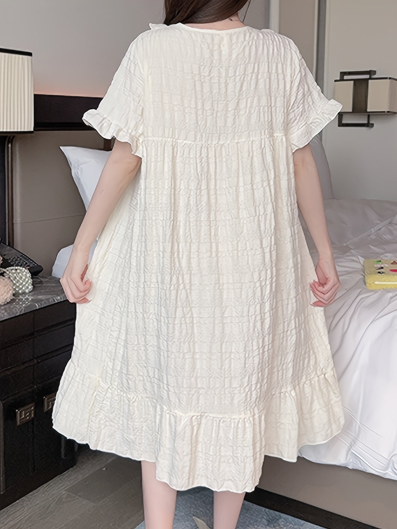 Женская ночная рубашка с коротким рукавом, летняя, с рюшами, свободного кроя, ночное платье