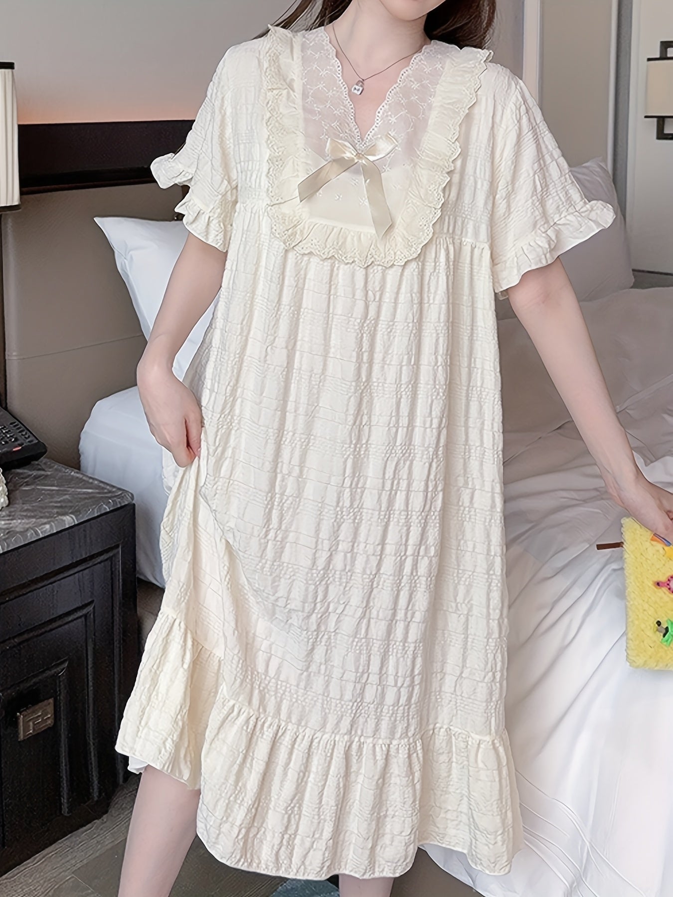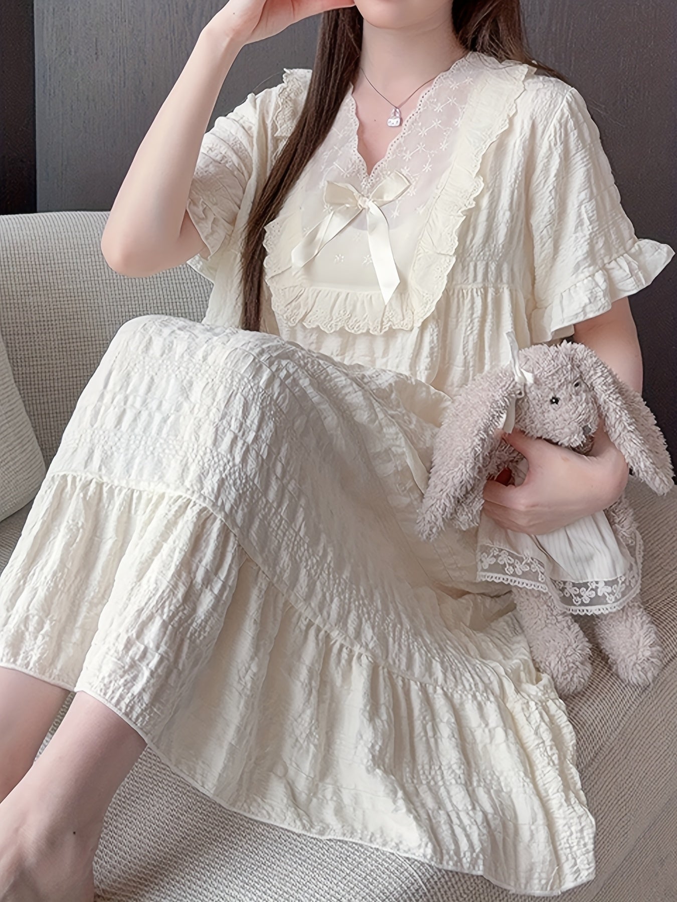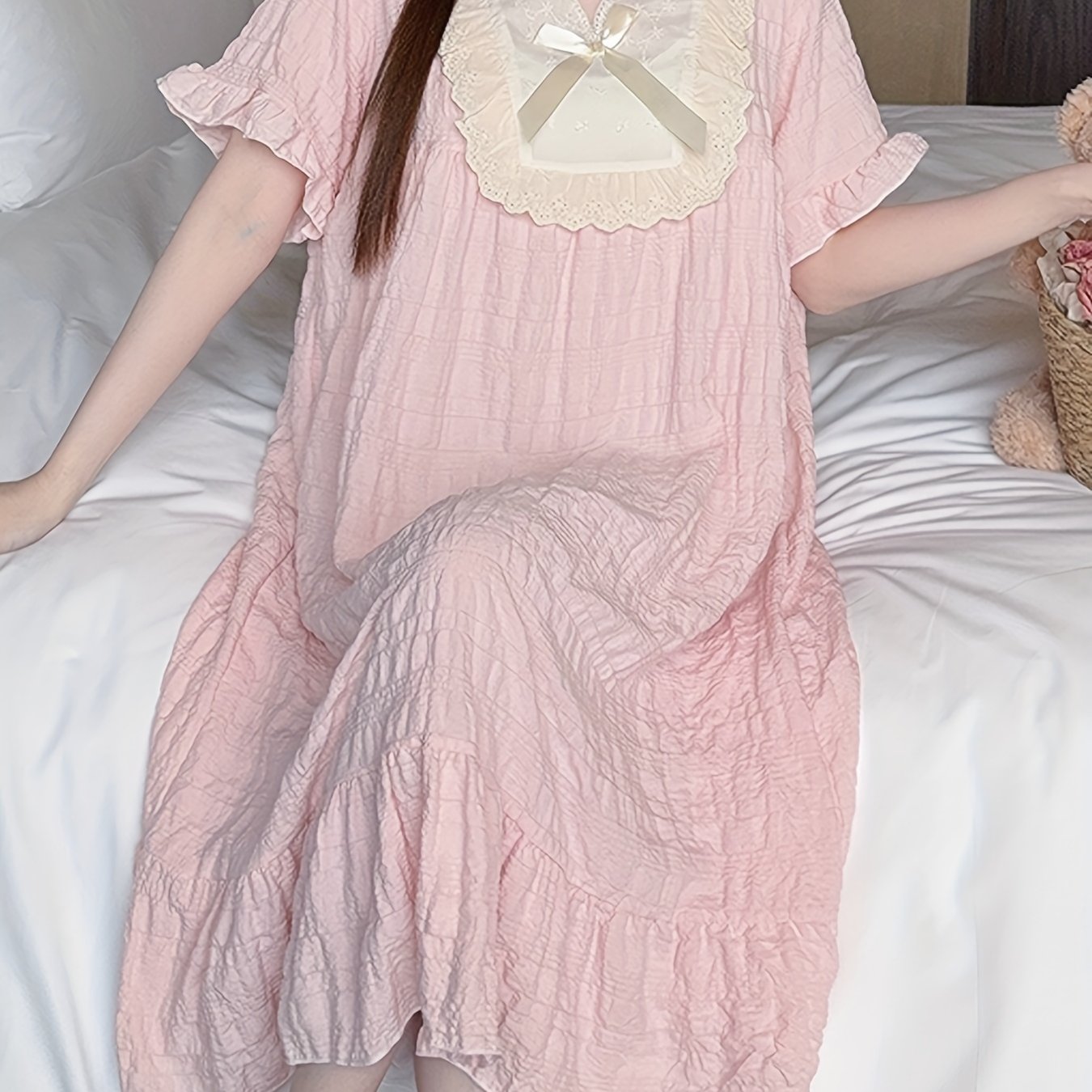 Женская ночная рубашка с коротким рукавом, летняя, с рюшами, свободного кроя, ночное платье