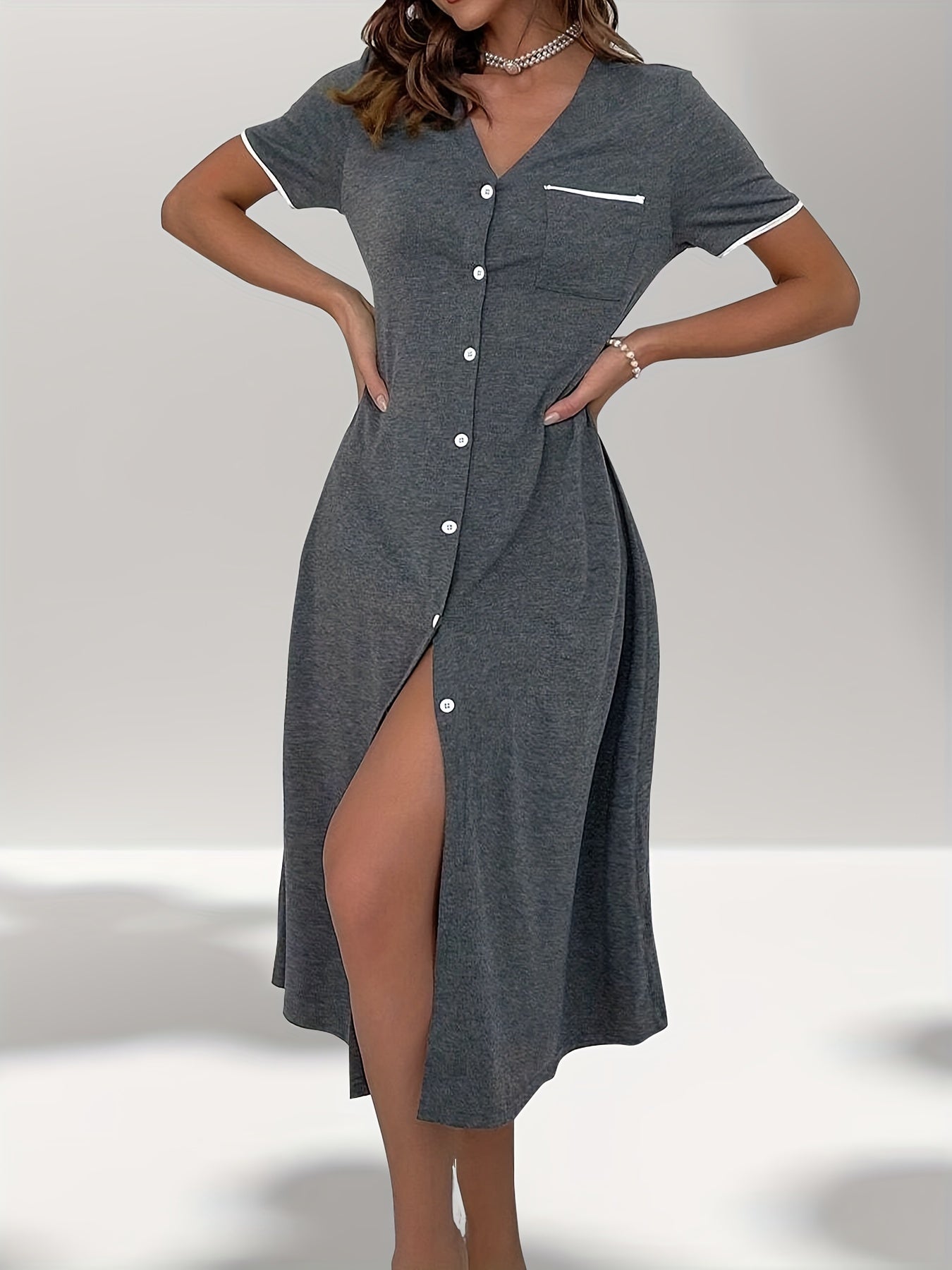 Женское ночное платье больших размеров с коротким рукавом и V-образным вырезом