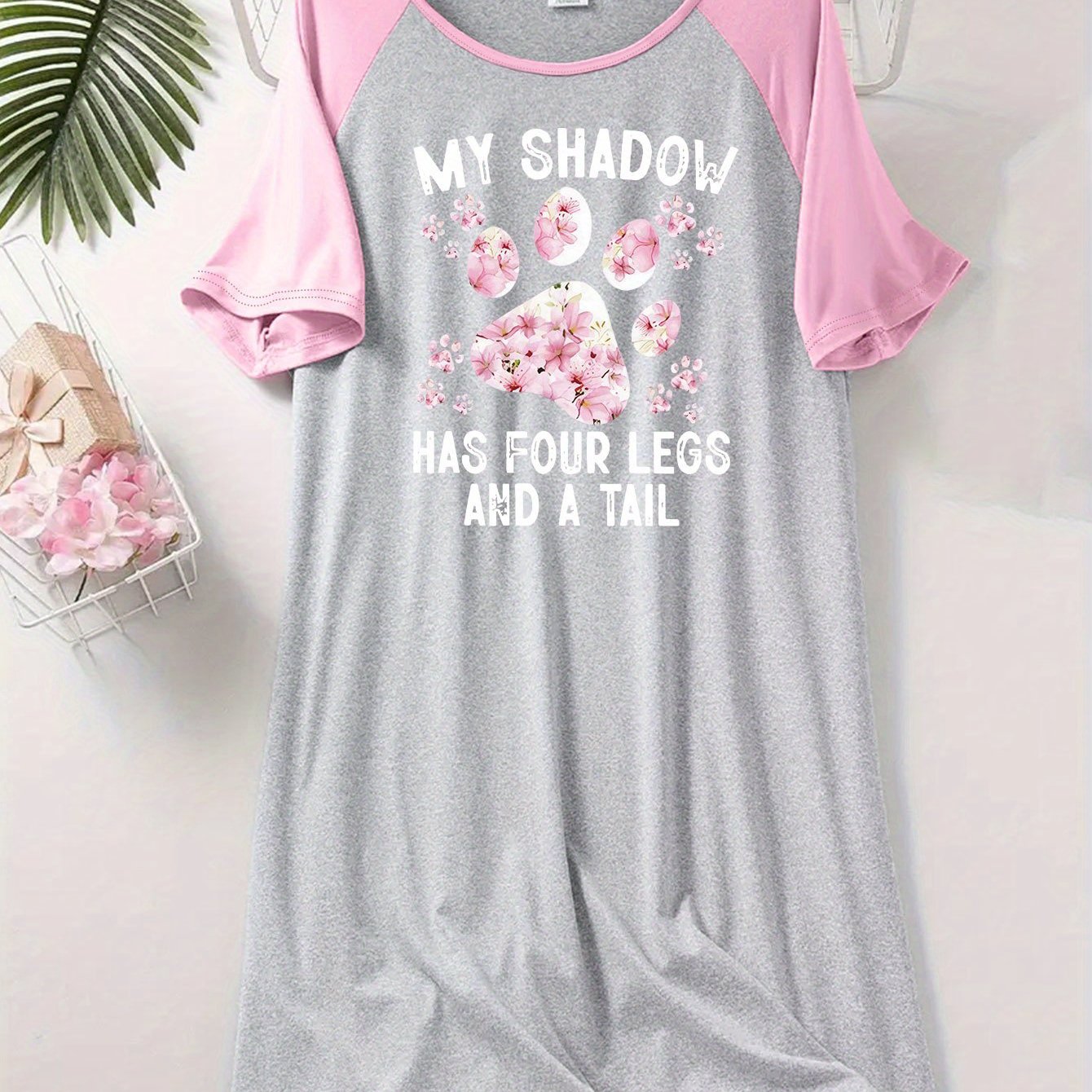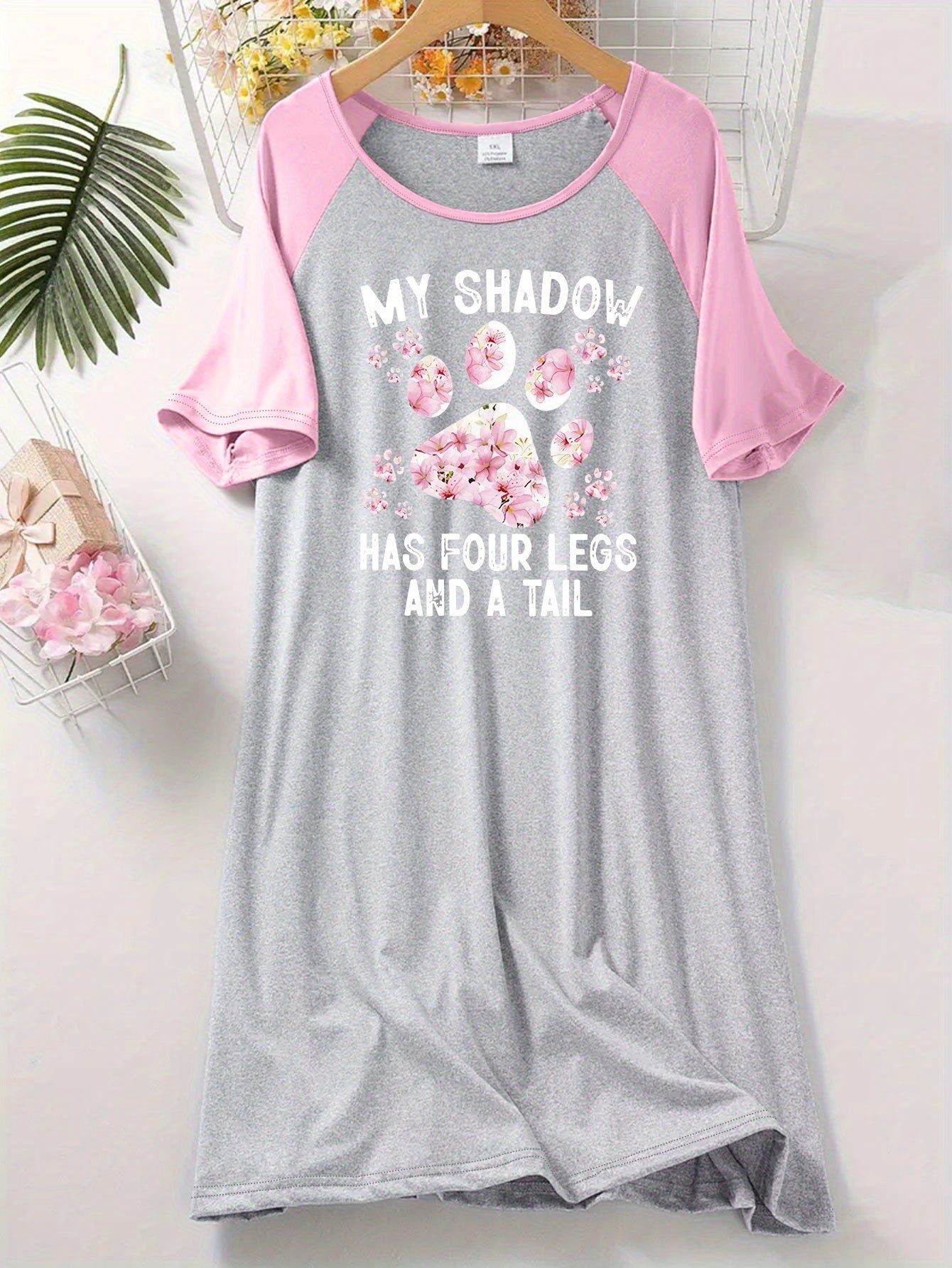 Женское ночное платье с коротким рукавом, принт с собачьими лапами и буквами