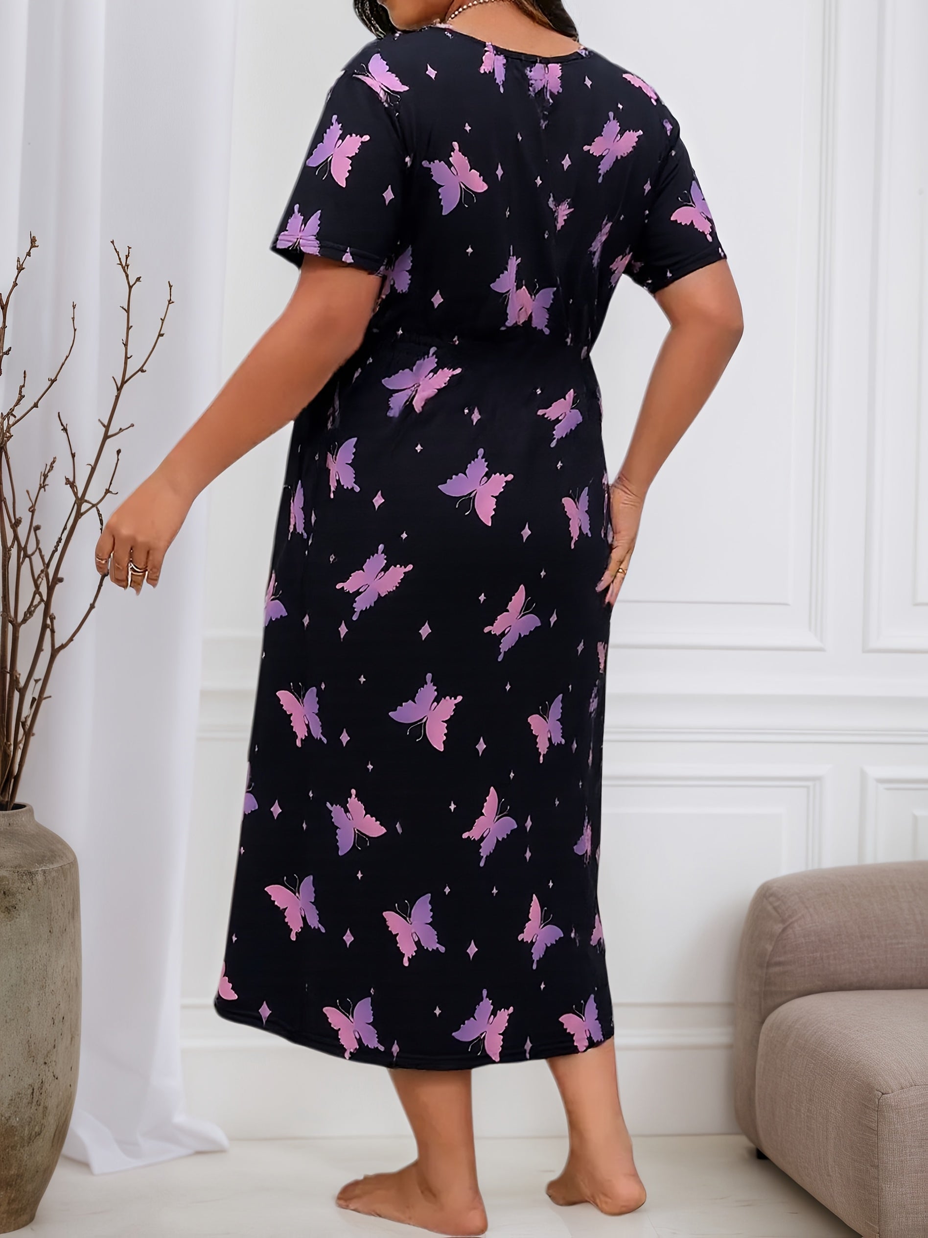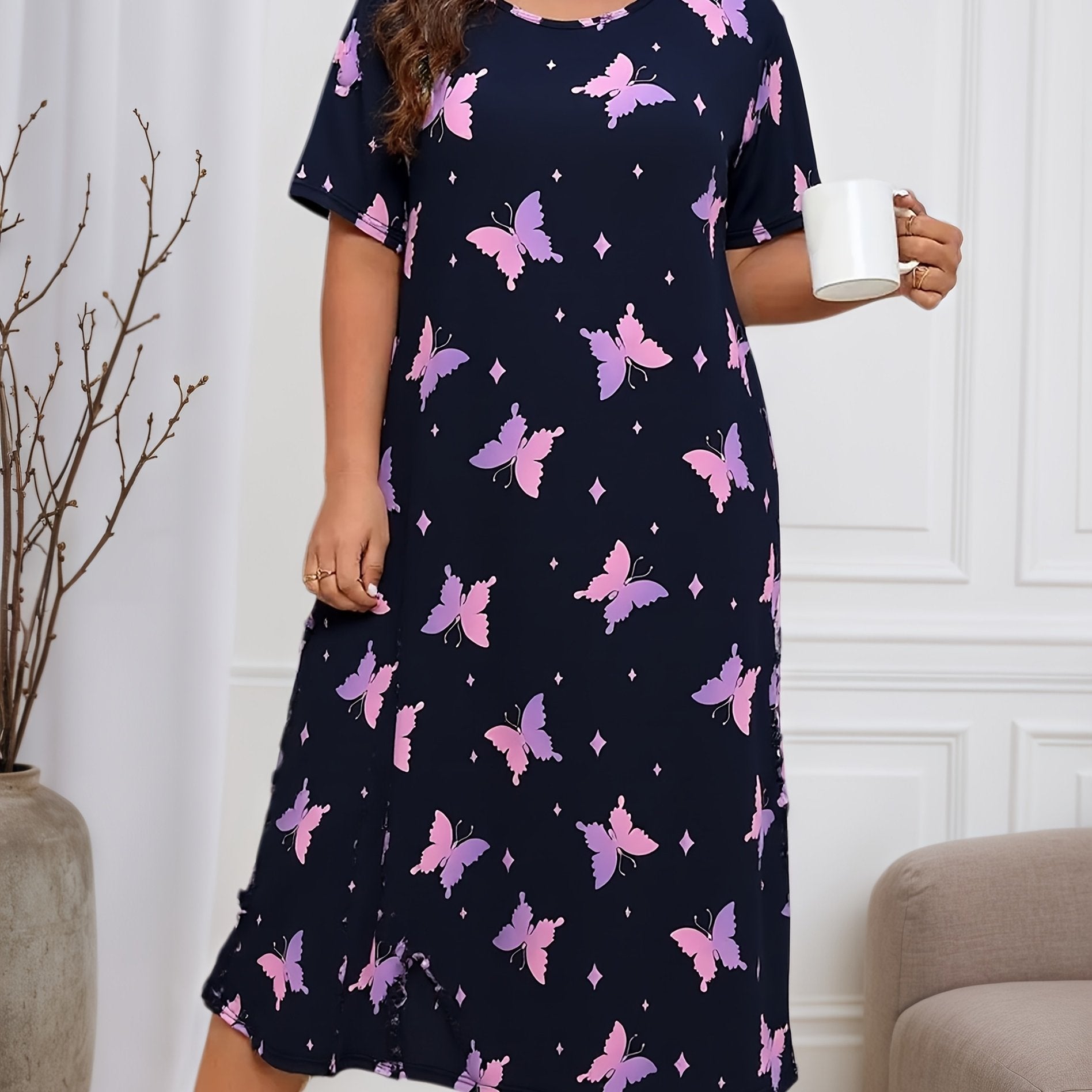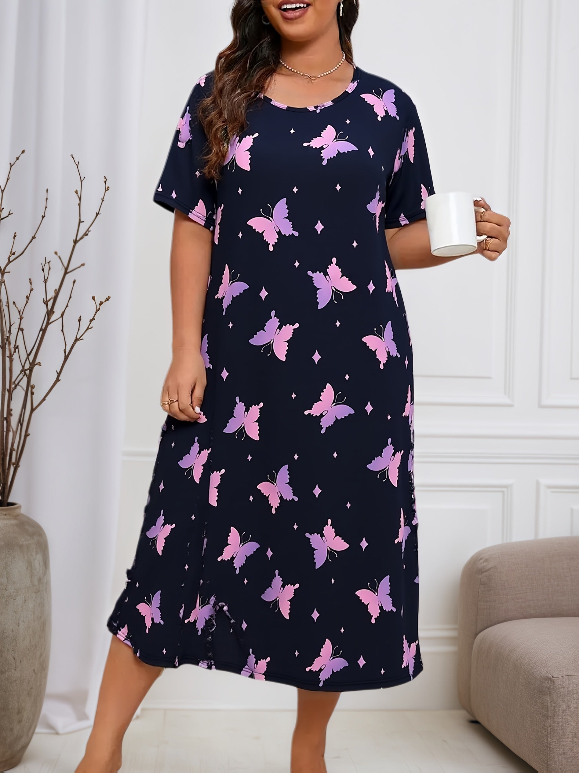 Женская пижама ночная с принтом бабочек, полиэстер, короткий рукав, для всех сезонов