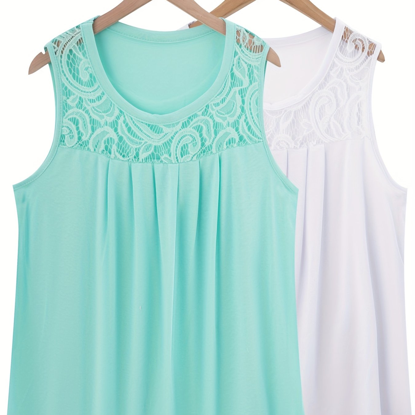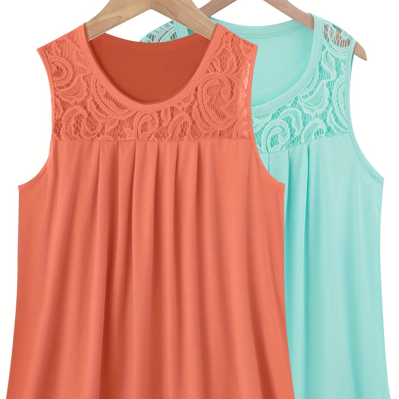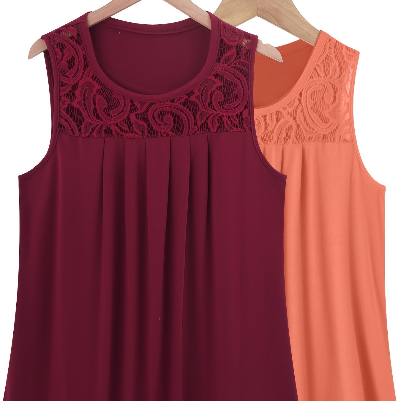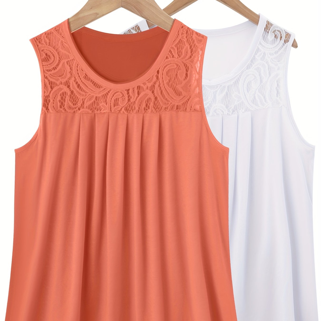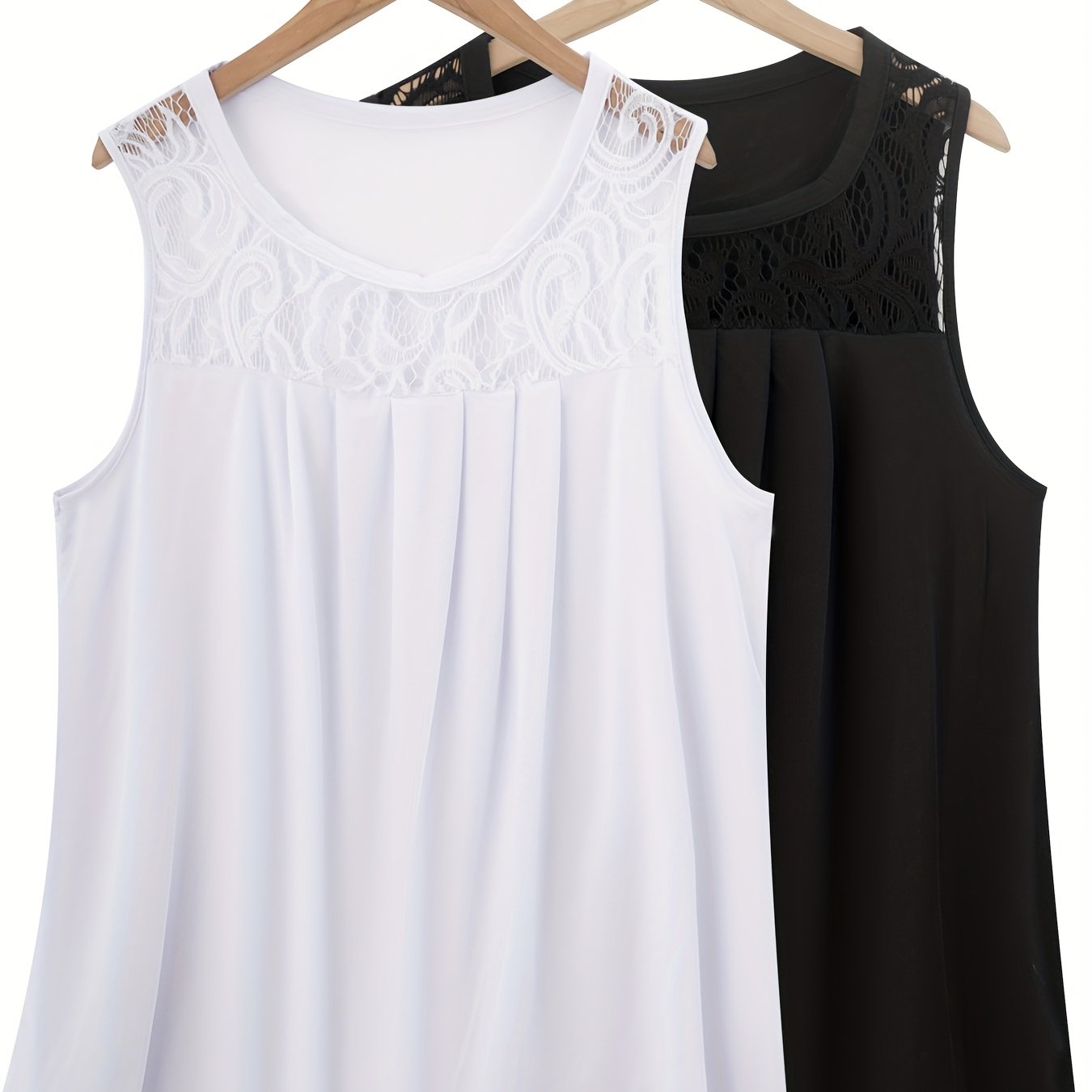 Женский комплект топов без рукавов из полиэстера с рюшами, контрастным кружевом, повседневный летний