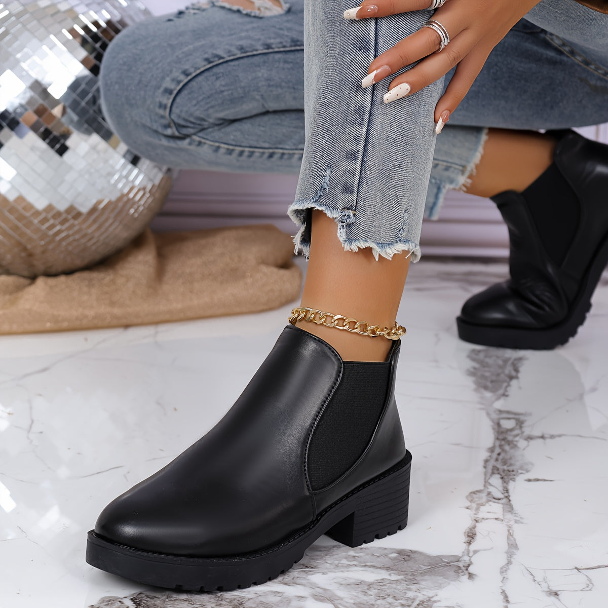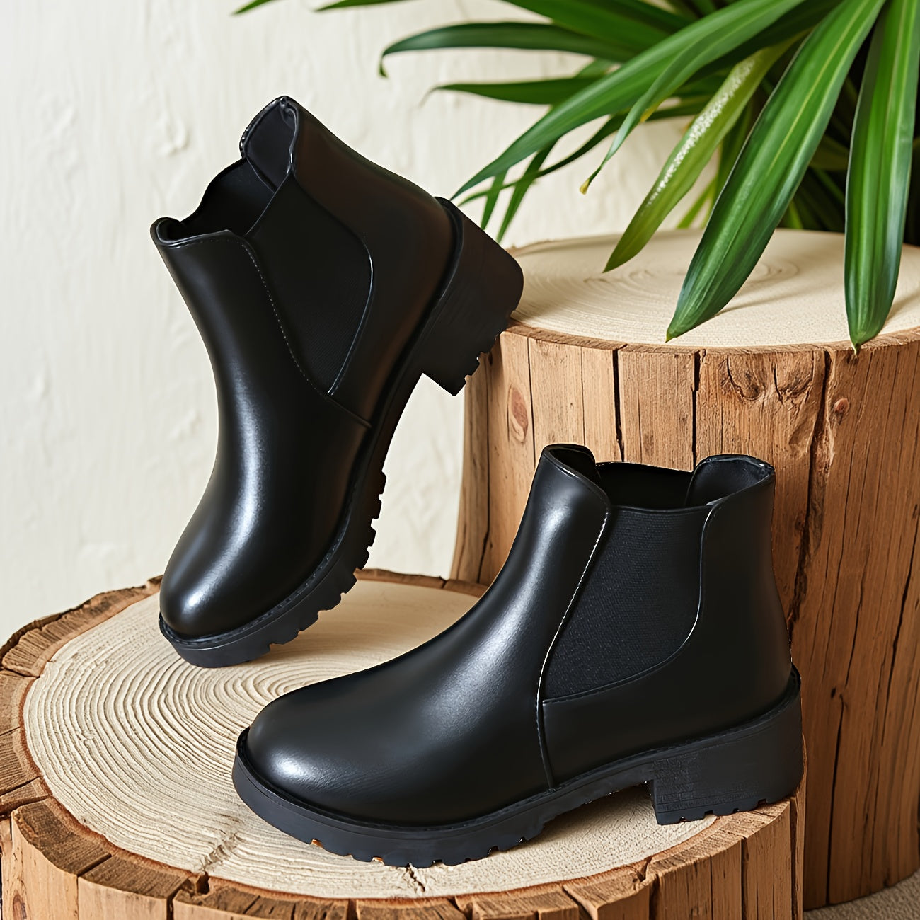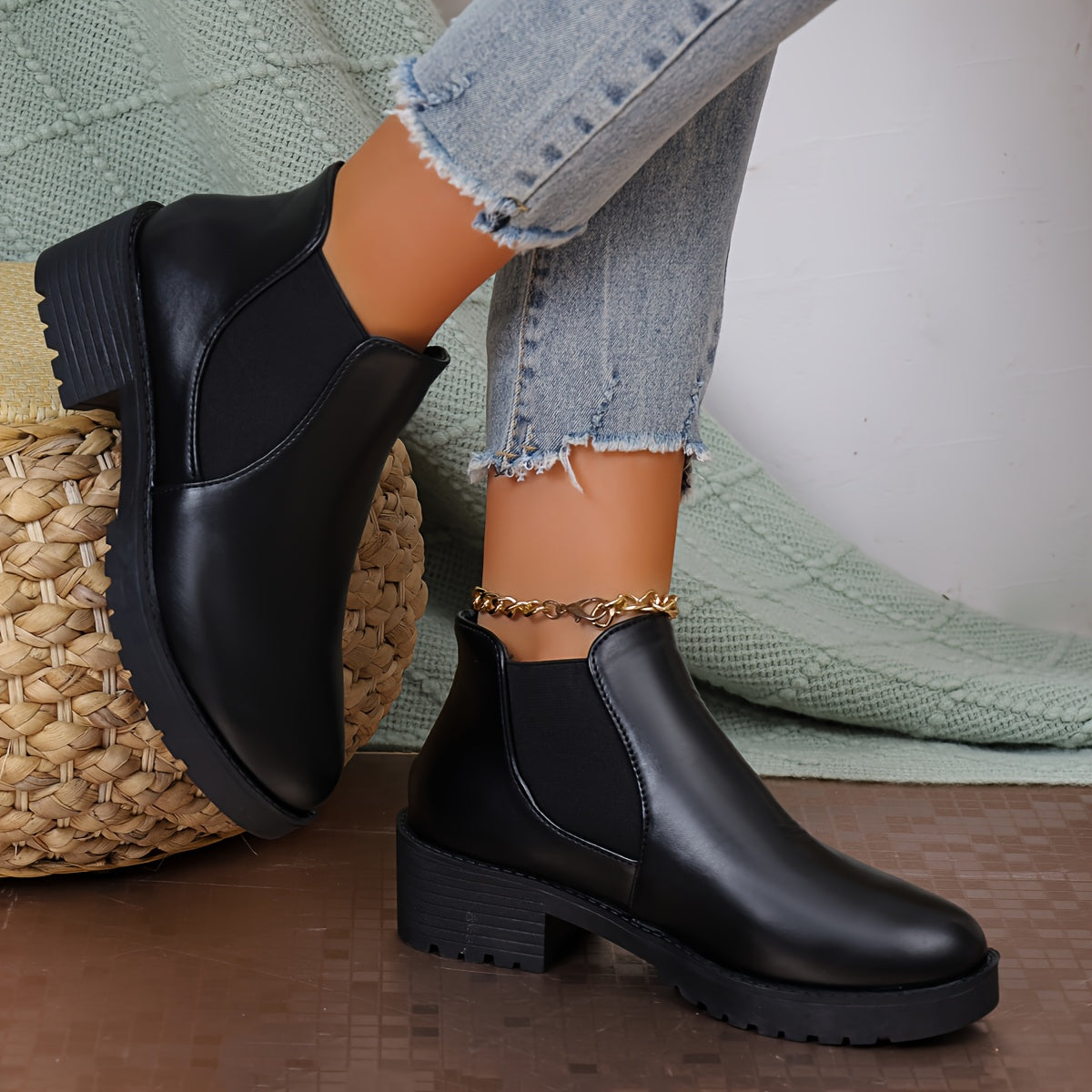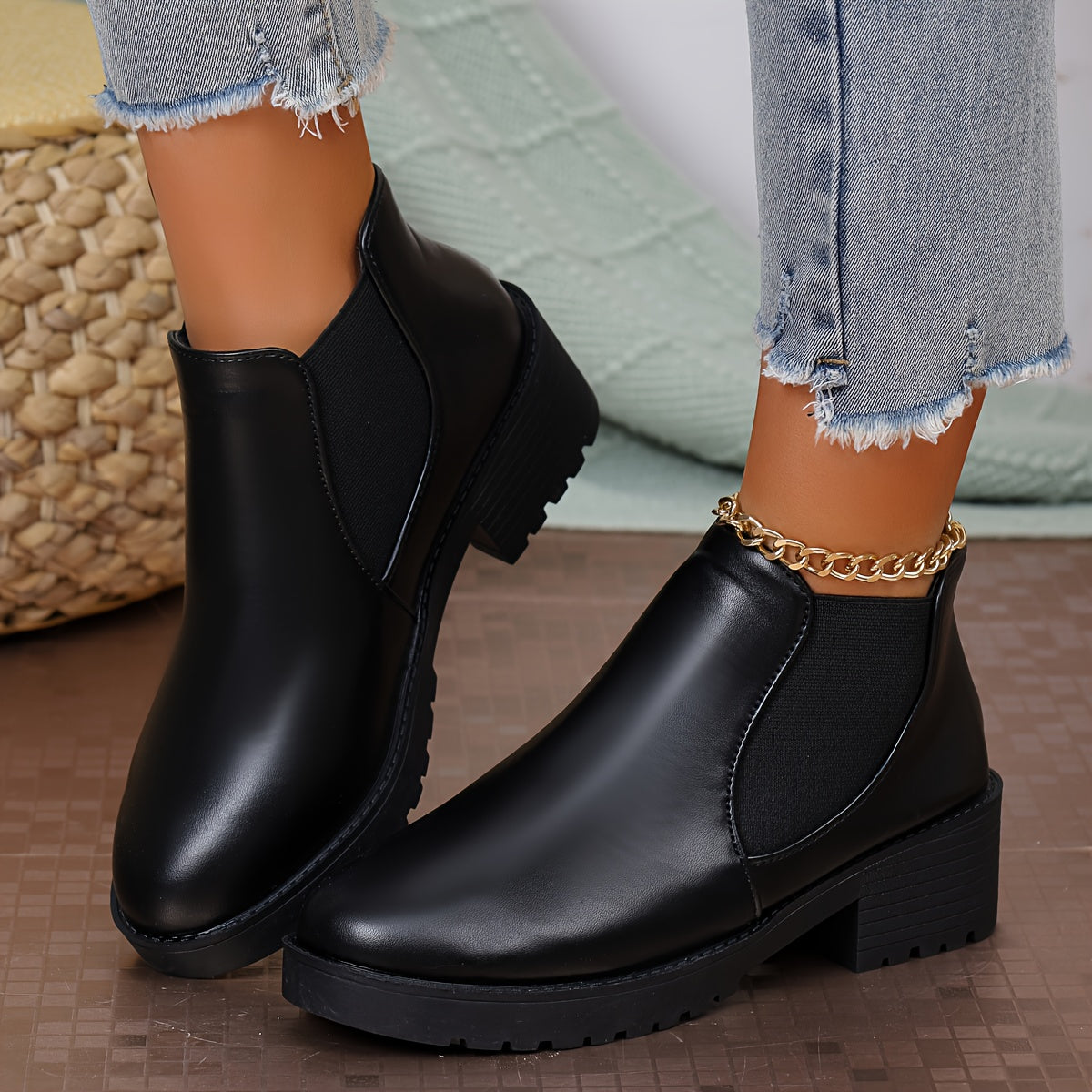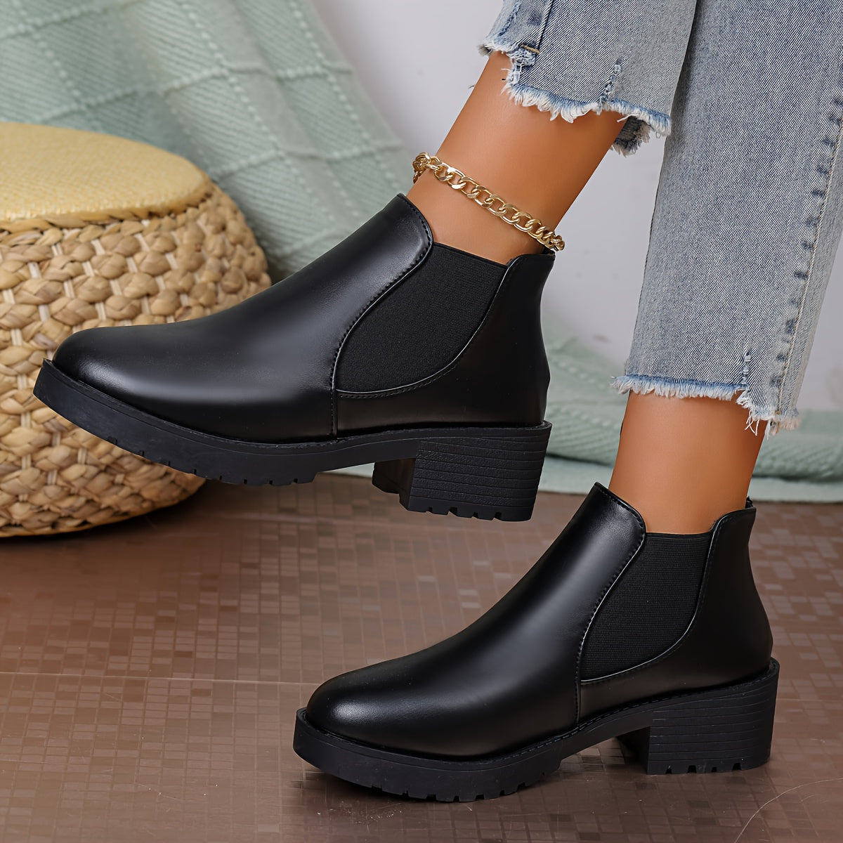 Женские ботинки-слипы на среднем каблуке черные с амортизирующей стелькой, всесезонные