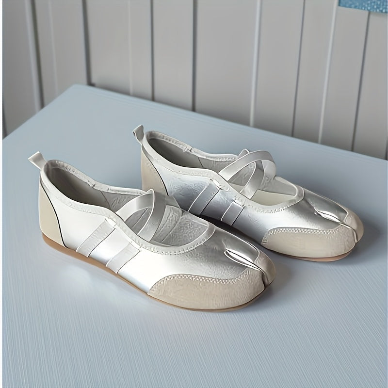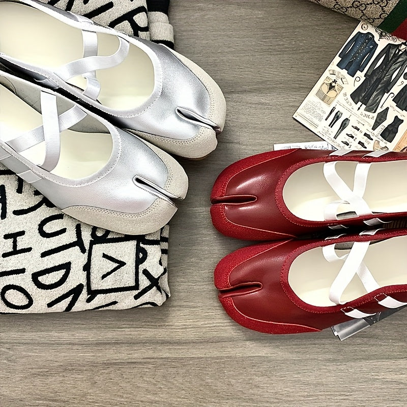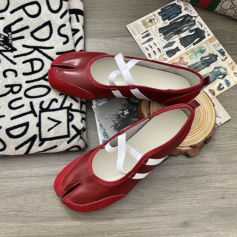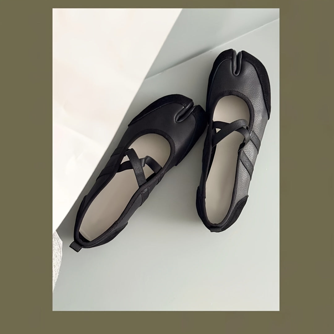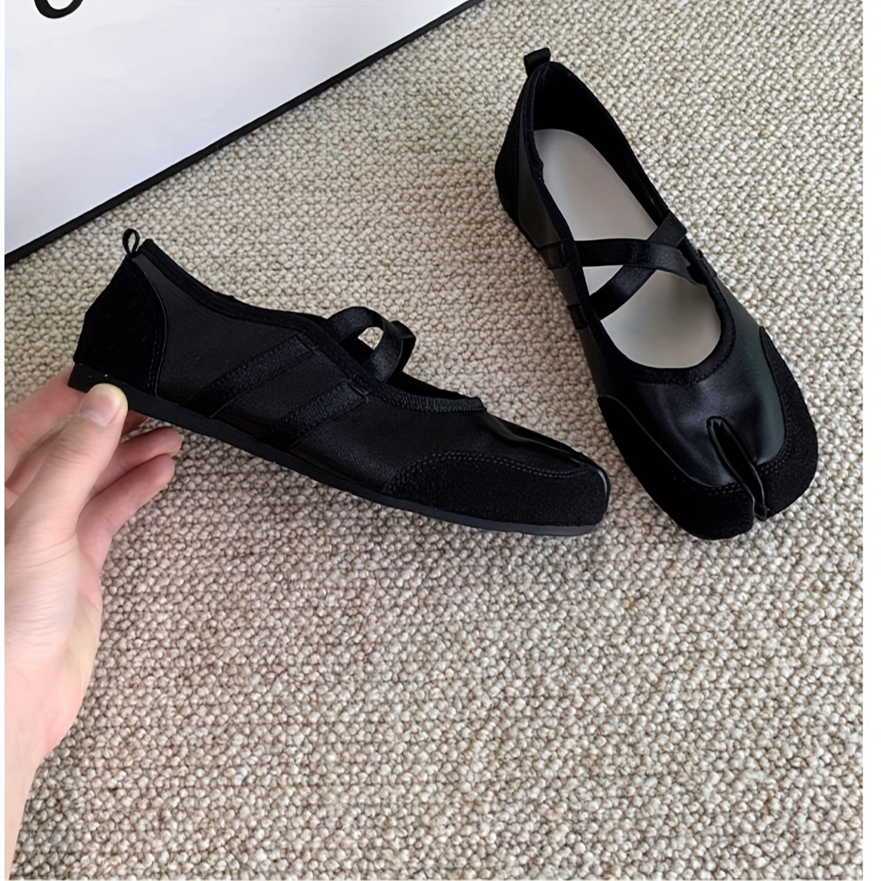 Женские туфли-лодочки на плоской подошве с раздельным носком Mary Jane, черные, из синтетики, повседневные обувь