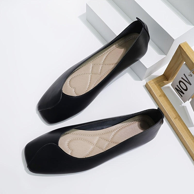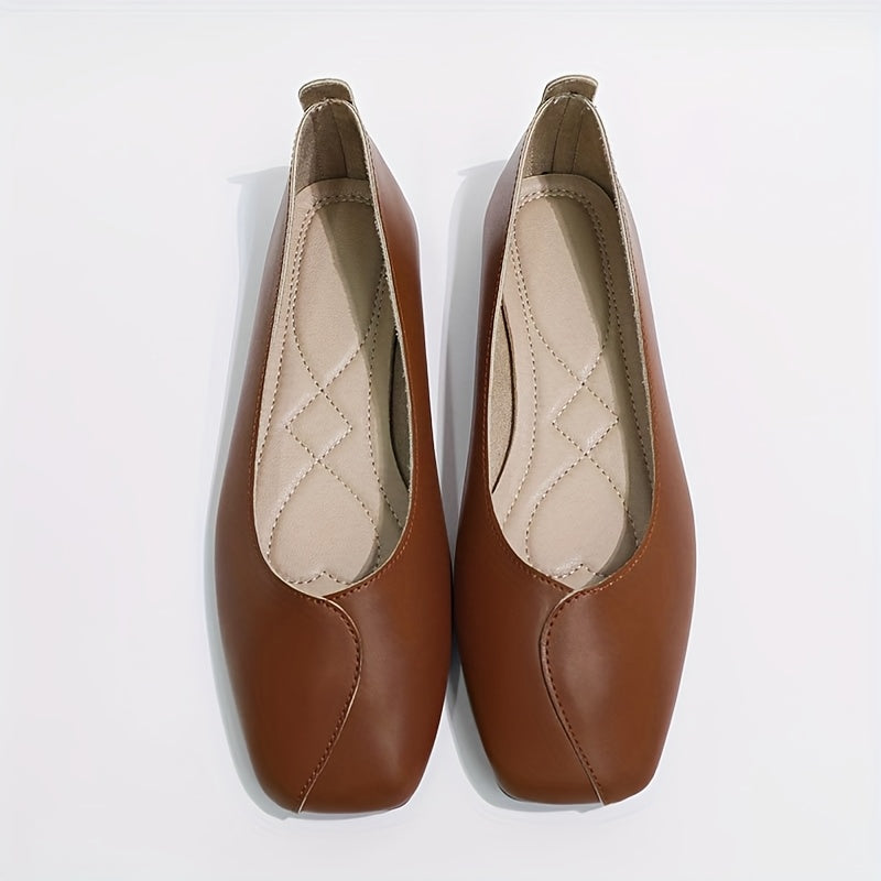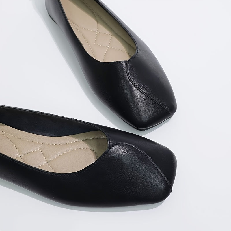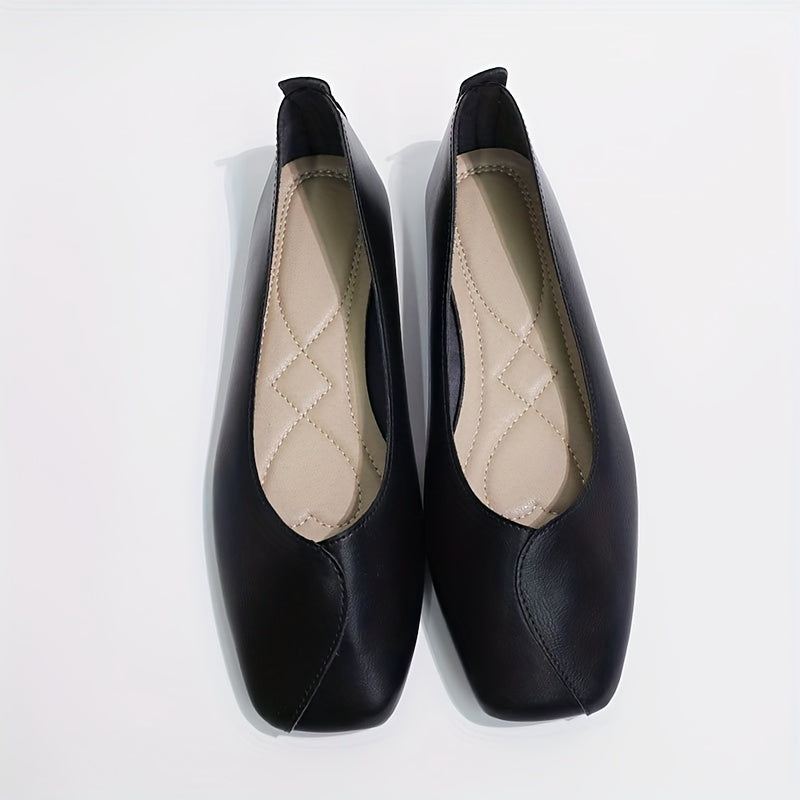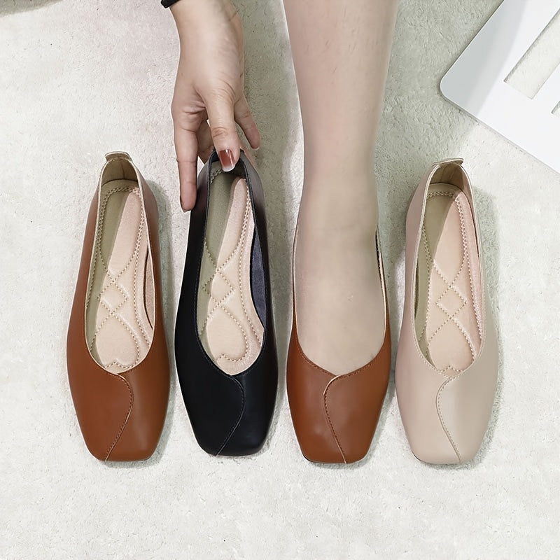 Женские балетки-лодочки с квадратным носком и ремешком на щиколотке в черном, коричневом и бежевом