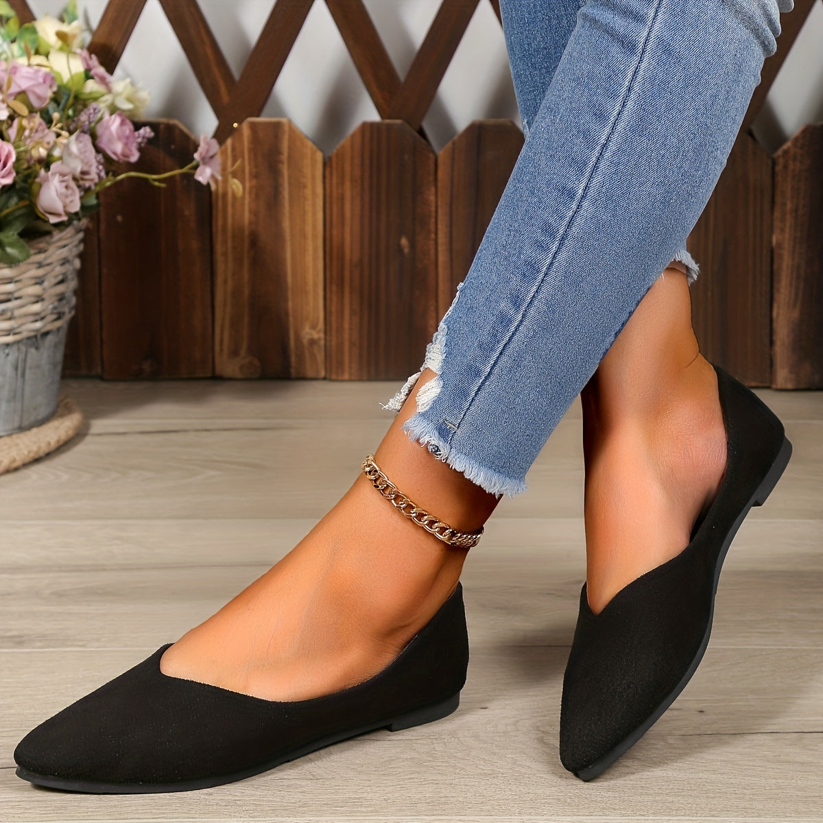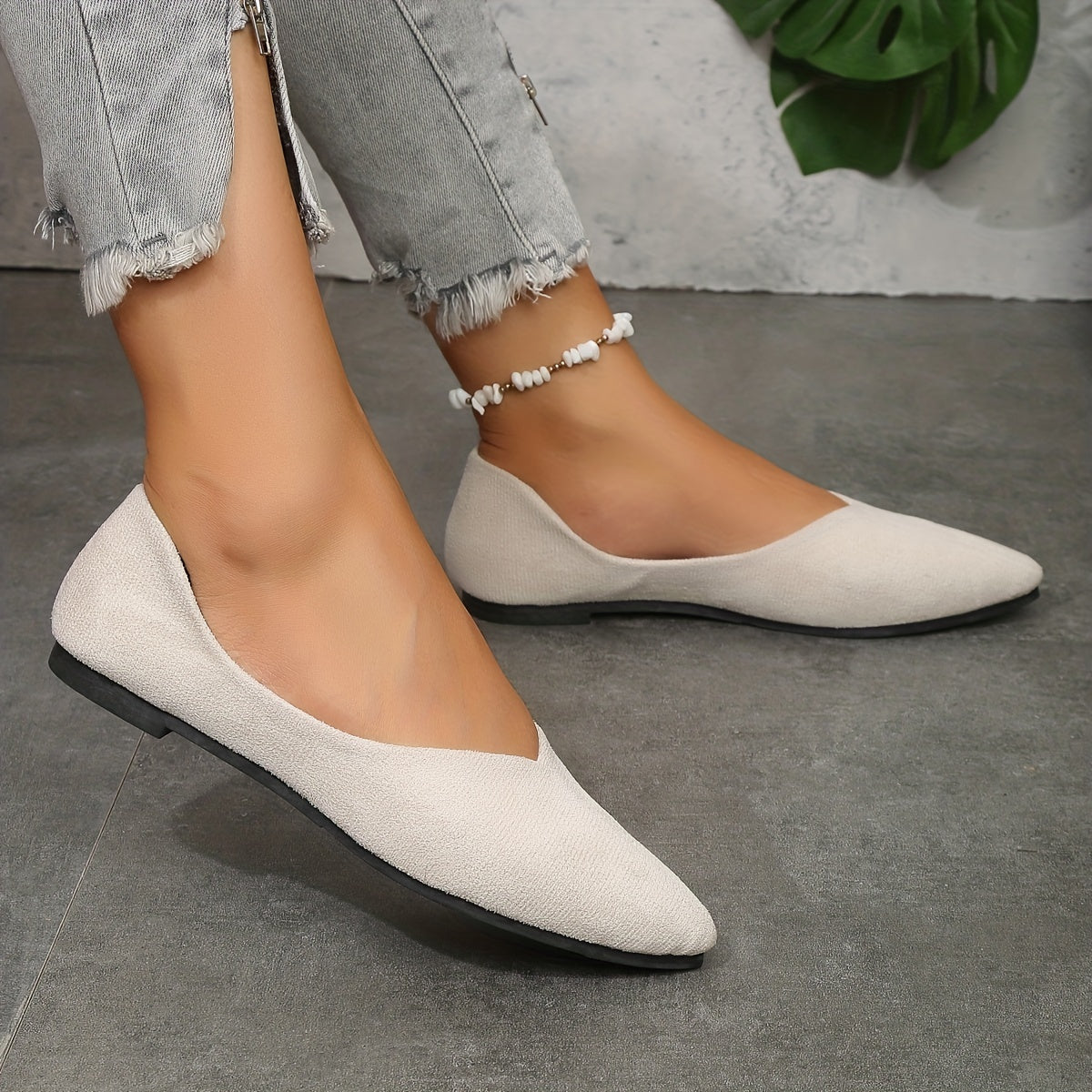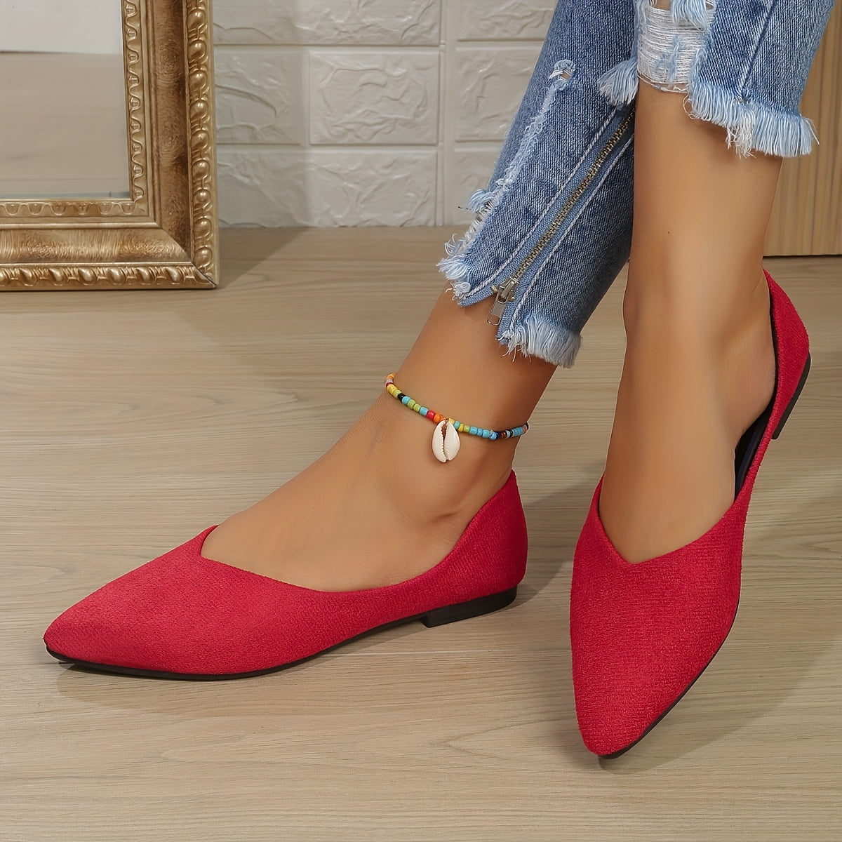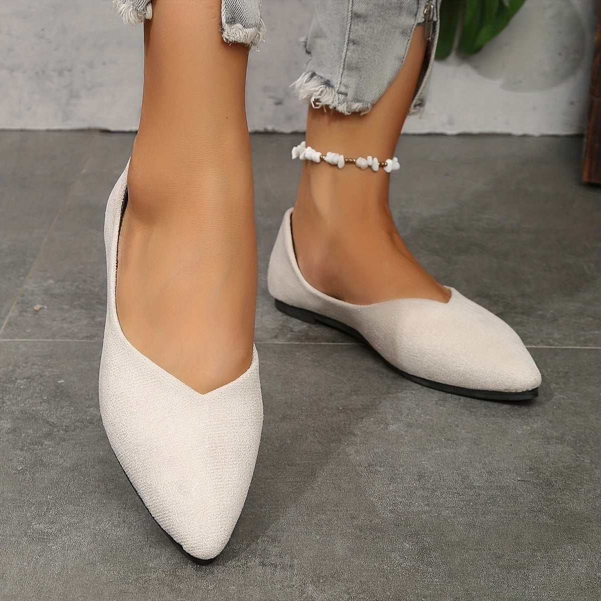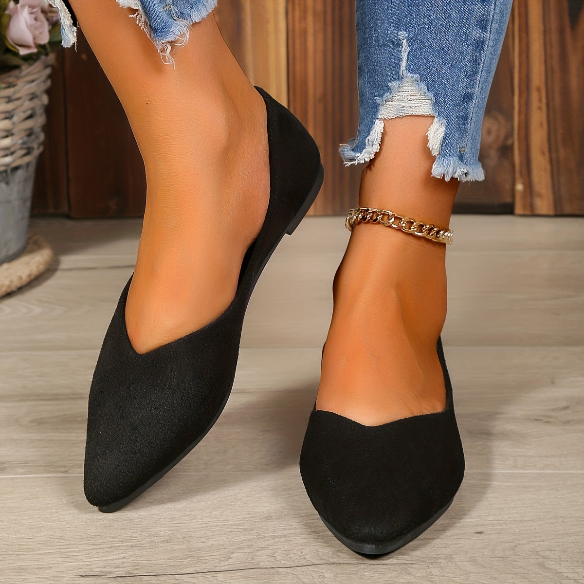 Женские однотонные балетки с элегантным острым носком и легким дизайном без застежки.