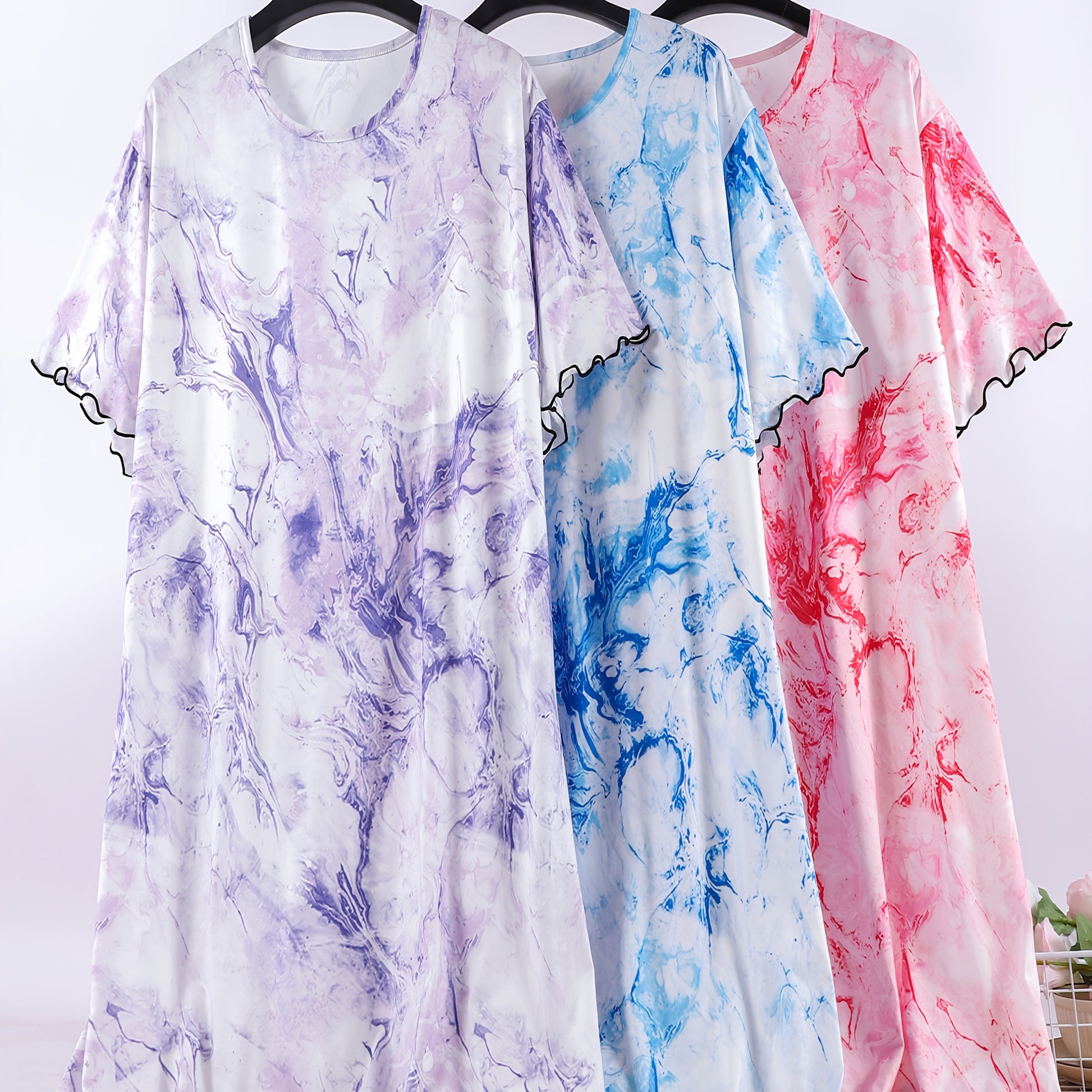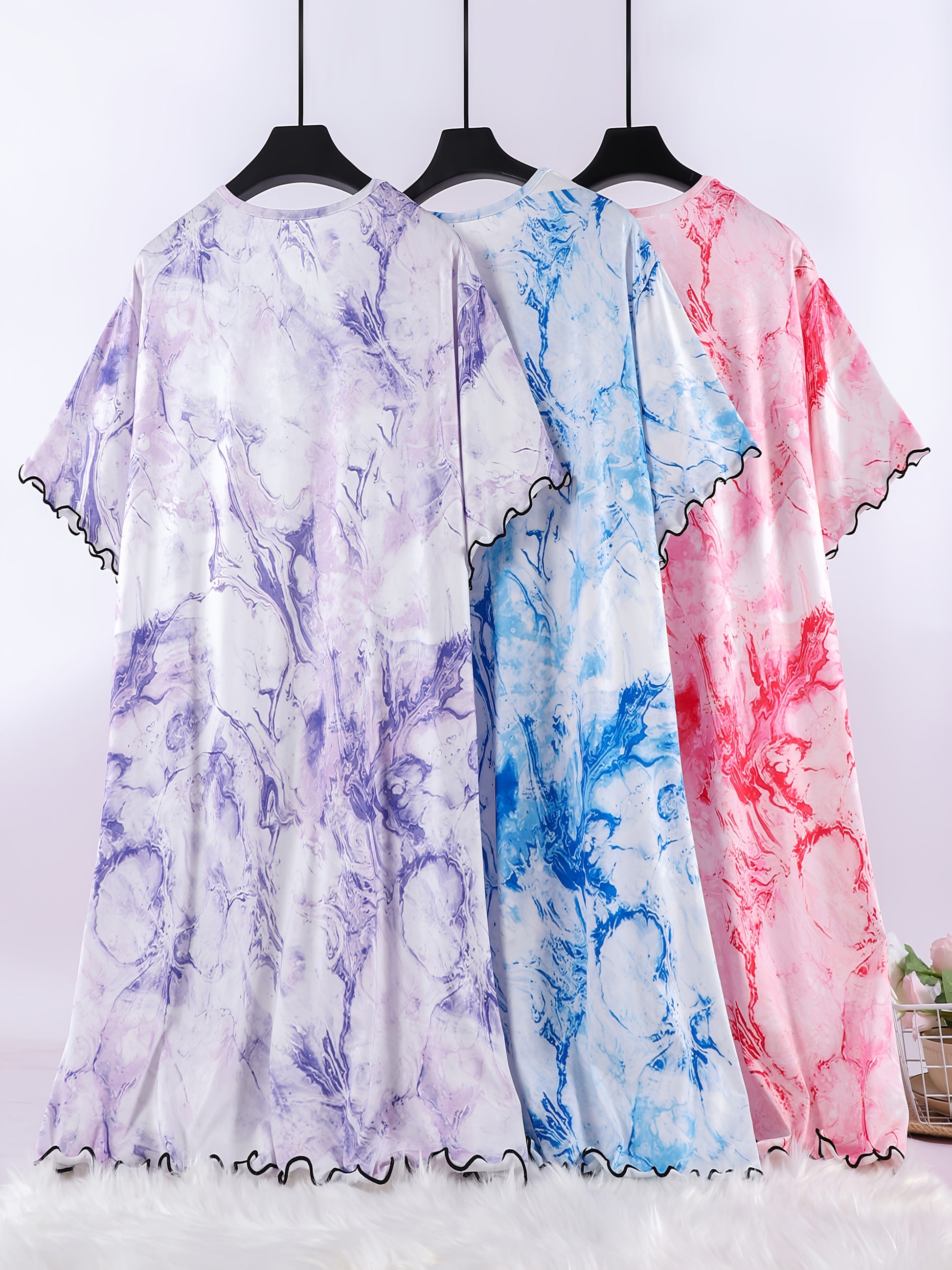 Женские летние ночные платья 3 шт. с узлом и рюшами, большой размер, дышащие