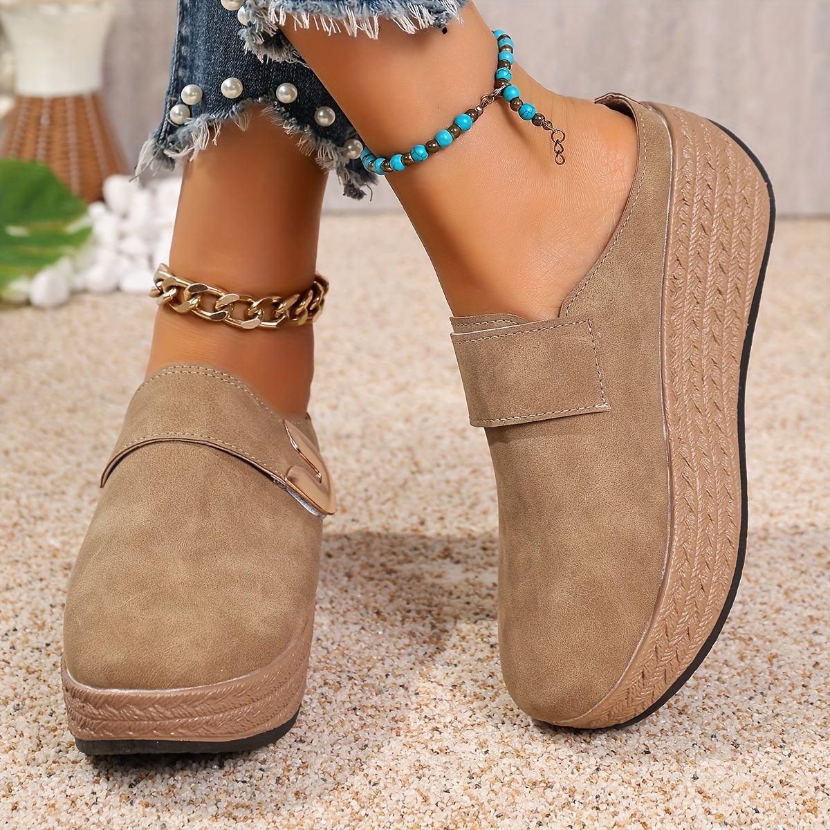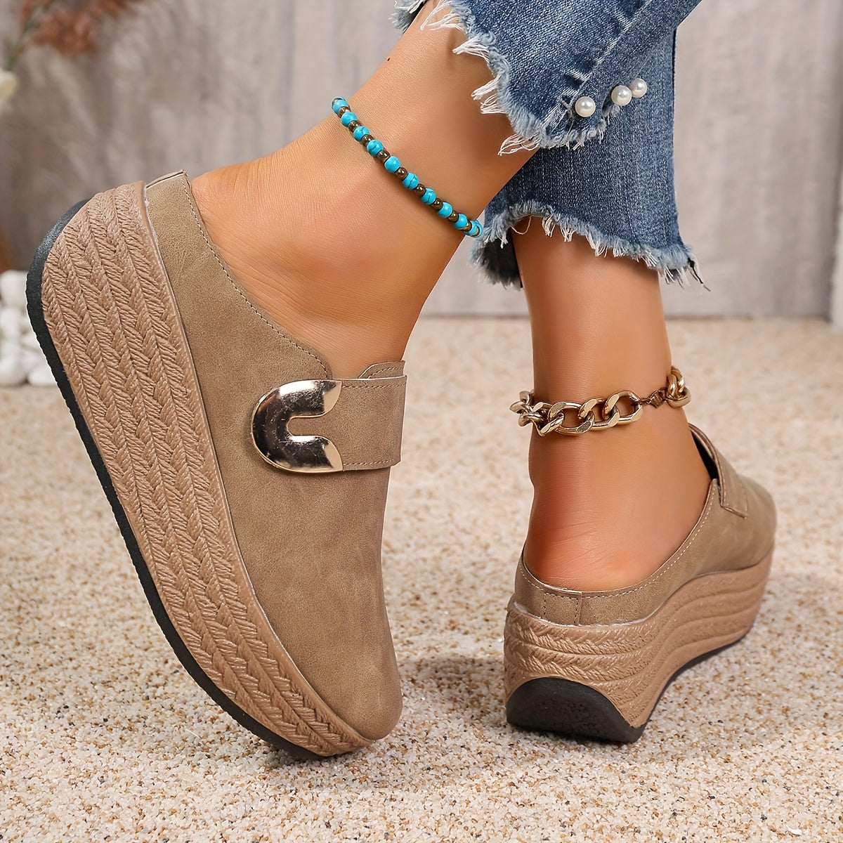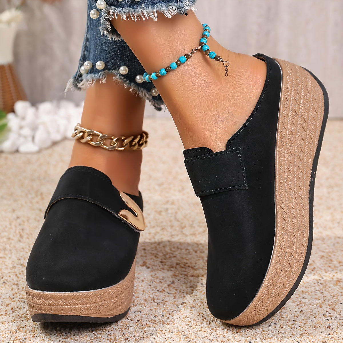 Женские синтетические платформенные сандалии с металлическим кольцом и браслетом на щиколотке