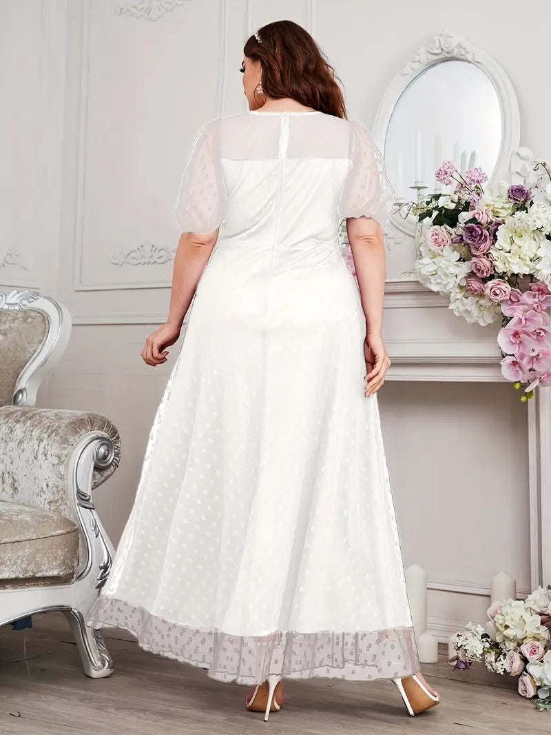 Women's V-Neck Lace Dress Plus Size Long Sleeve Evening Gown Creamy Yellow