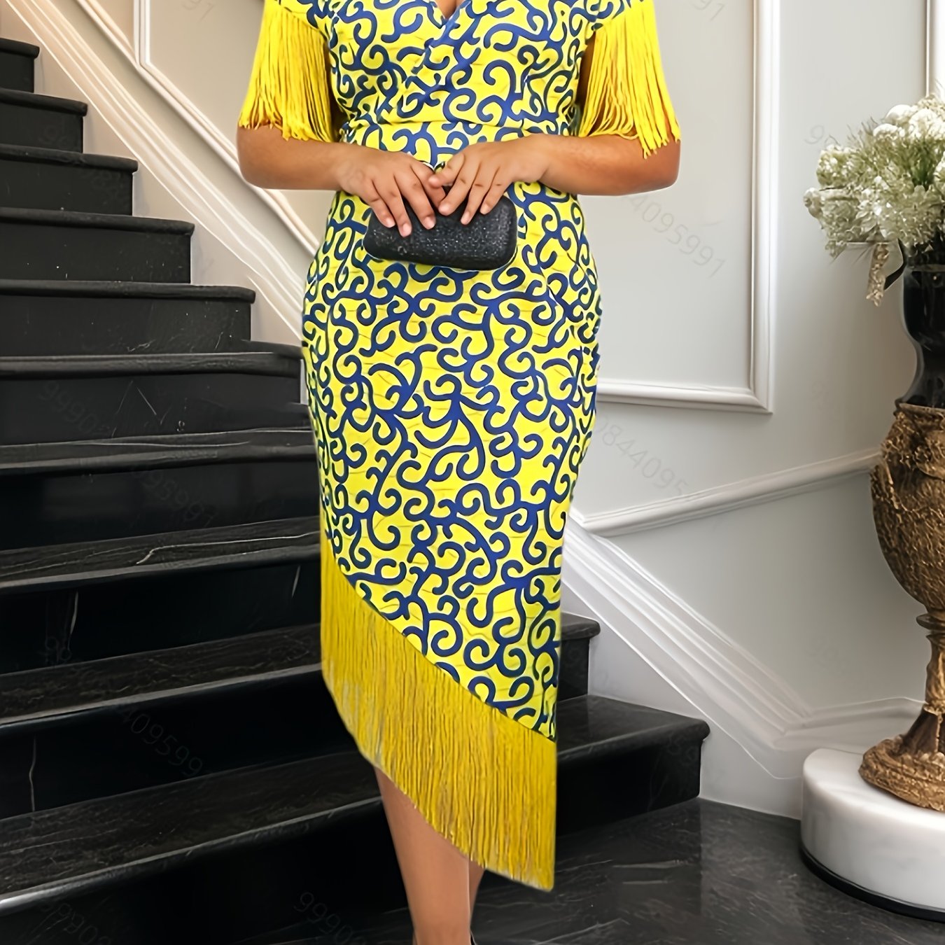 Women’s V-Neck Short Sleeve Party Dress with Abstract Print, Summer Dress