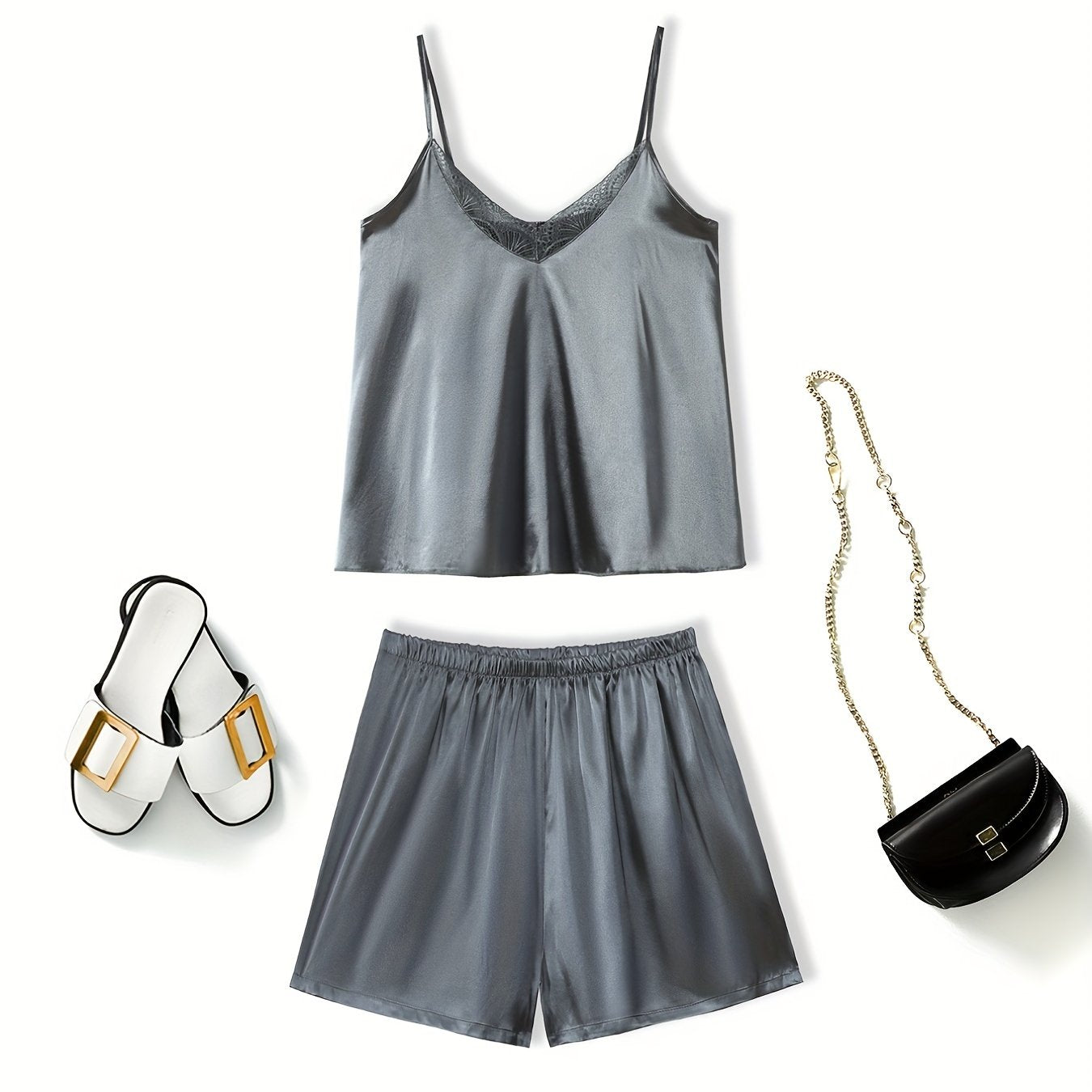 Женский комплект пижамы с V-образным вырезом и кружевными бретелями