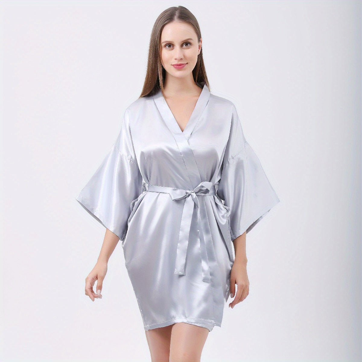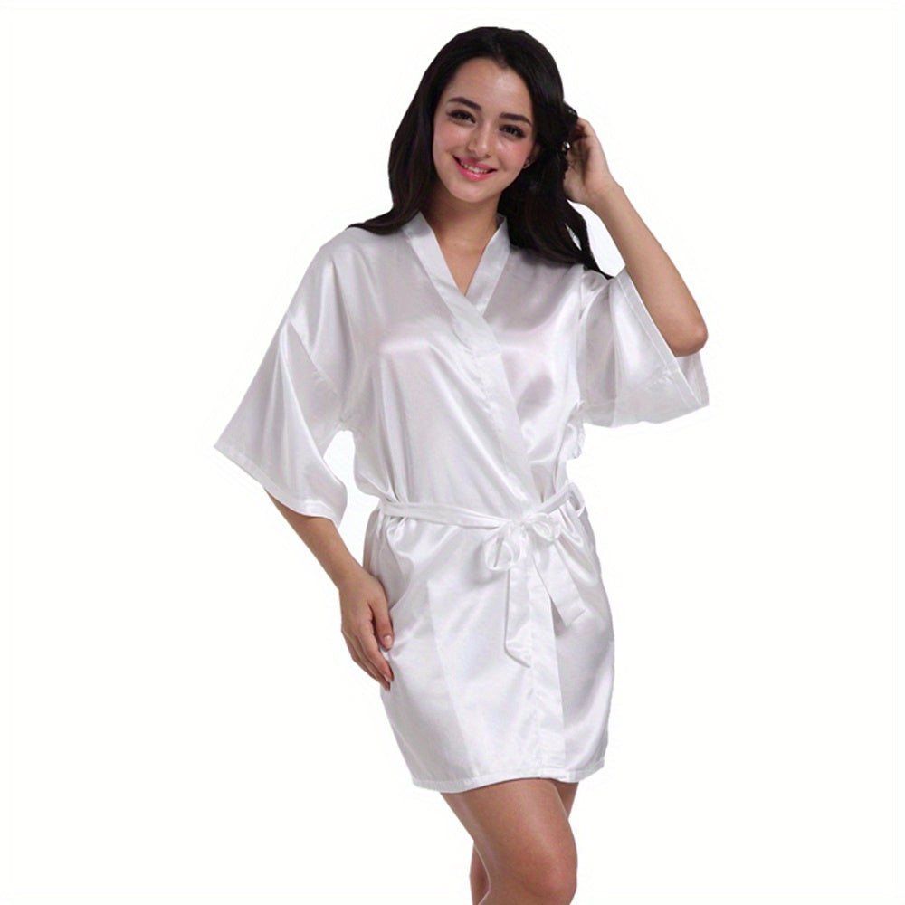 Женский свадебный халат кимоно, пеньюар с поясом, рукава 3/4
