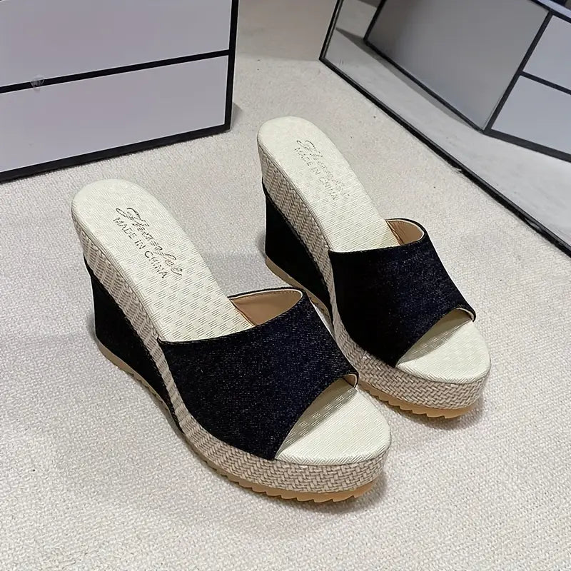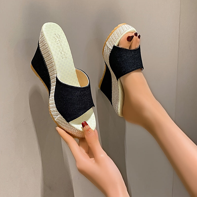 Women's Wedge Sandals Breathable Peep Toe Slip-On for Beach Casual