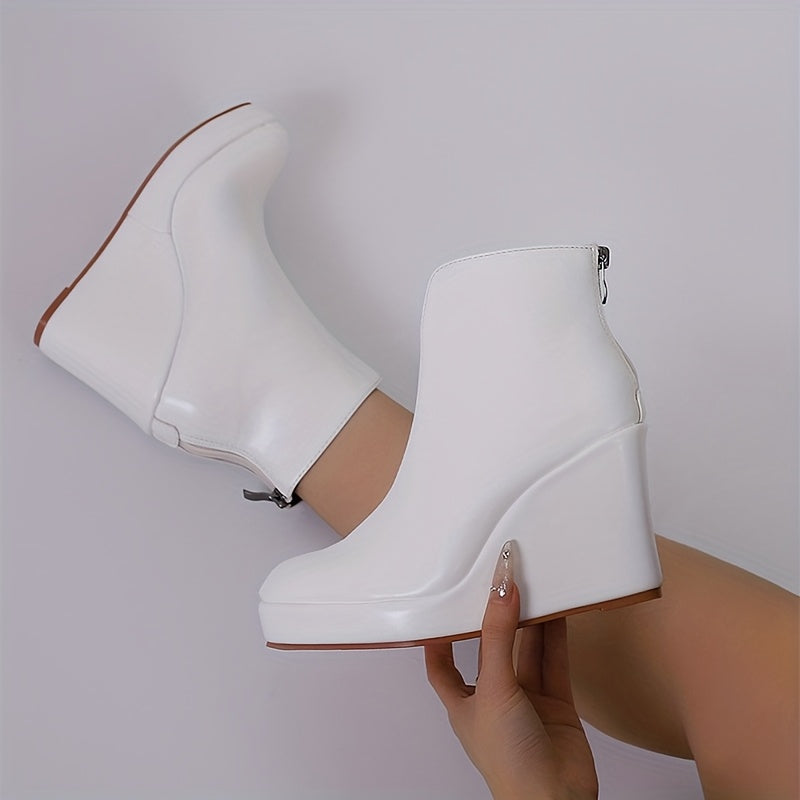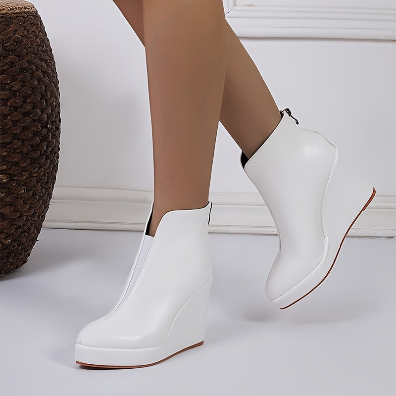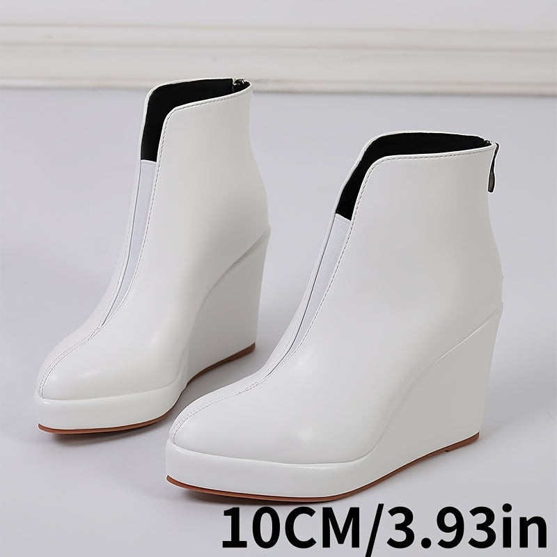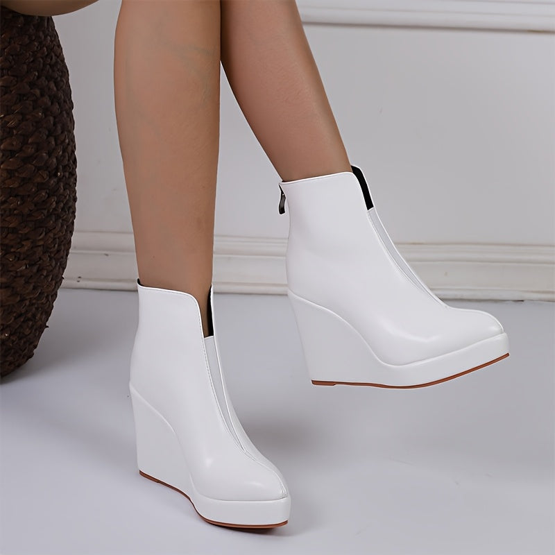 Женские западные ботинки на каблуке платформе из искусственной кожи с острым носком и молнией