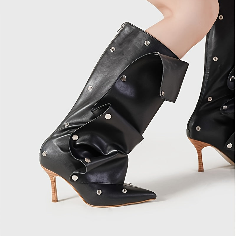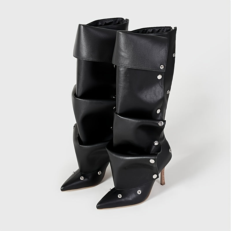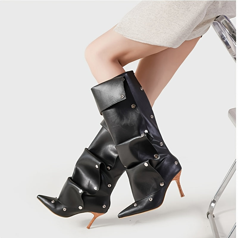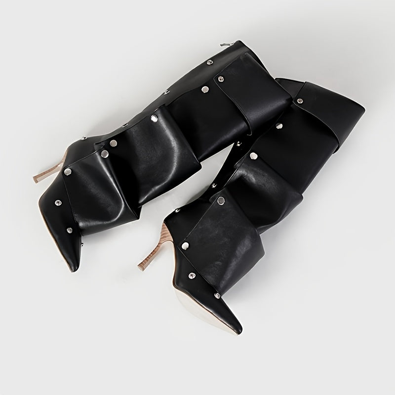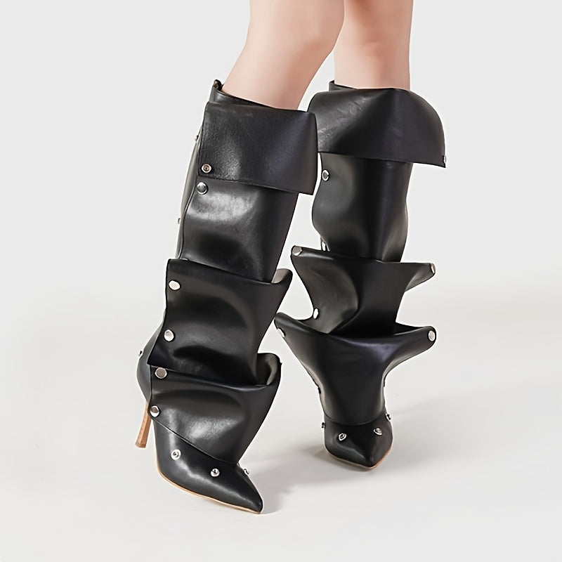 Женские белые двухслойные мотоботы до колена с заостренным носком