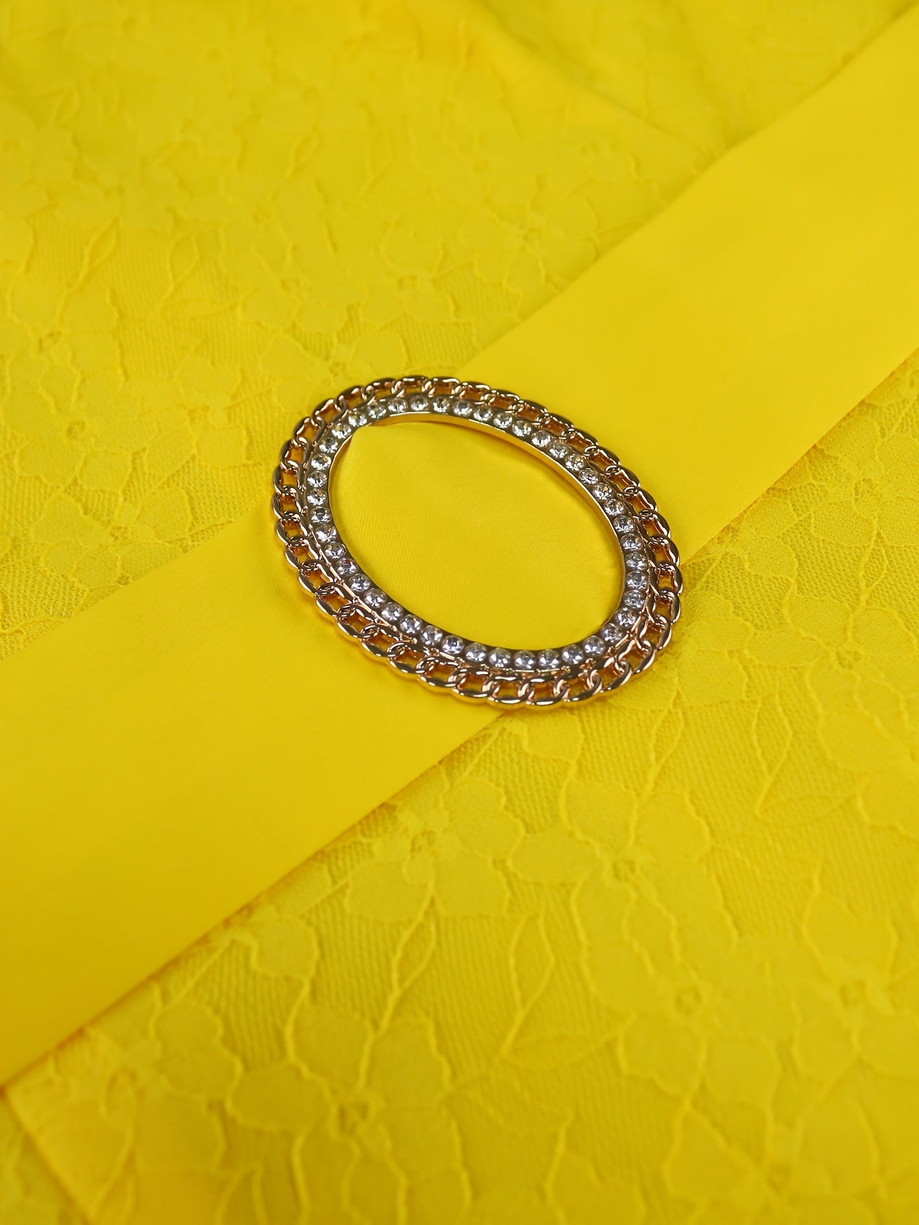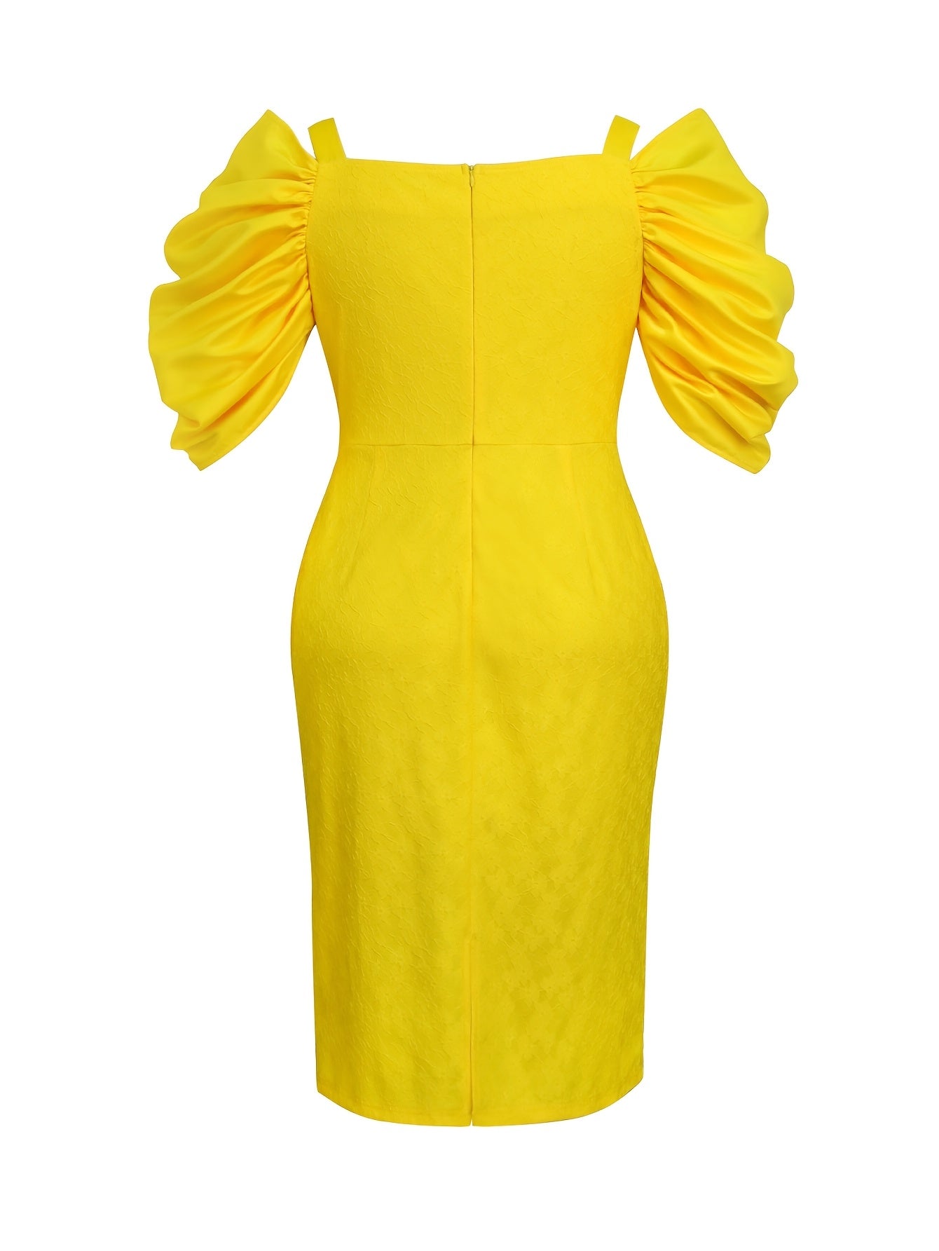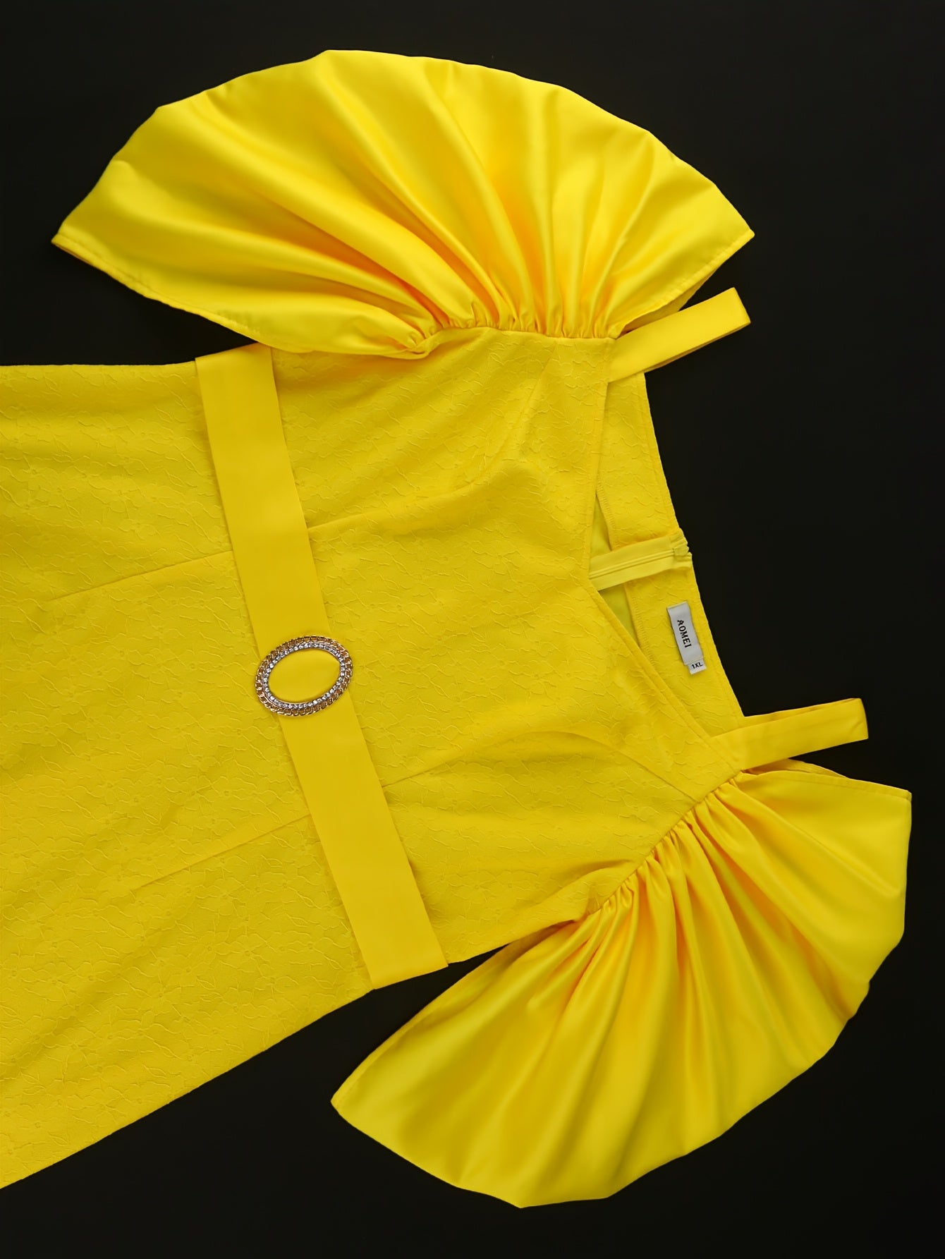 Women's Yellow Lace Off-Shoulder Dress with Petal Sleeves for Parties