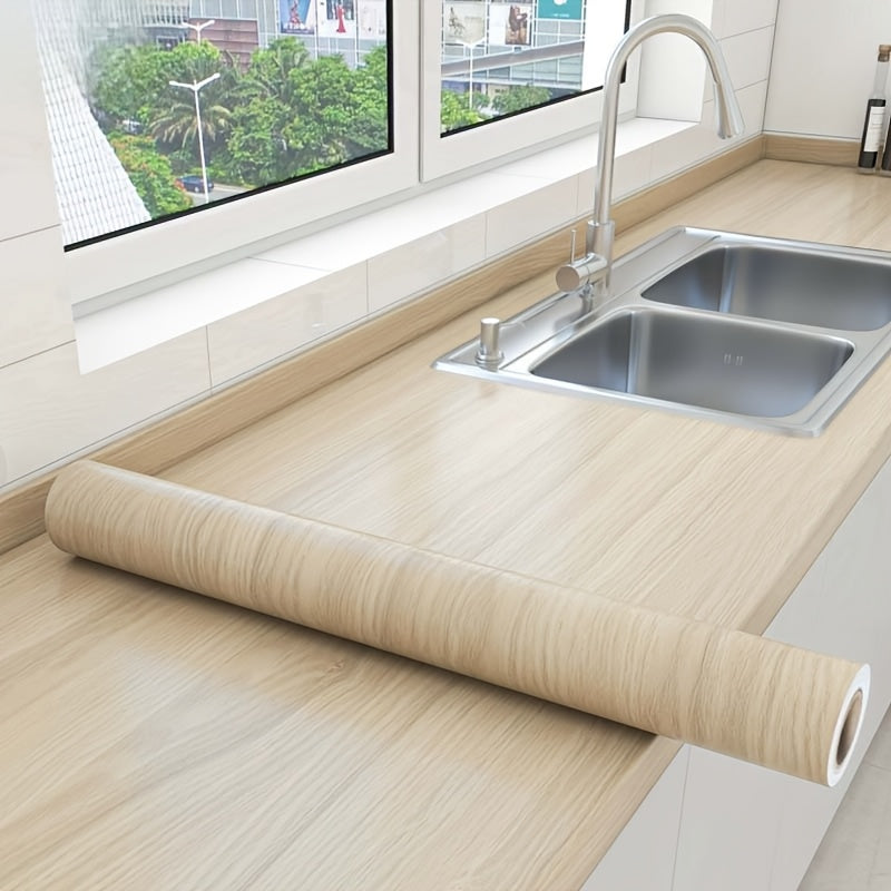 Виниловая пленка с древесной текстурой для кухонных столешниц и дверей шкафов, водонепроницаемая и самоклеящаяся. Подходит для варочных панелей и легко снимается во время ремонта. Особенности: стильный дизайн.