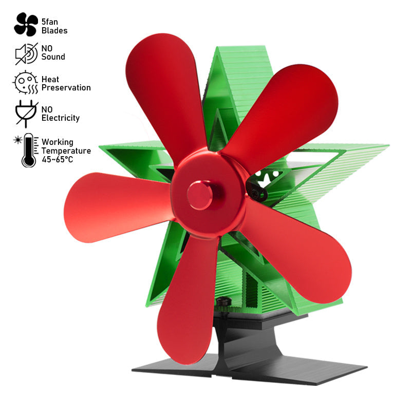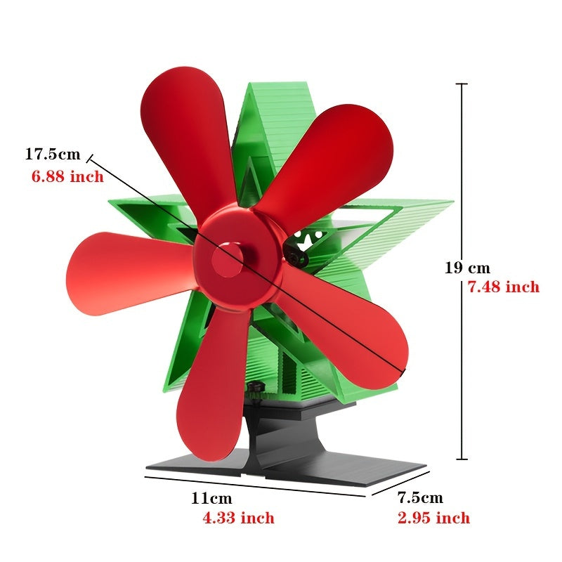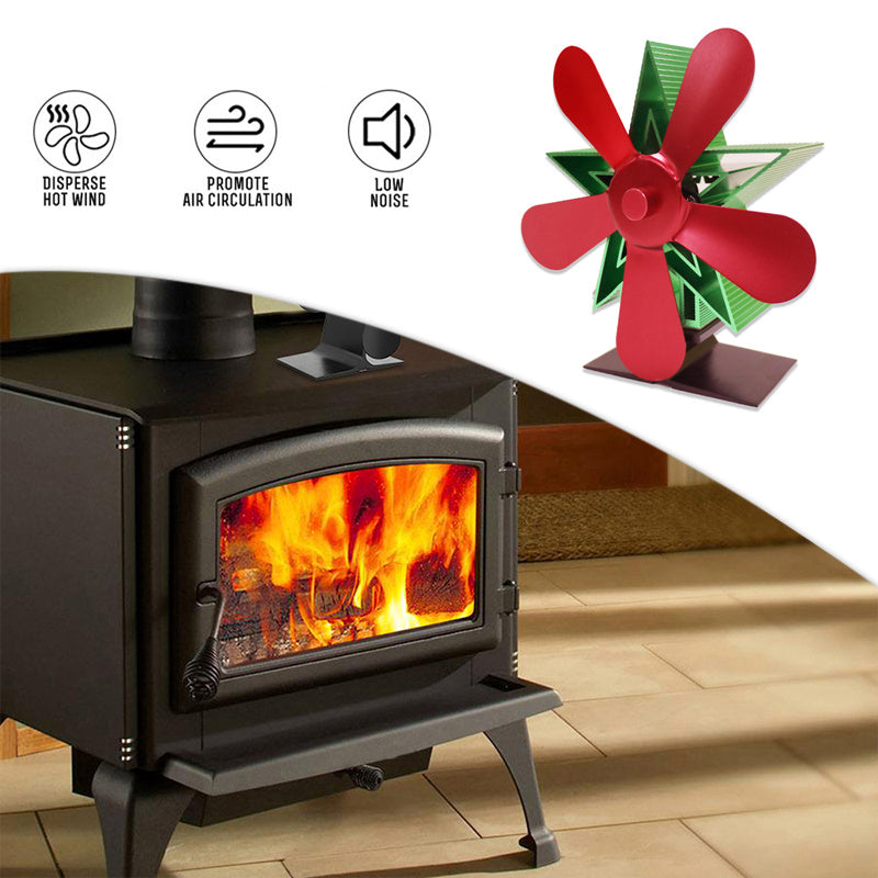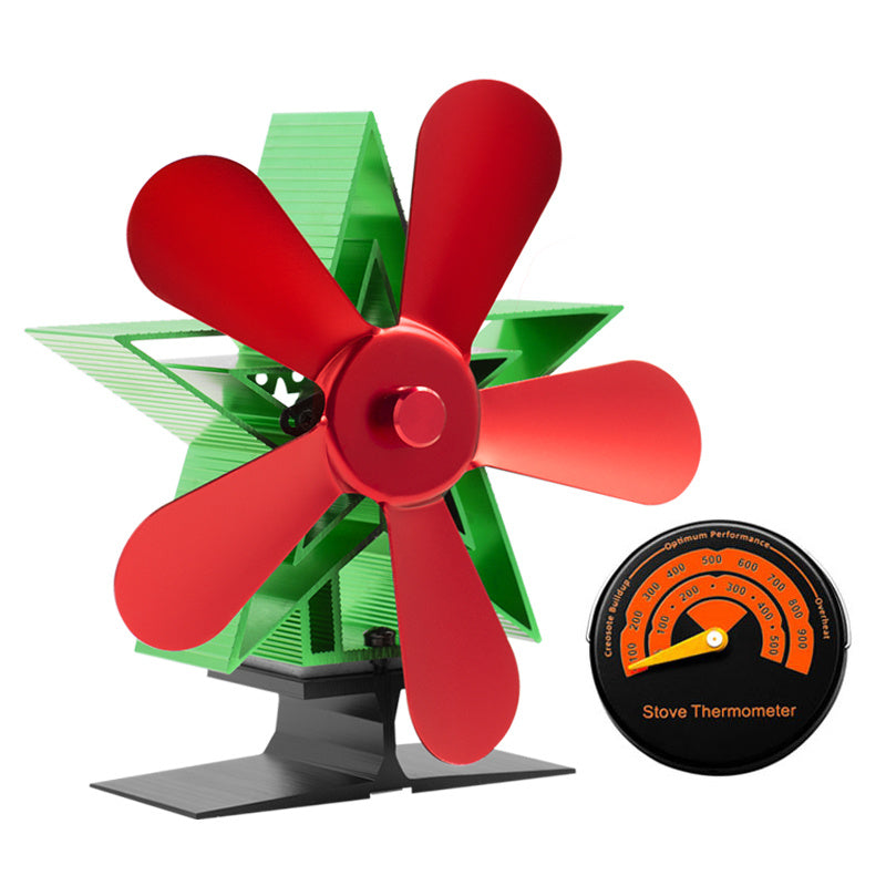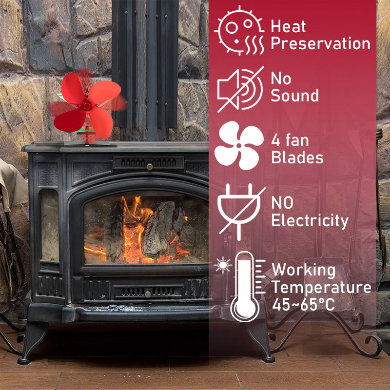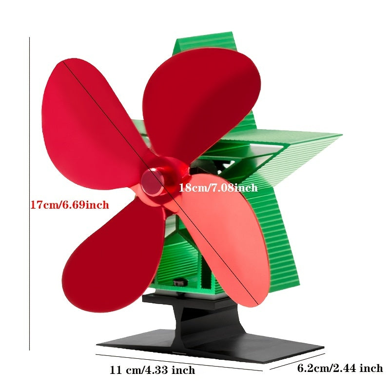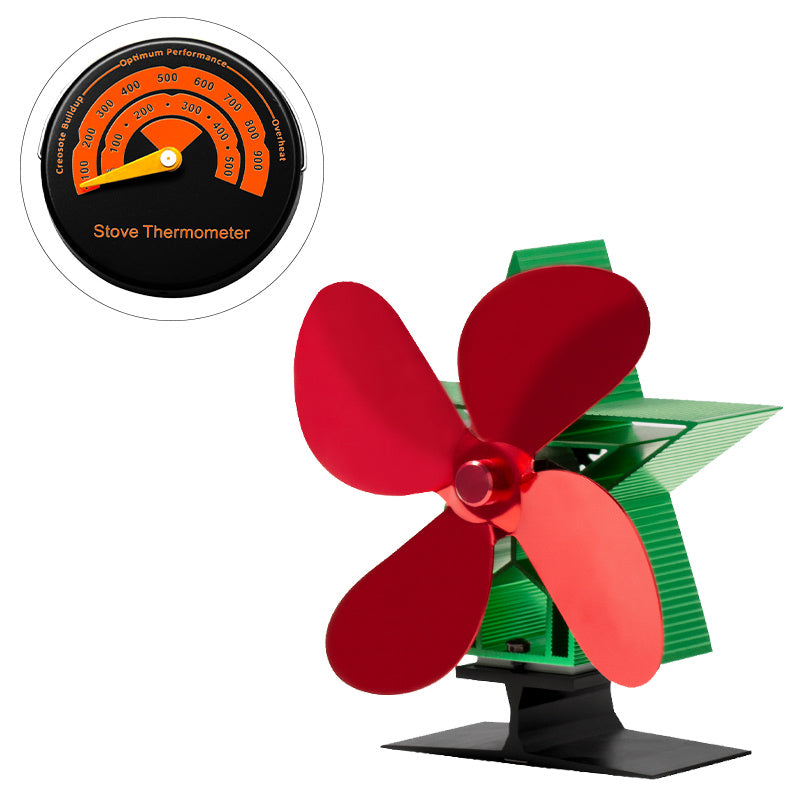 Вентилятор для дровяной печи с магнитным термометром для Рождества - эффективно распределяет тепло, работает бесшумно благодаря 4 лопастям, идеально подходит для дровяных печей, декора камина и аксессуаров для отопления дома.