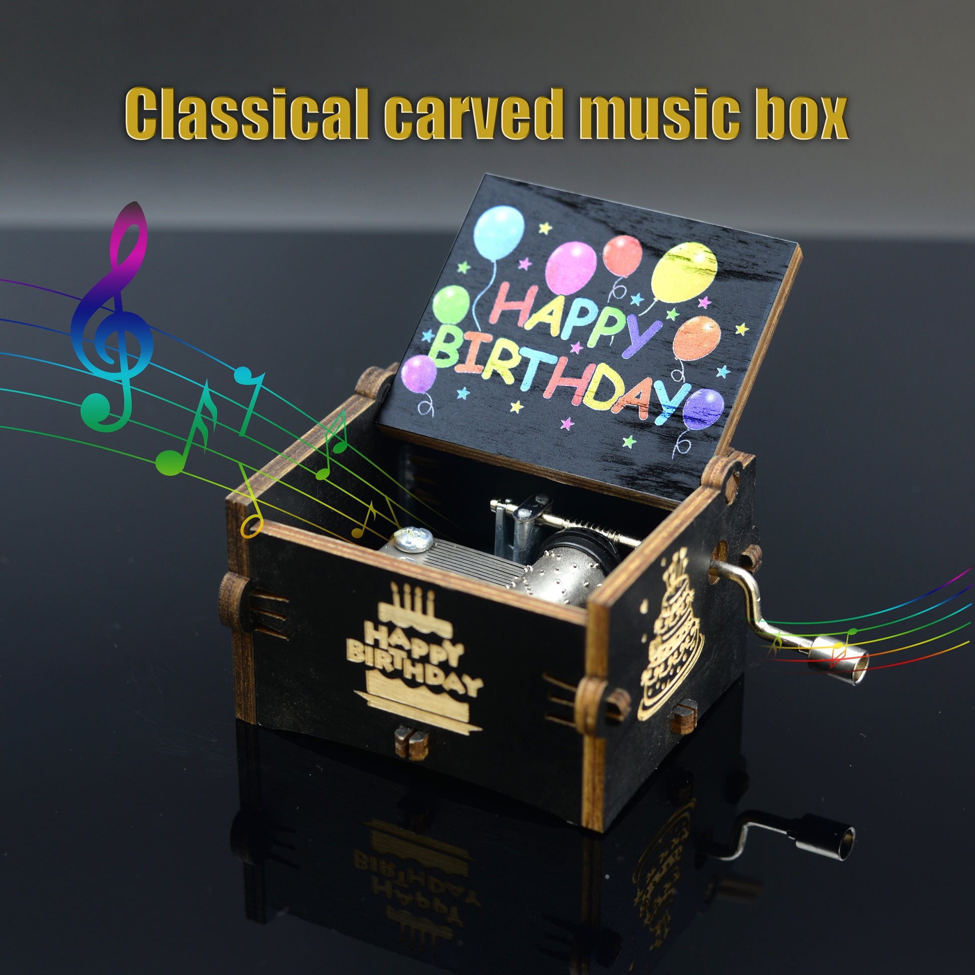 Деревянная музыкальная шкатулка с ручным приводом "С Днем Рождения" для особых случаев.