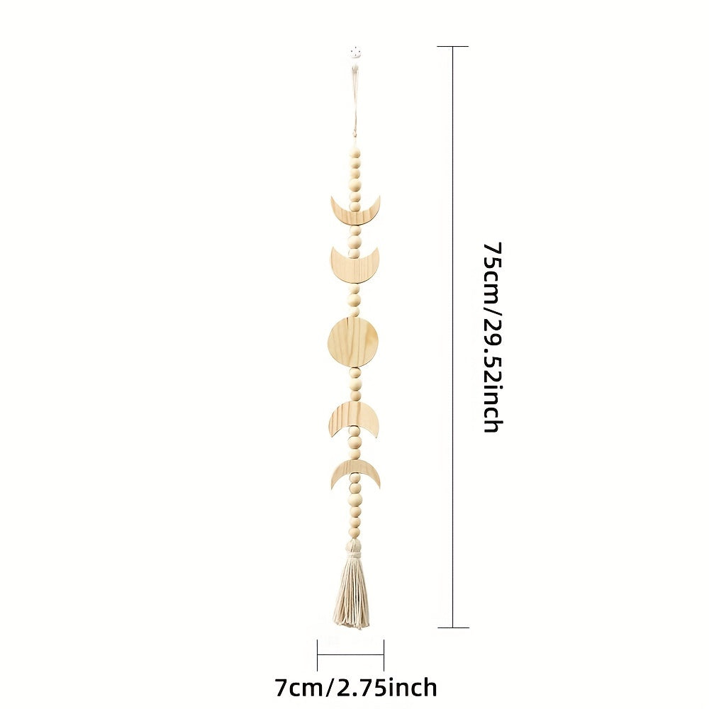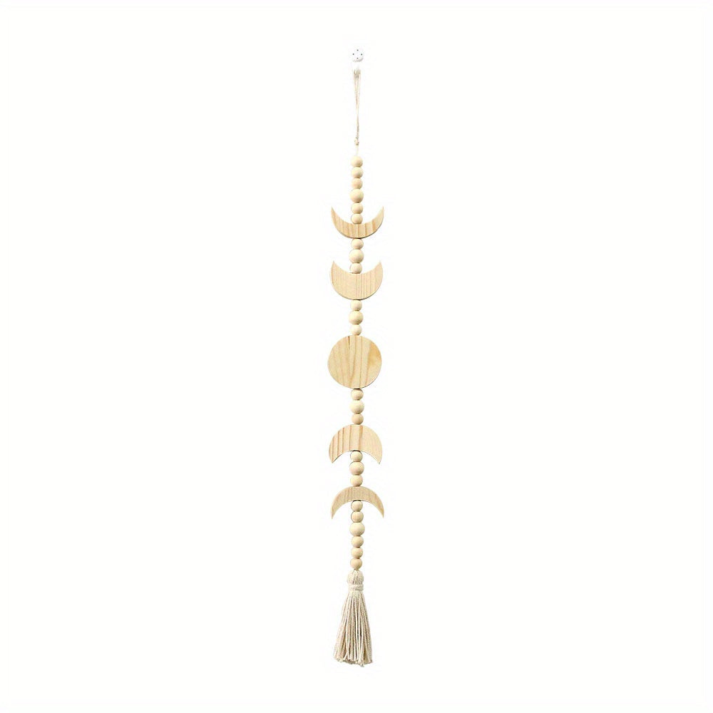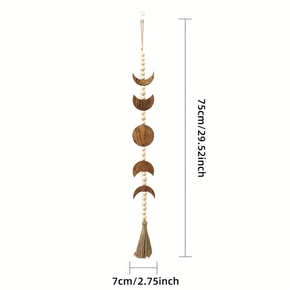 Деревянная настенная подвеска с фазами луны и декором из венка с бусинами.