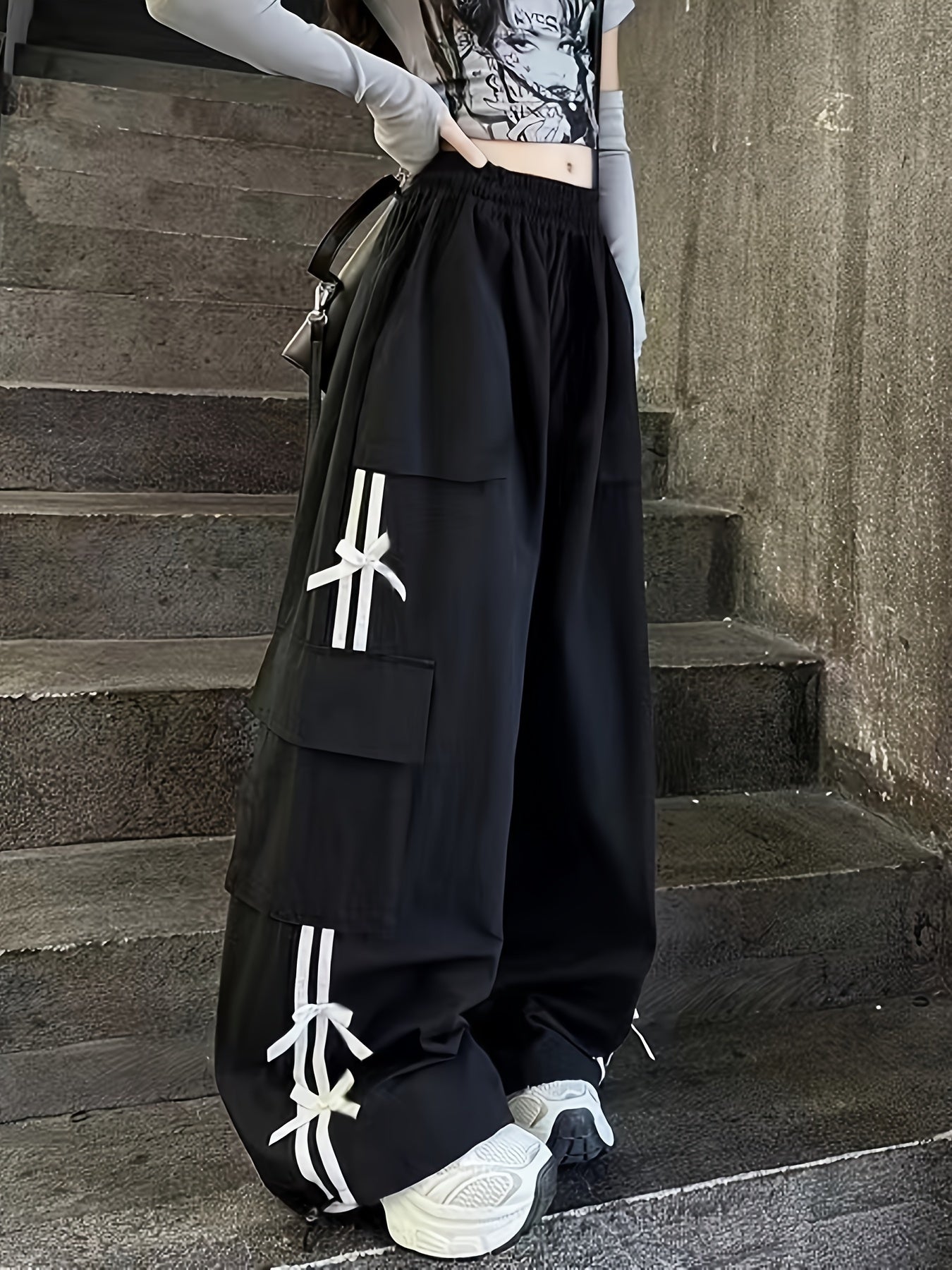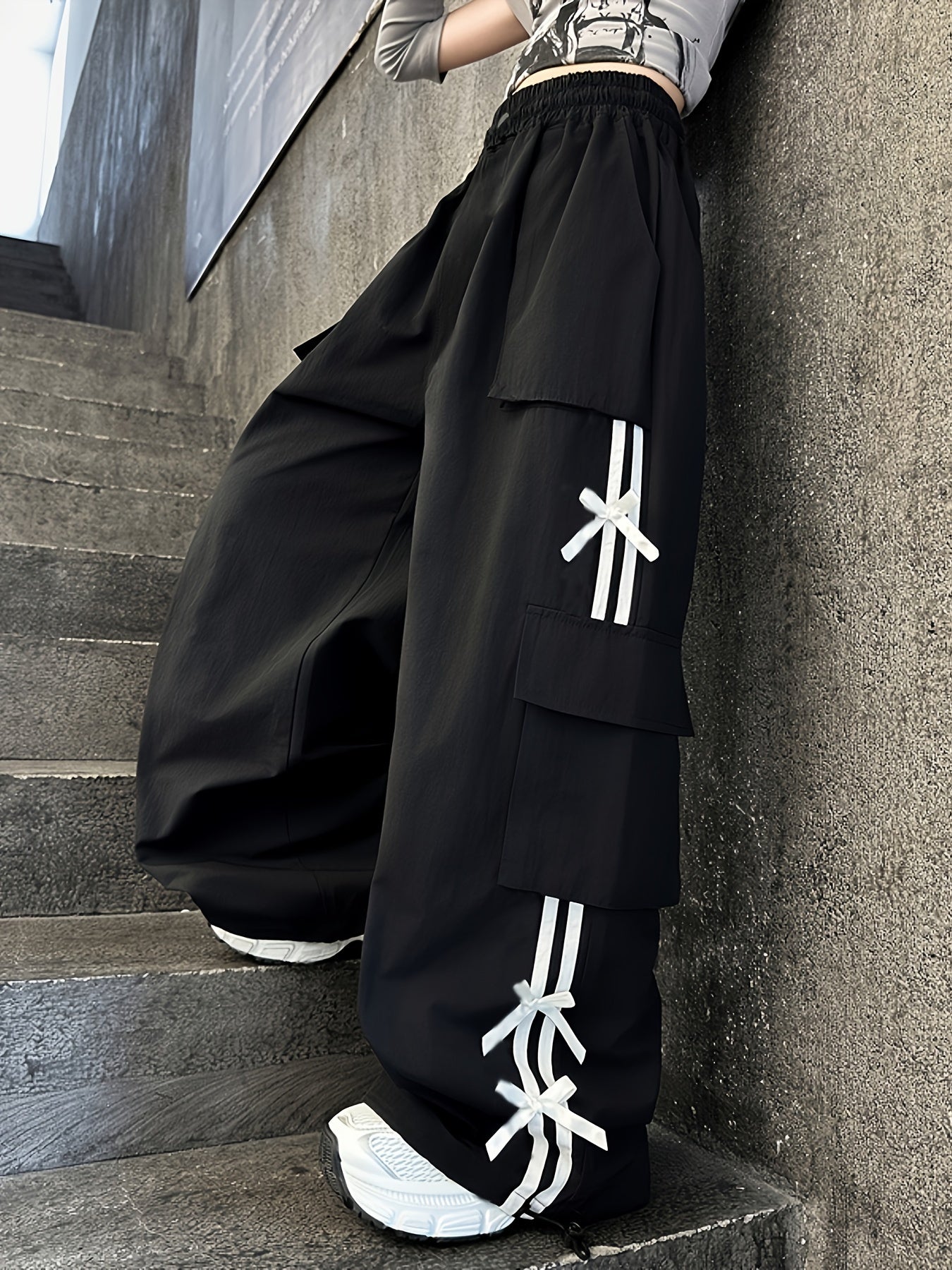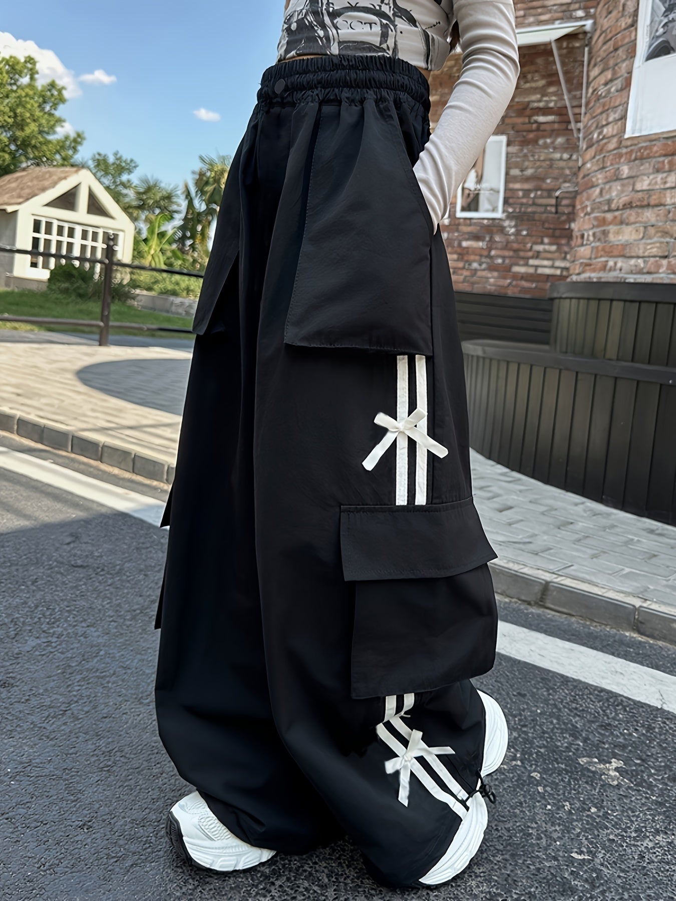 Детские брюки-карго Y2K для девочек, с эластичным поясом, свободный крой, весна-осень, уличная одежда для детей на свежем воздухе