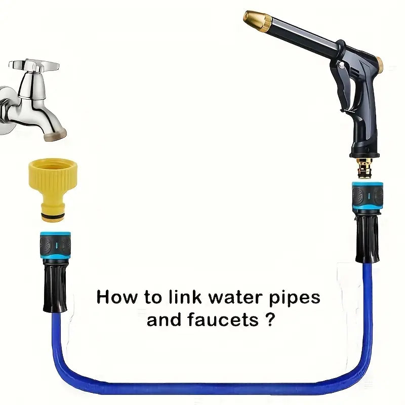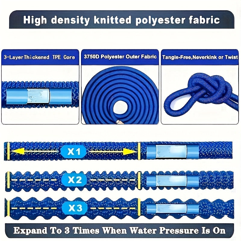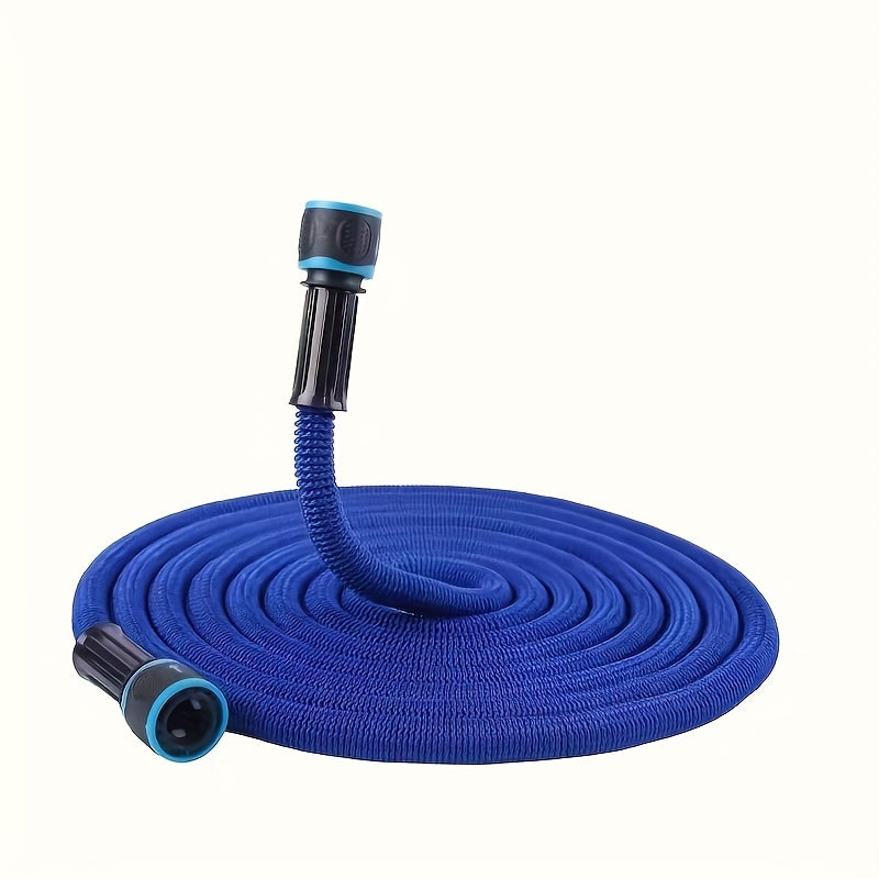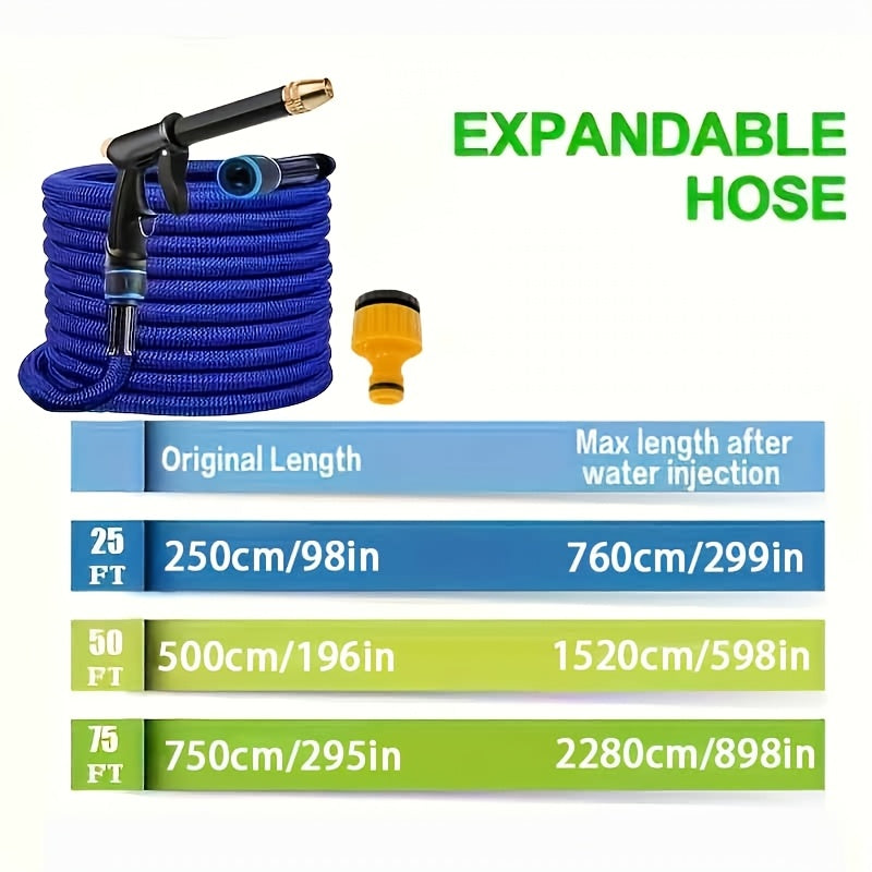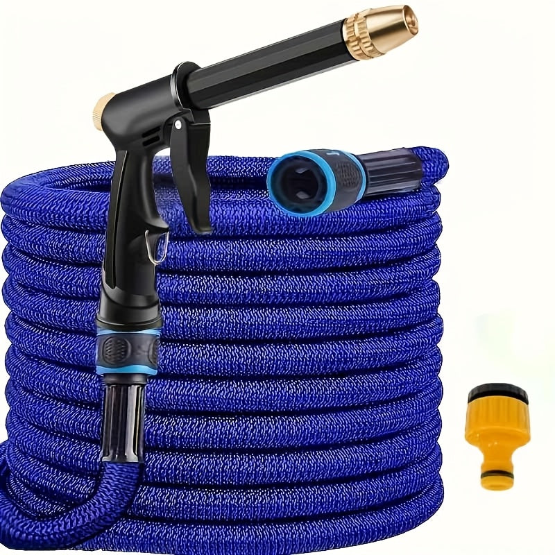 Раздвижной садовый шланг 22,86 м с насадкой для высокого давления и многофункциональными соединителями, синий резиновый