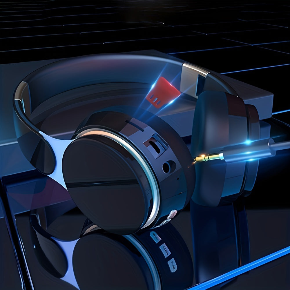 07S Беспроводные накладные наушники в стильном черном цвете с синей LED-подсветкой, высококачественный звук, длительное время работы от батареи, регулируемый и портативный дизайн для активного отдыха.