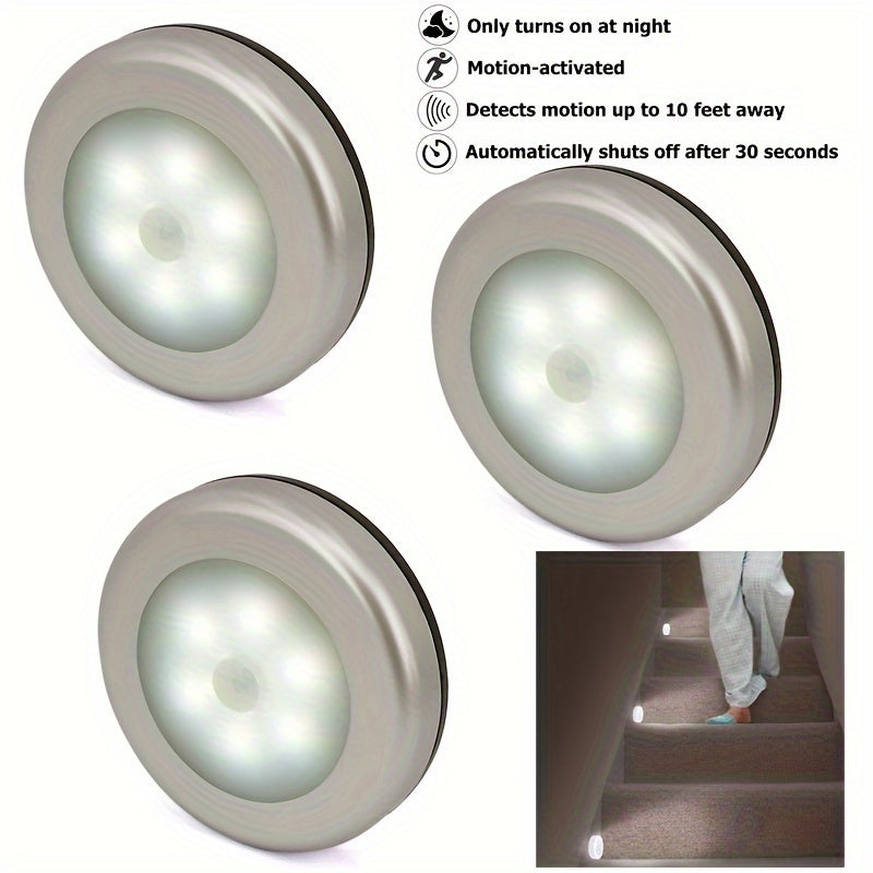 1-3 шт. 6-светодиодные светильники с датчиком движения для внутреннего использования, работающие от батареек светильники под шкаф, беспроводная настенная лампа для лестницы, коридора, гаража и входа.