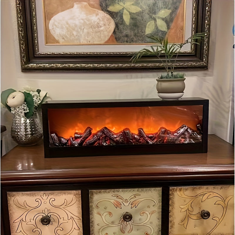 Лампа-таблица в стиле ар-деко с камином, 60 см, с USB-питанием, фантазийный пластик, прямоугольный абажур