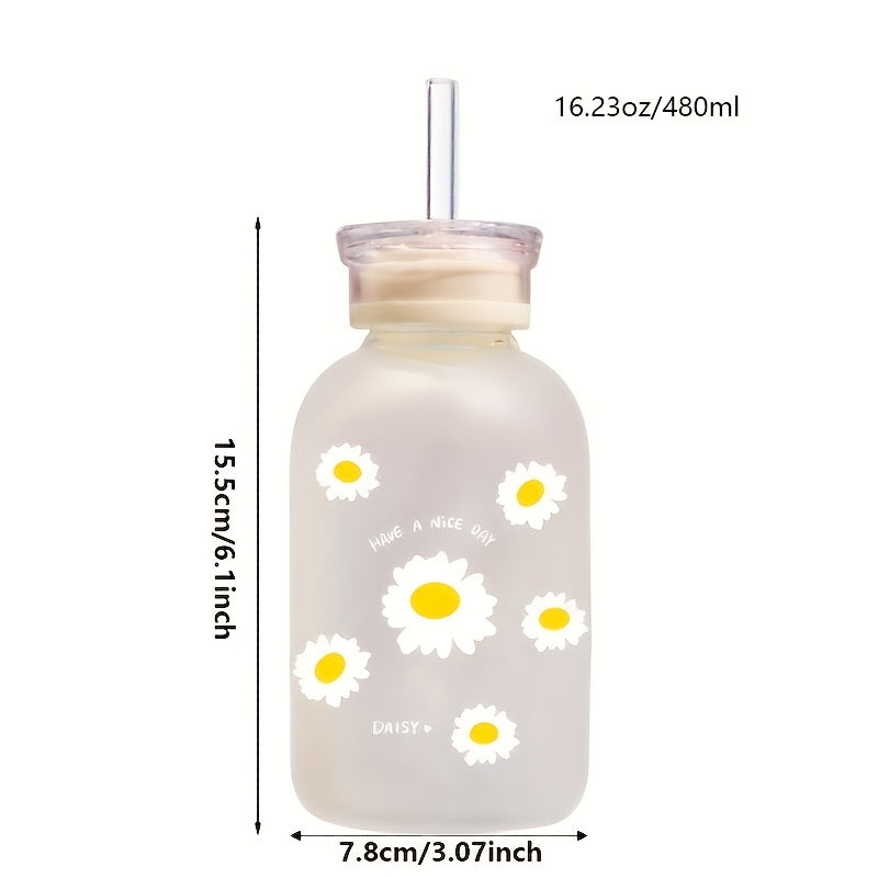Матовая стеклянная бутылка для воды с трубочкой и шкалой, дизайн ромашки и подсолнуха, портативная, для возвращения в школу