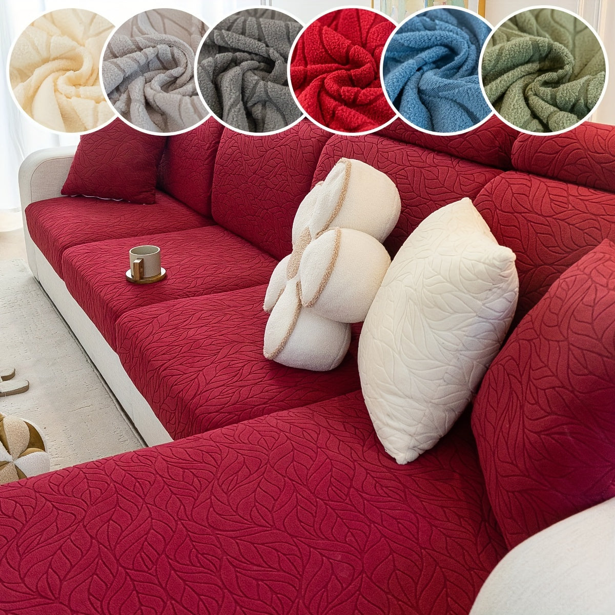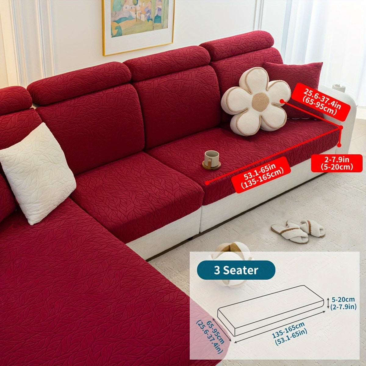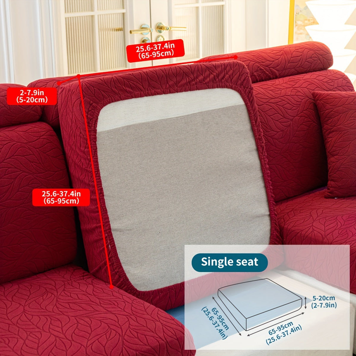 Чехол на диван на один предмет для всех сезонов красного цвета устойчив к царапинам и пятнам, идеально подходит для диванов на 1-4 места в гостиной, спальне или офисе. Имеет современный жаккардовый дизайн, нескользящую резинку и можно стирать в машине.