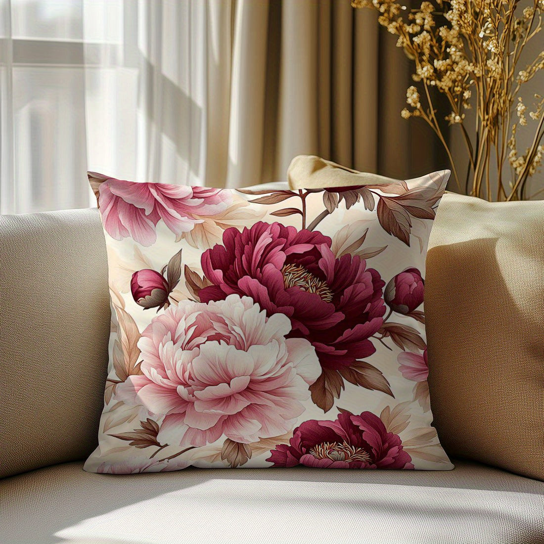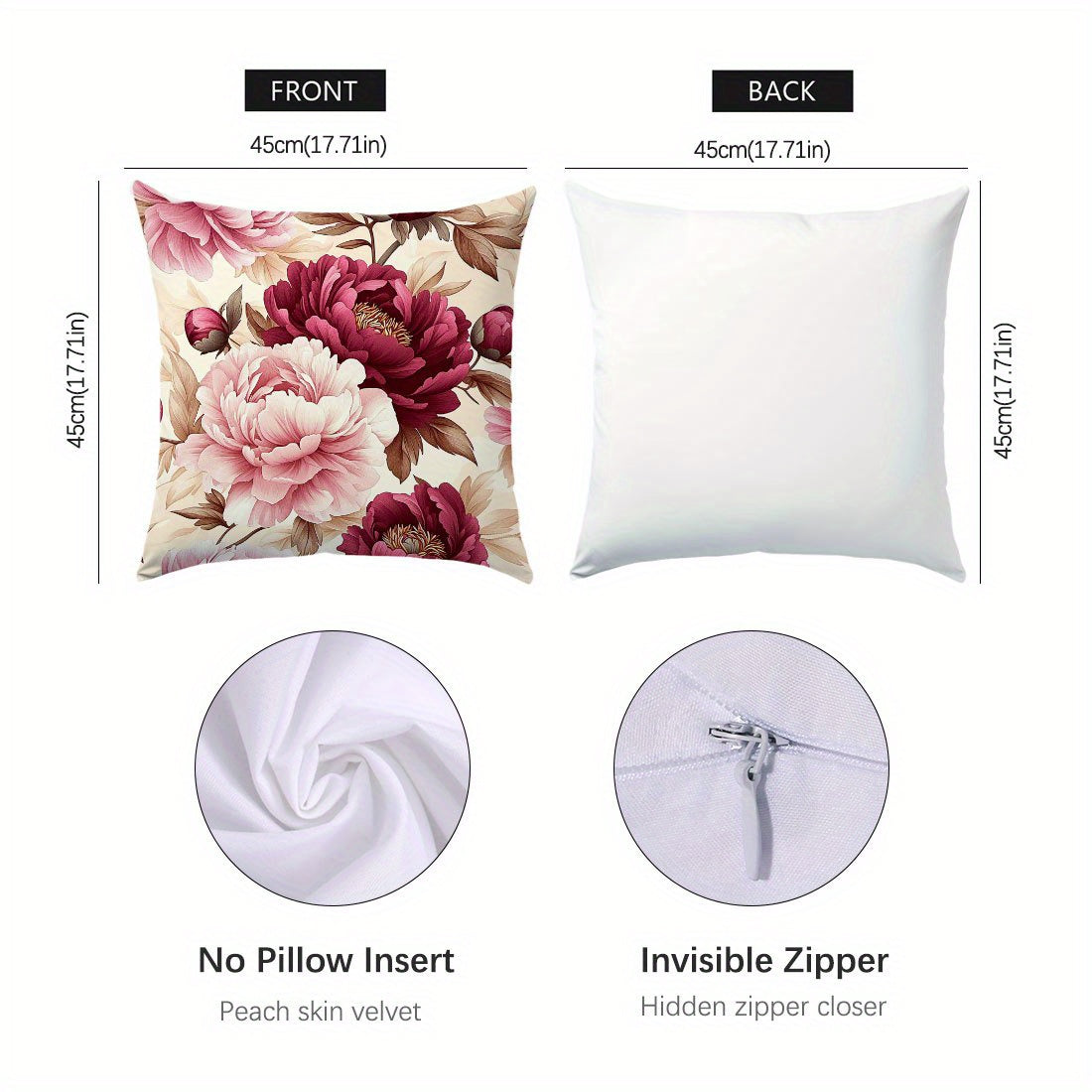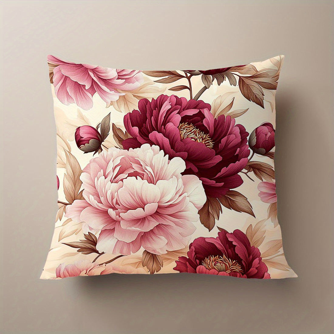1 шт. Подушка с цветочным принтом пиона, 44,98x44,98 см, с застежкой-молнией, гипоаллергенная, машинная стирка, элегантный декор для дивана и спальни, вставка не включена